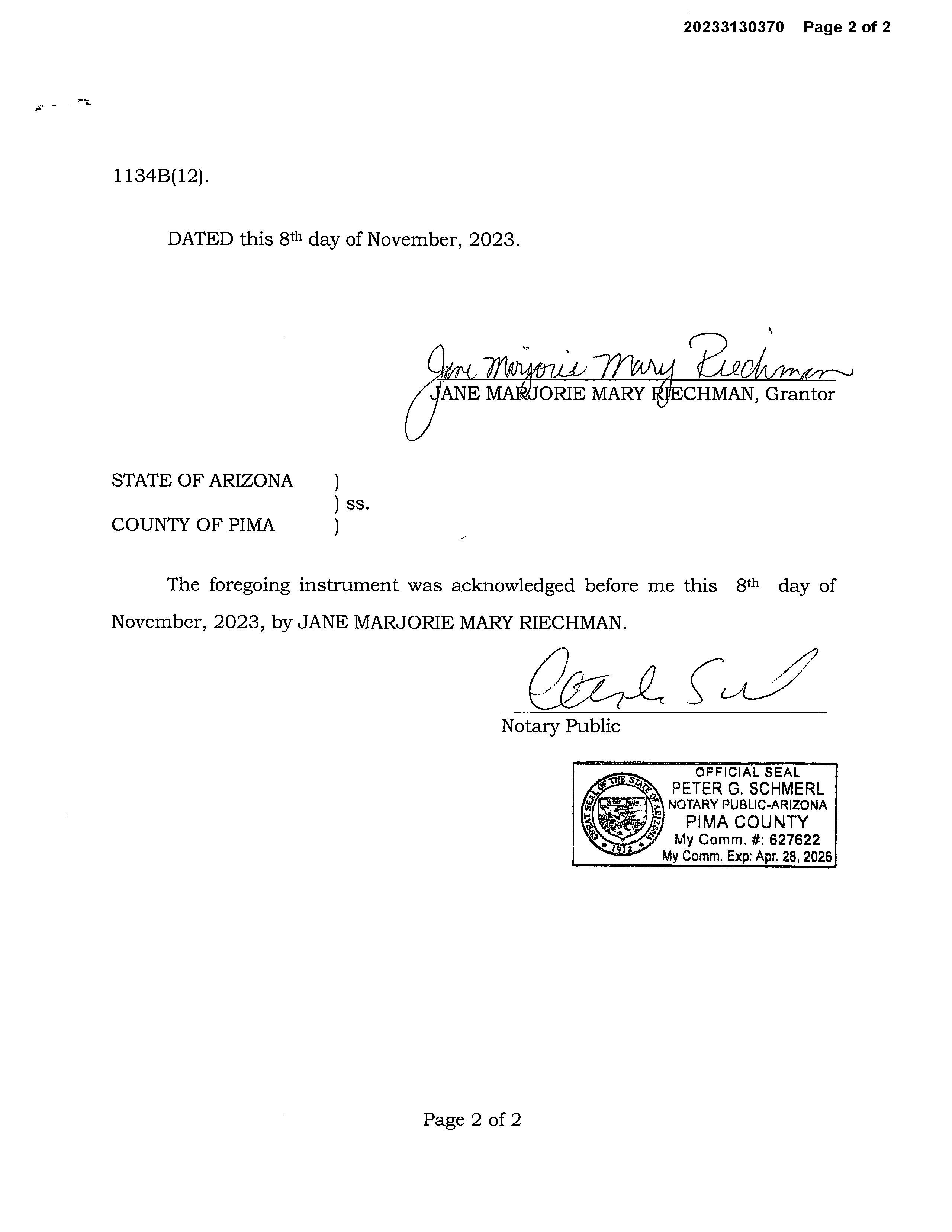 Owner Name: Riechman Jane Marjorie Mary / APN / Alternate APN: 304-55-0660 / Deed Type: Special Warranty Deed