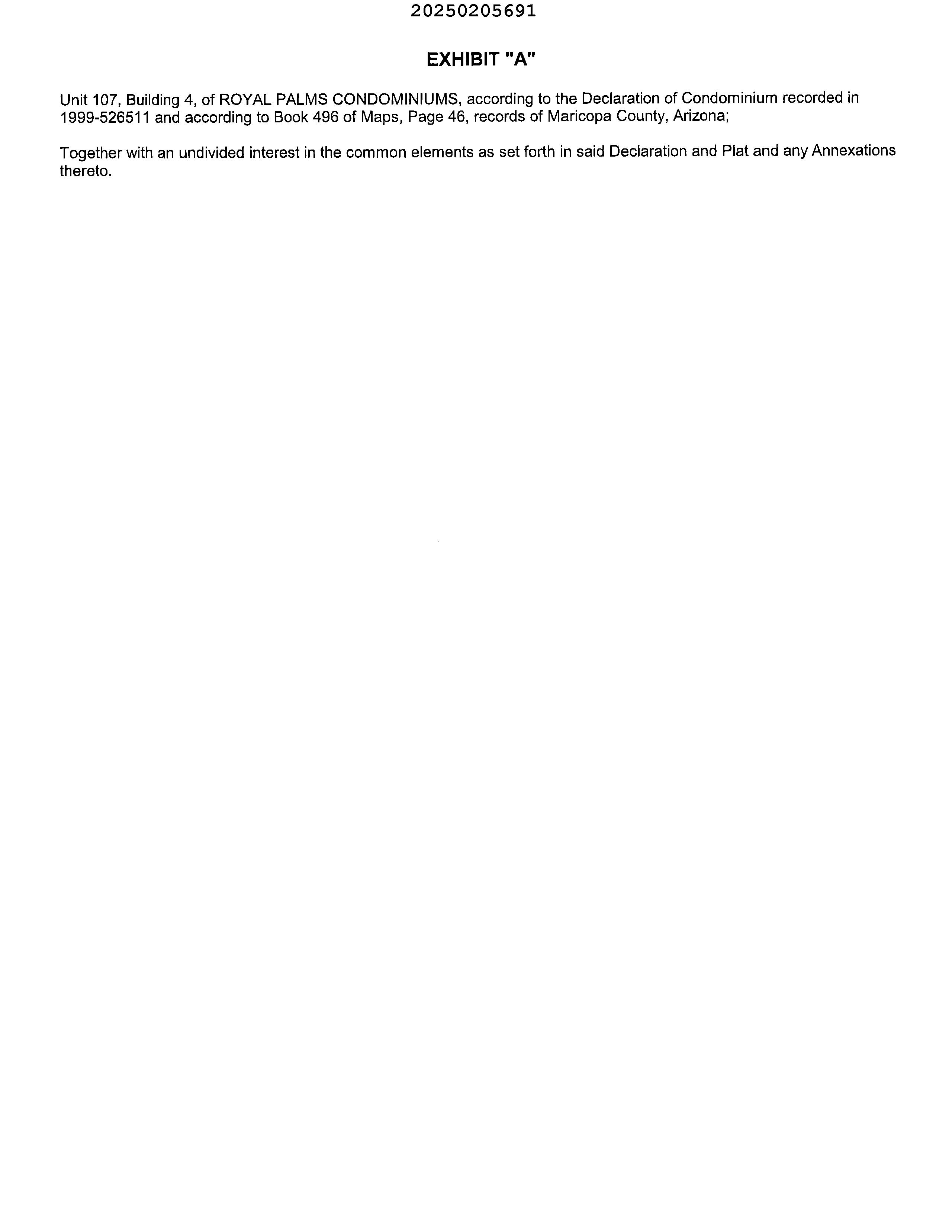 LEGAL: ROYAL PALMS CONDOMINIUMS MCR 496-46 UNIT 101 TOG WI AN UNDIV 1/60 INT IN THE COMMON ELEMENTS