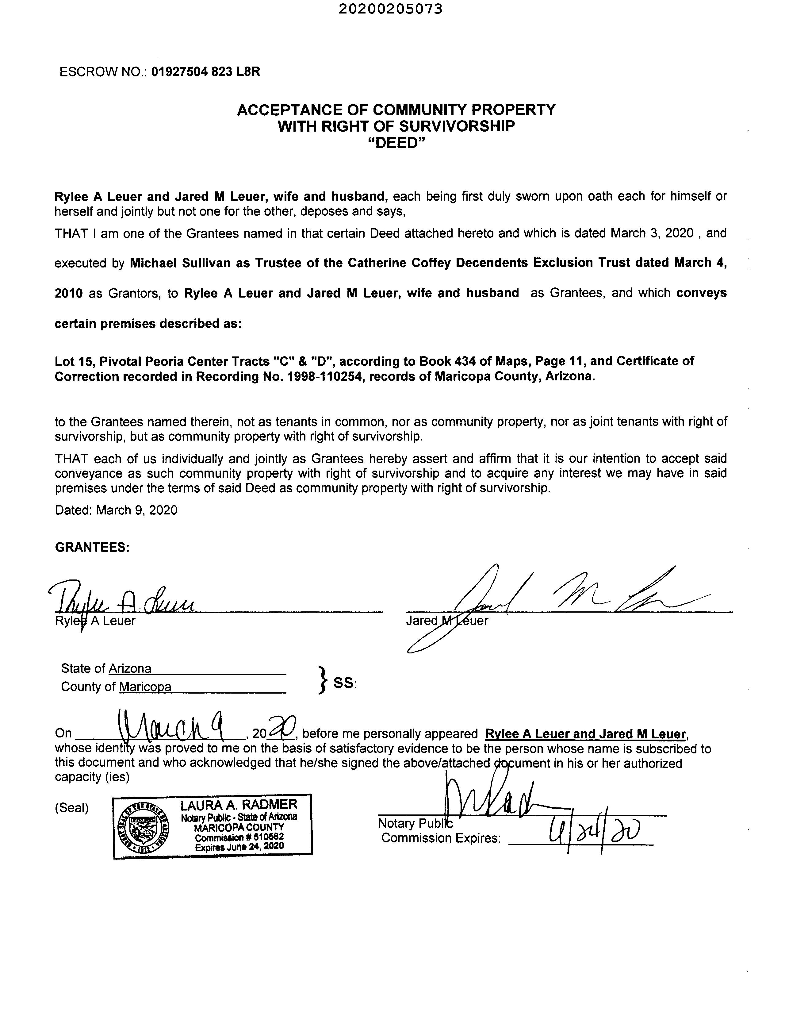 OWNER: LEUER RYLEE A & JARED M 2020 205073 03/09/2020