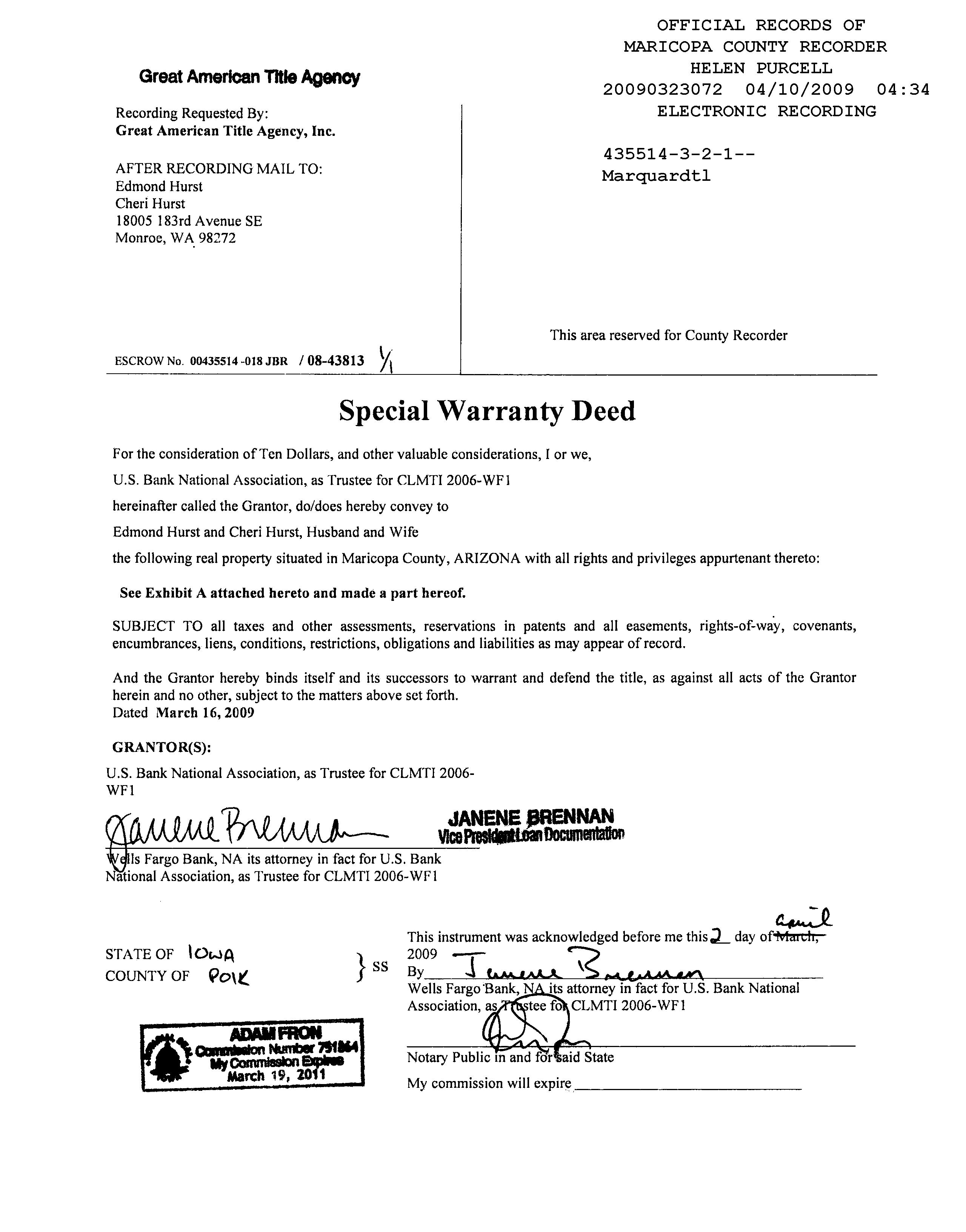 Recording/Sale Date : 04/10/2009 / 03/16/2009