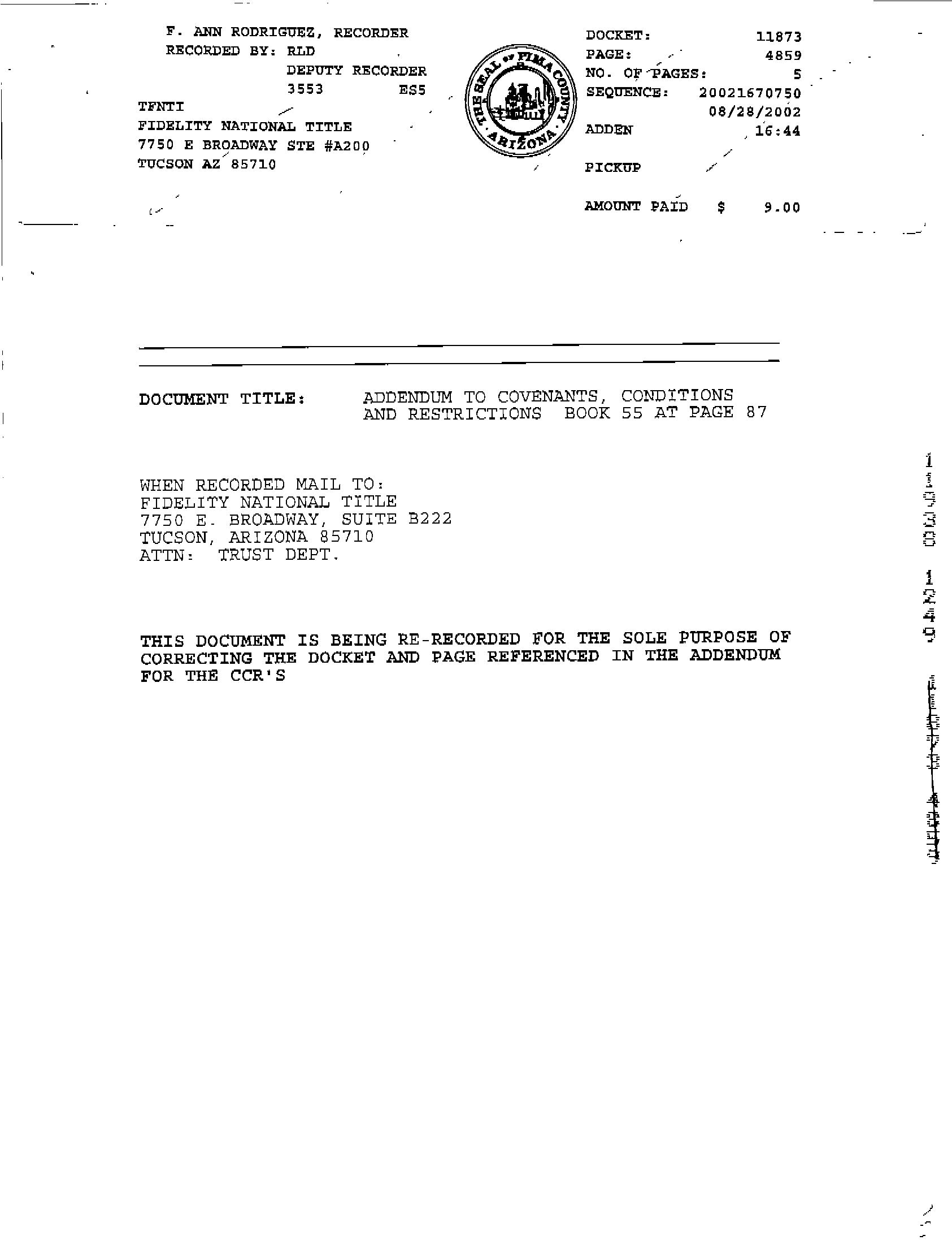 This report is not an insured product or service or a representation of the condition of title to real property. It is not an abstract, legal opinion, opinion of title, title insurance commitment or preliminary report, or any form of Title Insurance or Guaranty. This report is issued exclusively for the benefit of the Applicant therefor and may not be used or relied upon by any other person. This report may not be reproduced in any manner without First Americans prior written consent. First American does not represent or warrant that the information herein is complete or free from error, and the information herein is provided without any warranties of any kind, as-is, and with all faults. As a material part of the consideration given in exchange for the issuance of this report, recipient agrees that First Americans sole liability for any loss or damage caused by an error or omission due to inaccurate information or negligence in preparing this report shall be limited to the fee charged for the report. Recipient accepts this report with this limitation and agrees that First American would not have issued this report but for the limitation of liability described above. First American makes no representation or warranty as to the legality or propriety of recipient's use of the information herein.