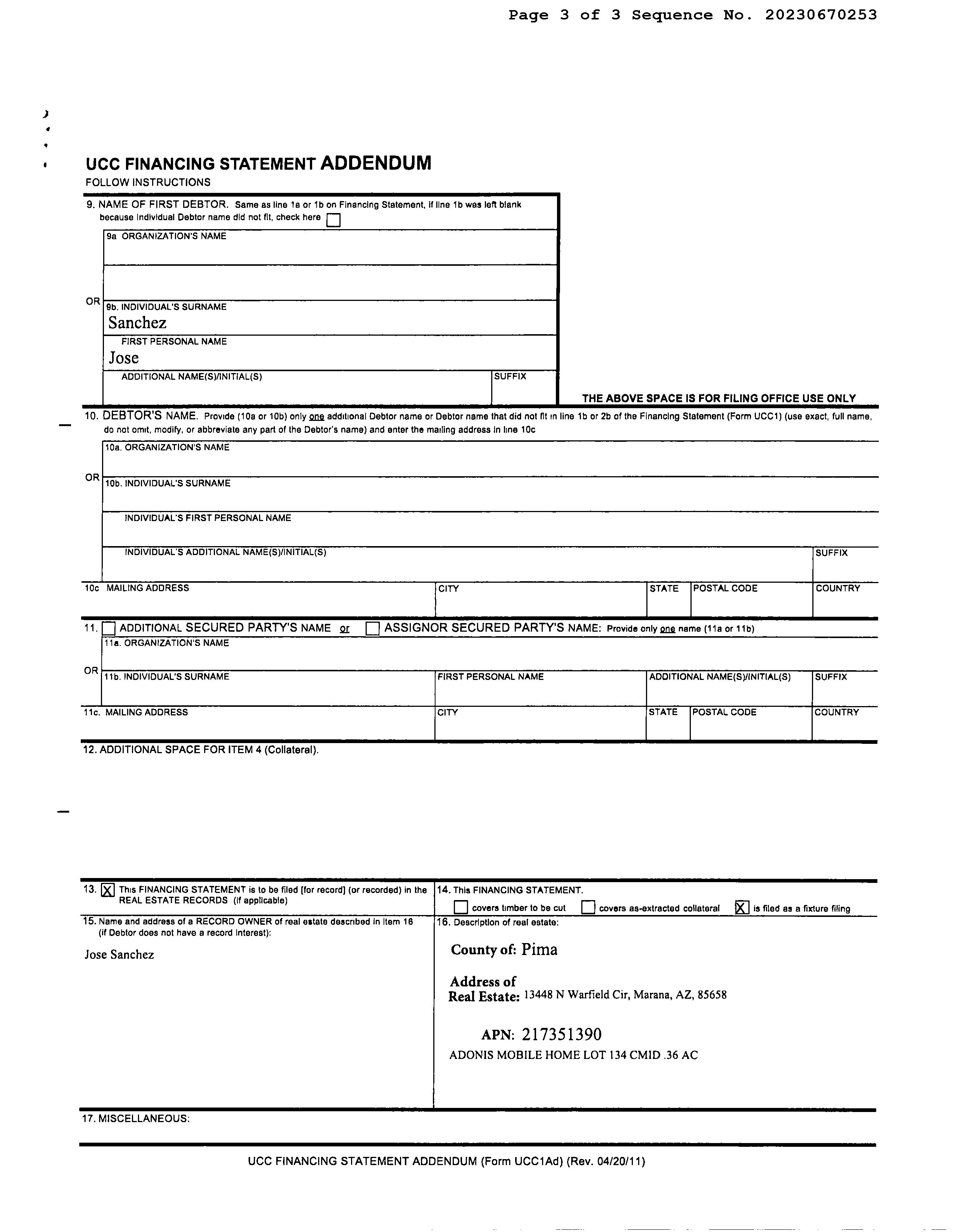 Mailing Address : 13448 N Warfield Cir, Marana AZ 85658 R007