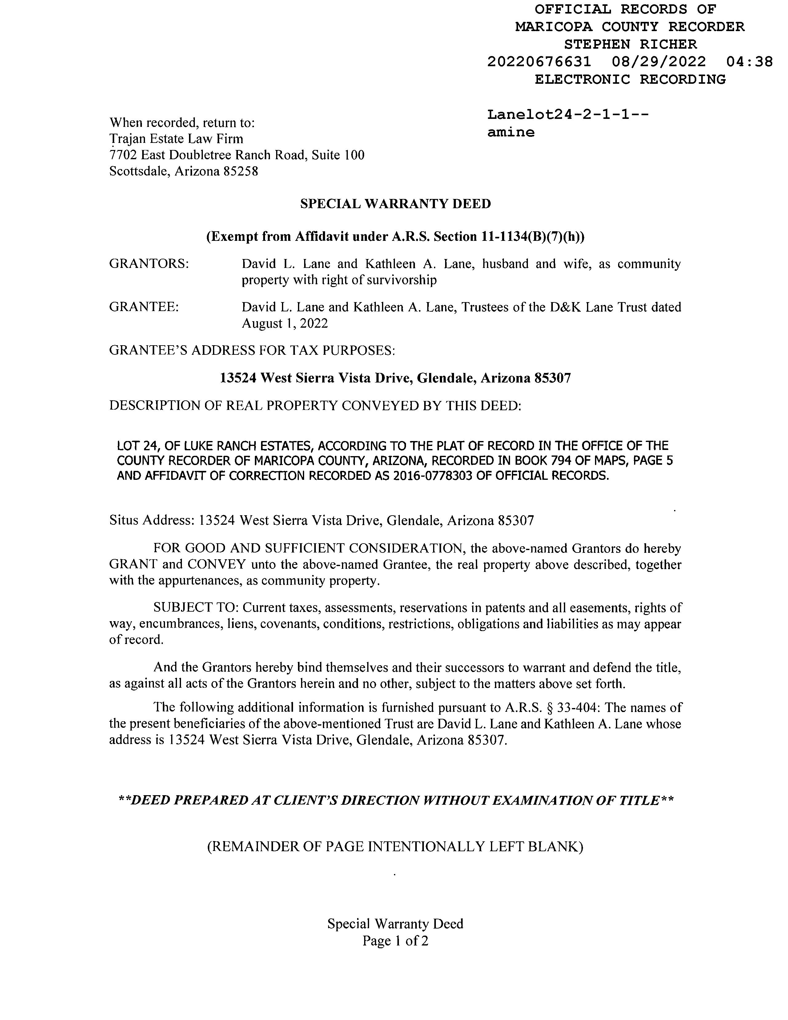 OWNER: D&K LANE TRUST & LANE 2022 676631 08/29/2022