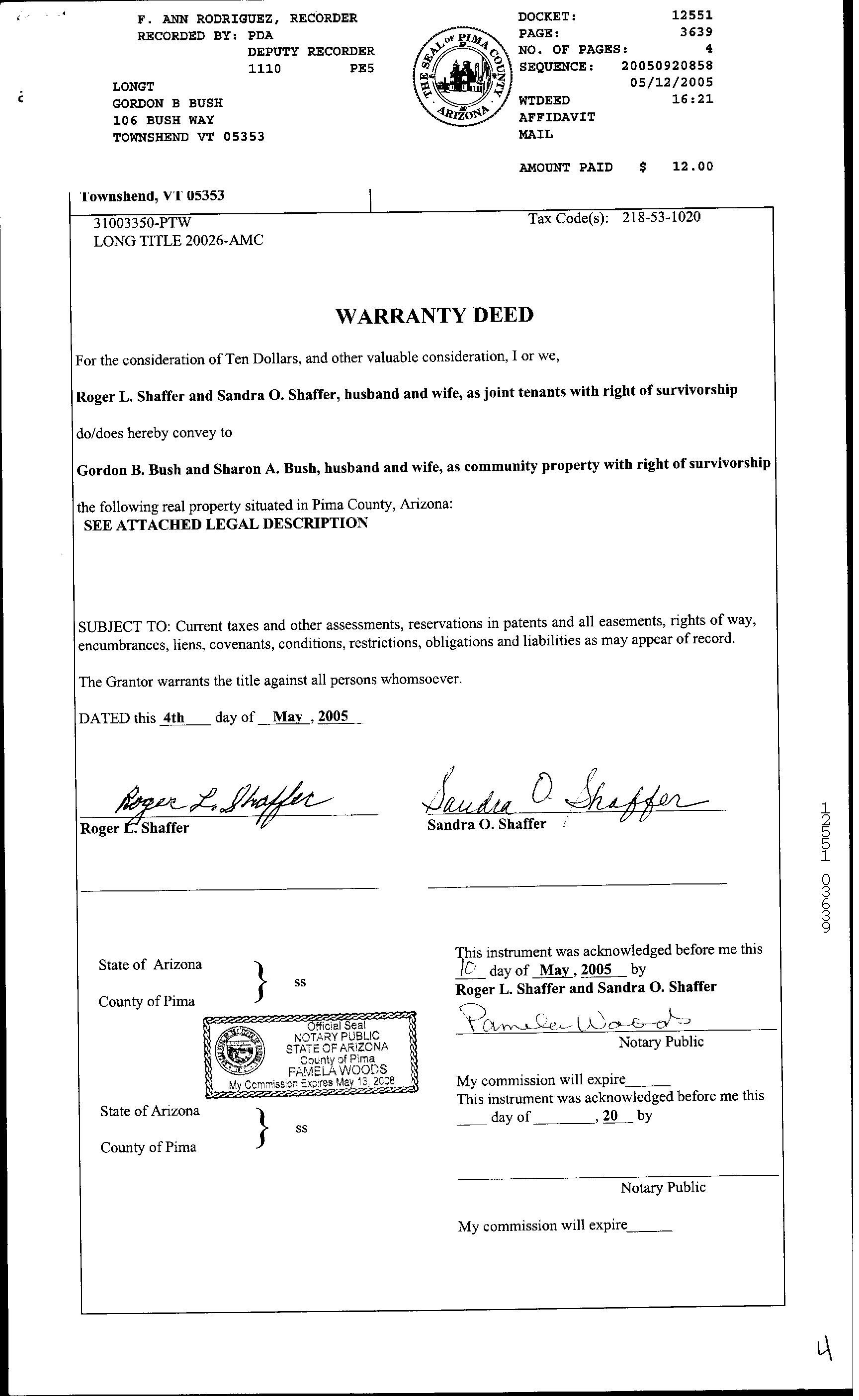 299,900 12551 3639 WD SHAFFER ROGER L/SANDRA O 05/28/2002 161,035 11808 5401 SD U S HOME CORPORATION