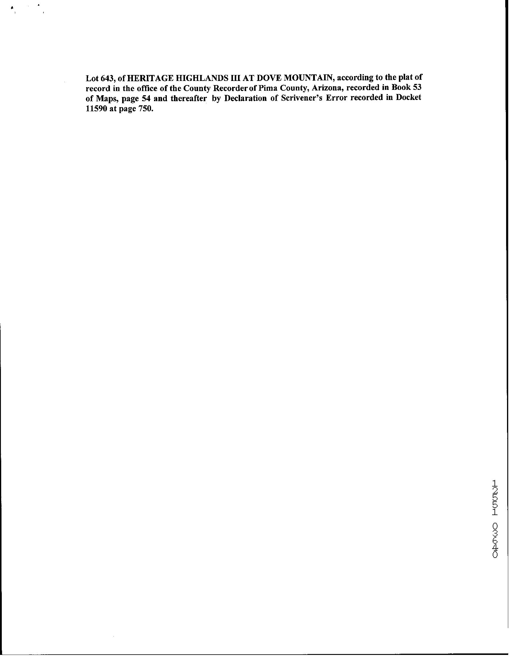 LEGAL: HERITAGE HIGHLANDS III AT DOVE MOUNTAIN LOT 0643