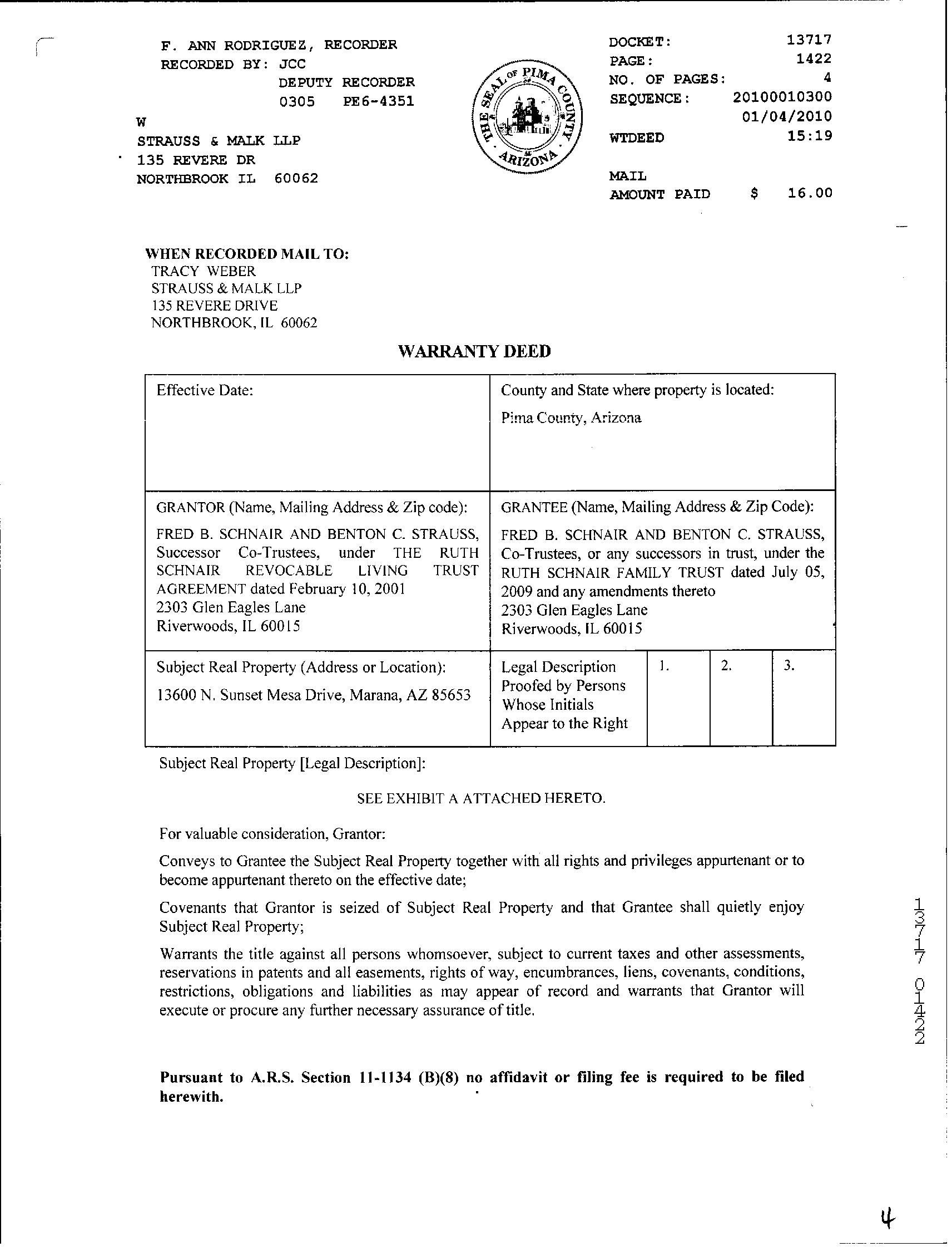 Subject Property : 13600 N Sunset Mesa Dr Marana AZ 85658