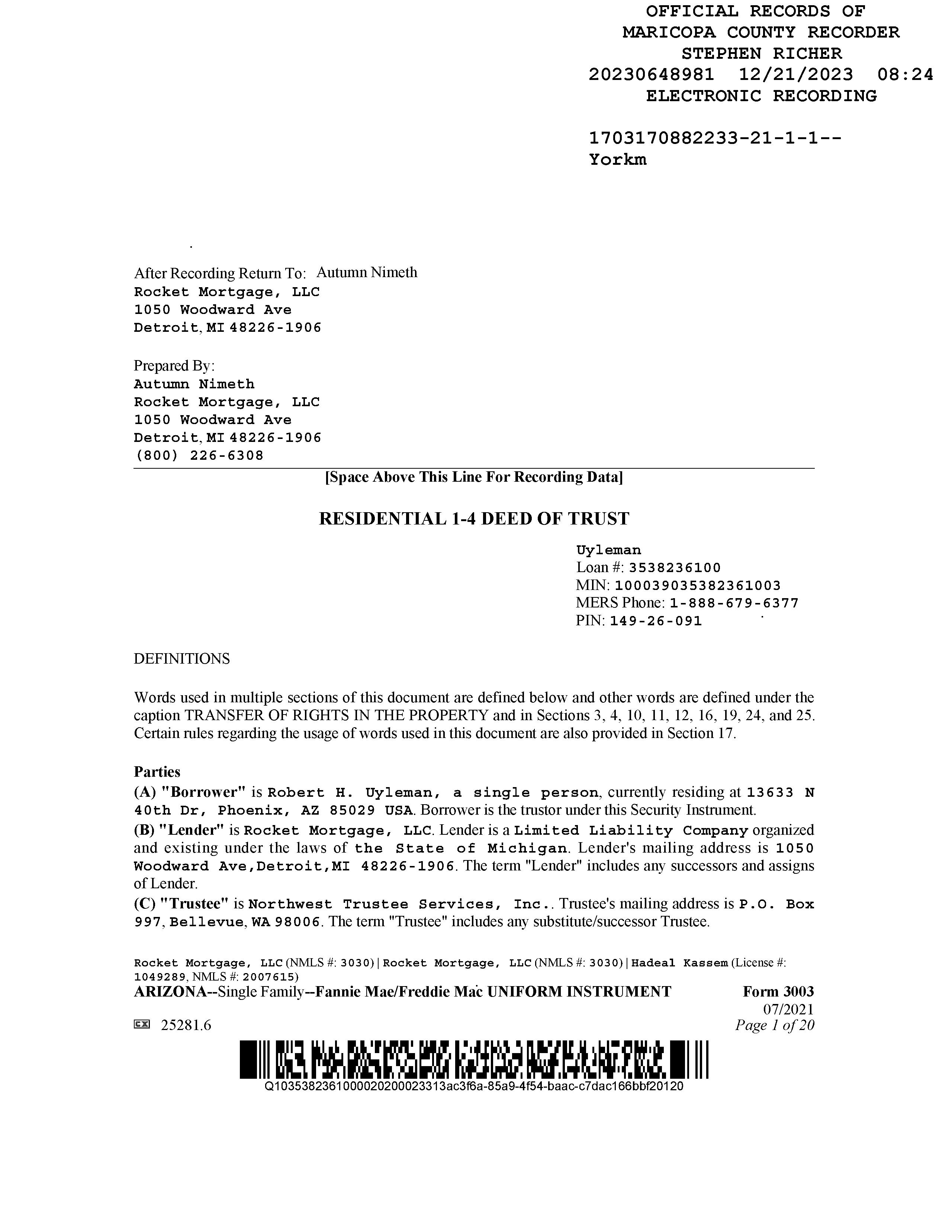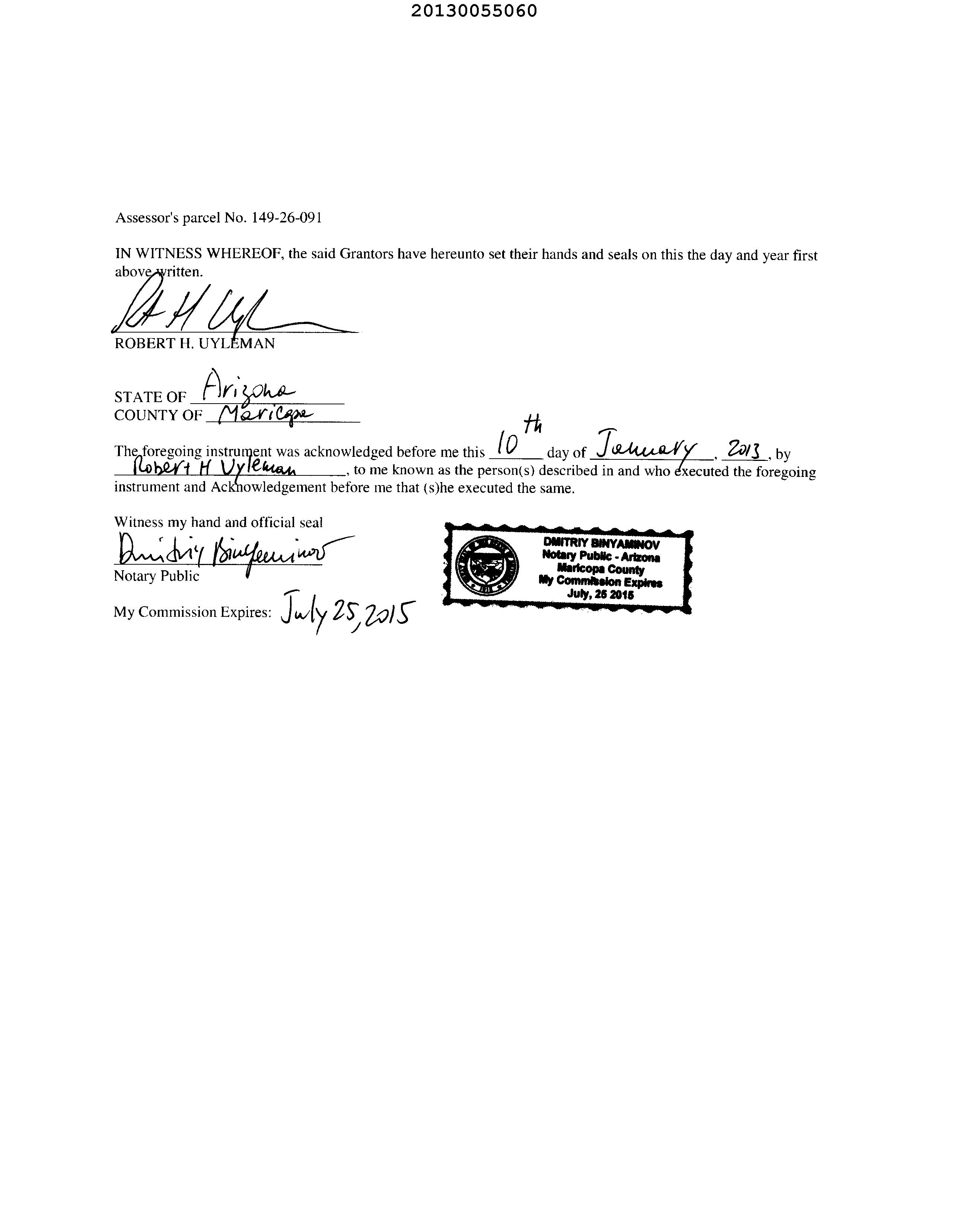 Owner Name: Uyleman Robert H / APN / Alternate APN: 149-26-091 / Deed Type: Joint Tenancy Deed