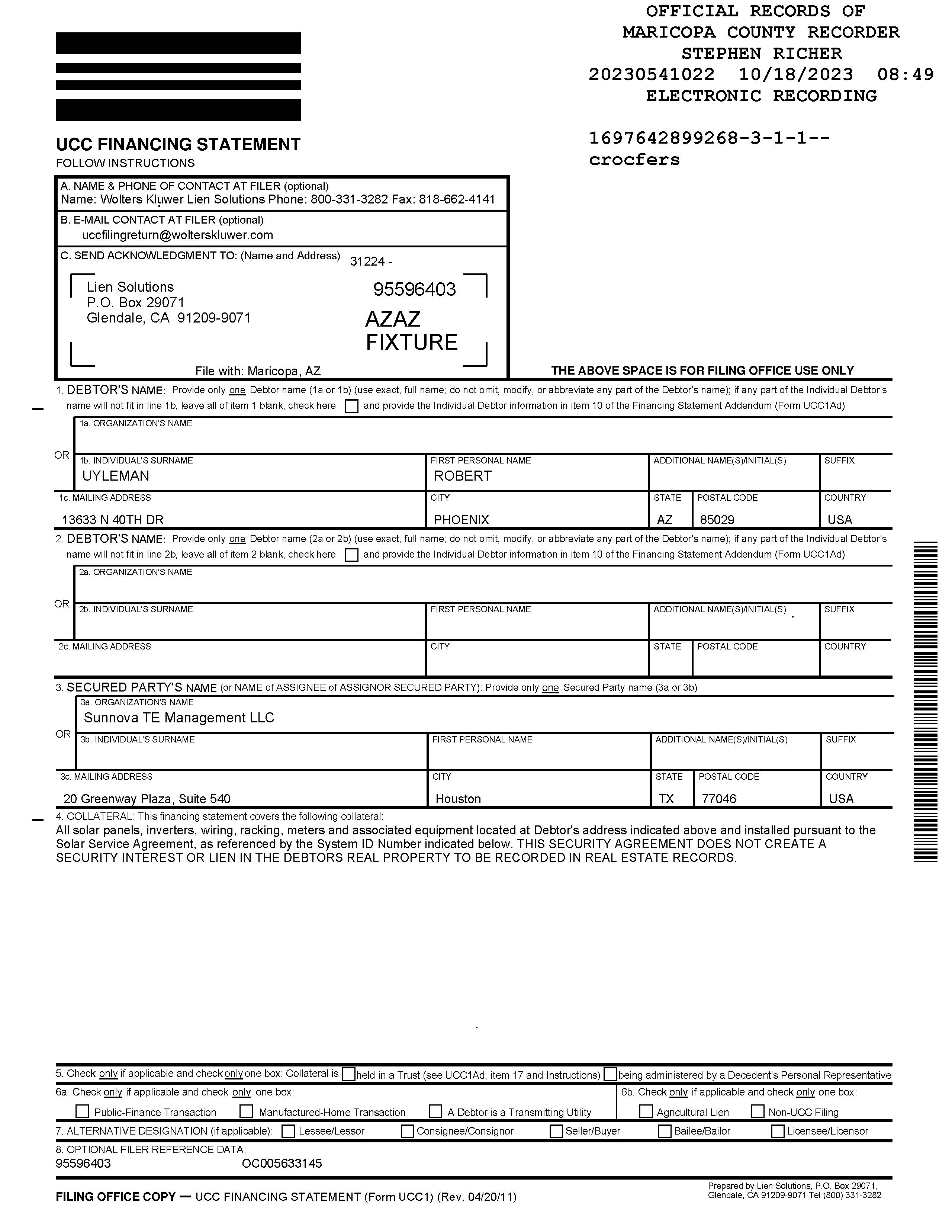Mailing Address : 13633 N 40th Dr, Phoenix AZ 85029-1020 C027