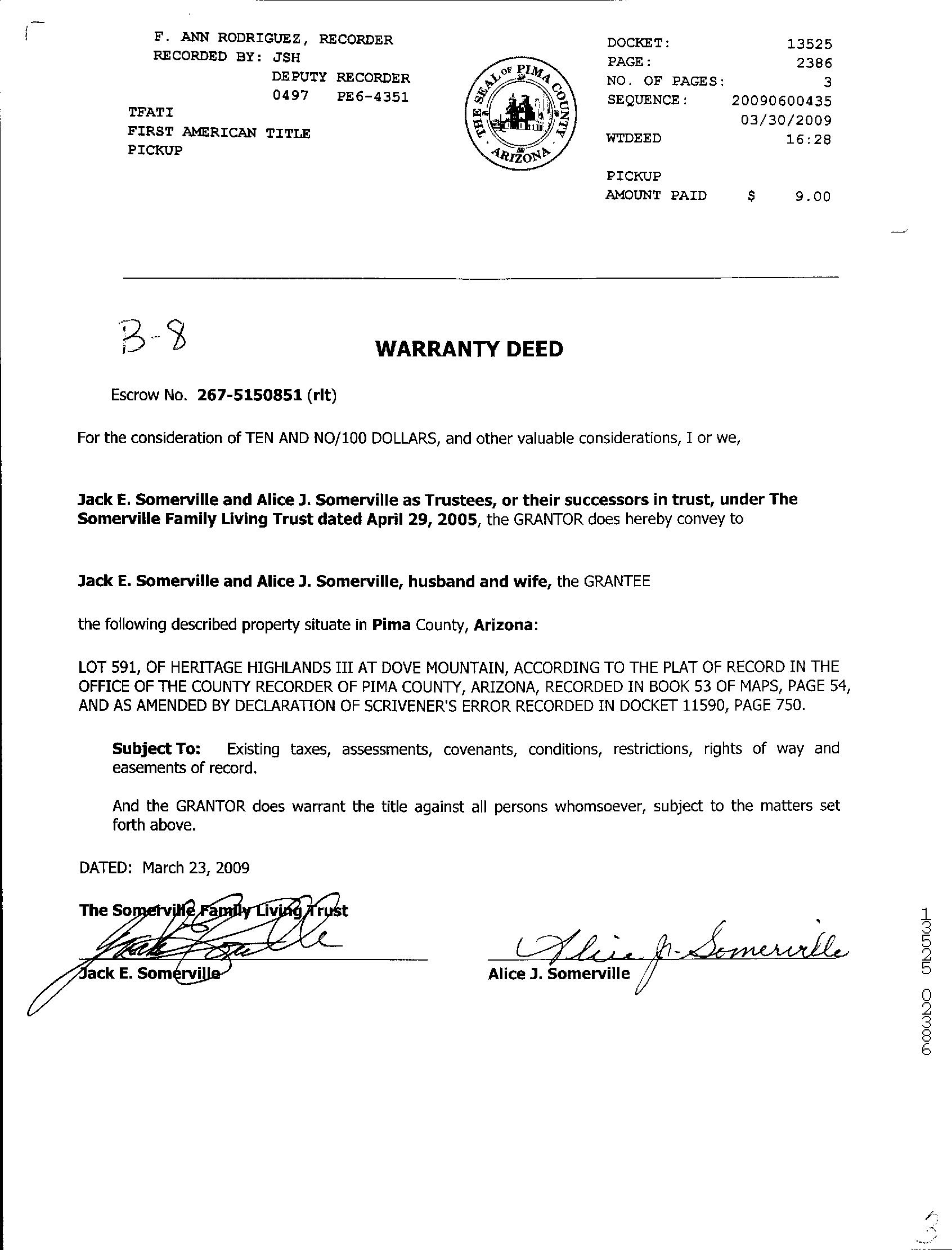 OWNER: SOMERVILLE JACK E & ALICE J CP/RS 11656 3553 10/17/2001