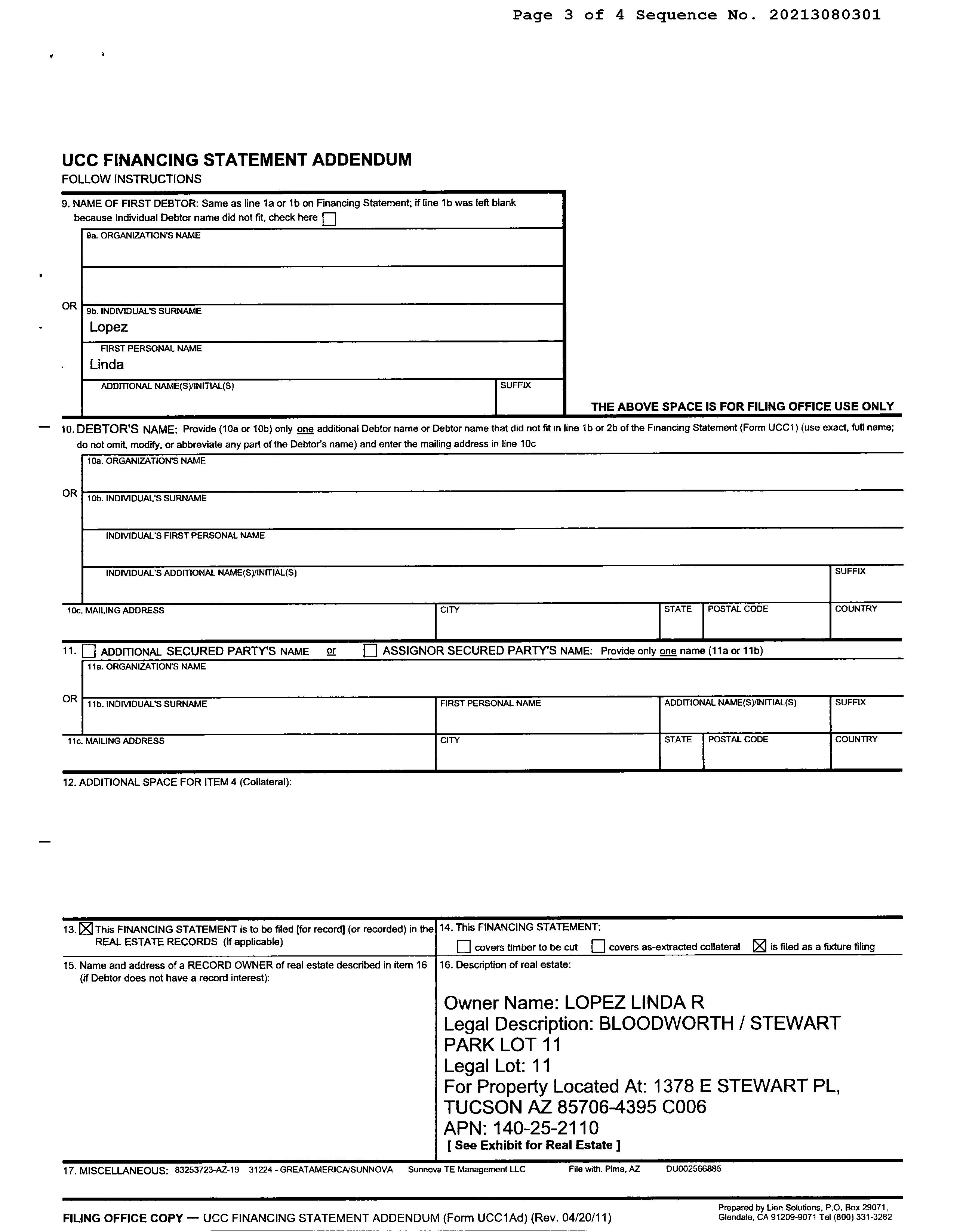 Mailing Address : 1378 E Stewart Pl, Tucson AZ 85706-4395 C006