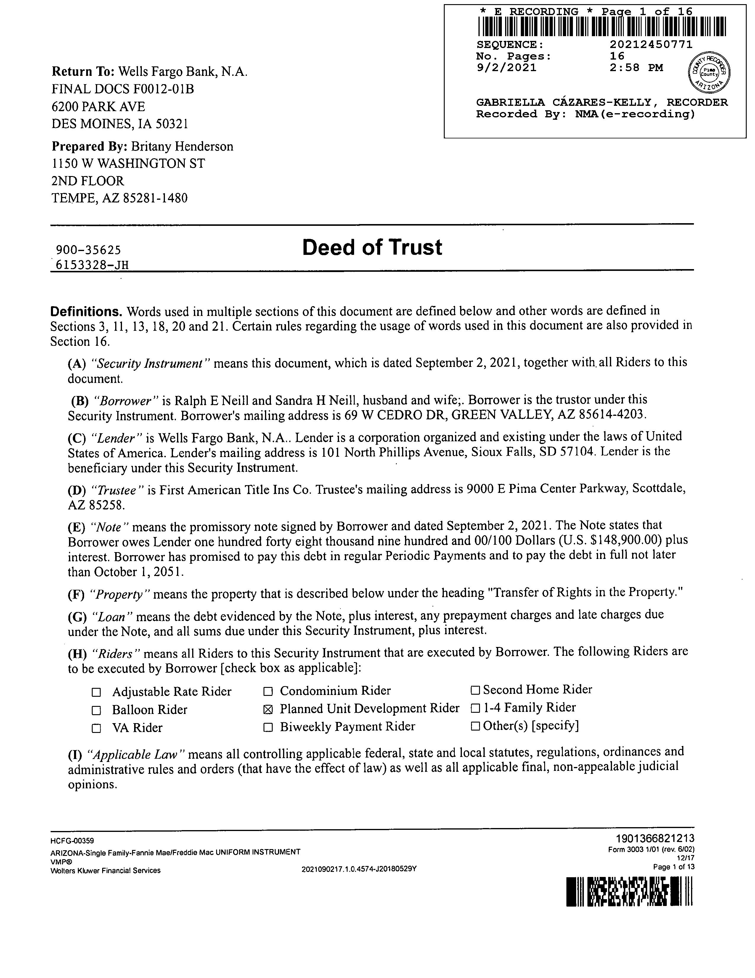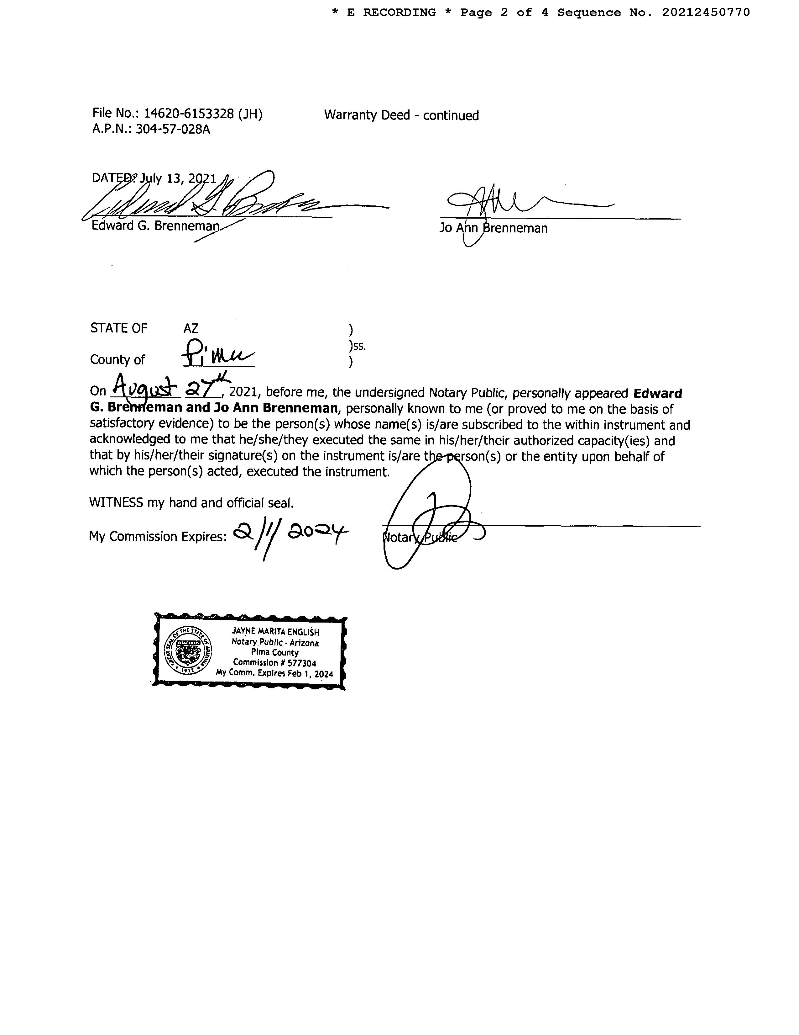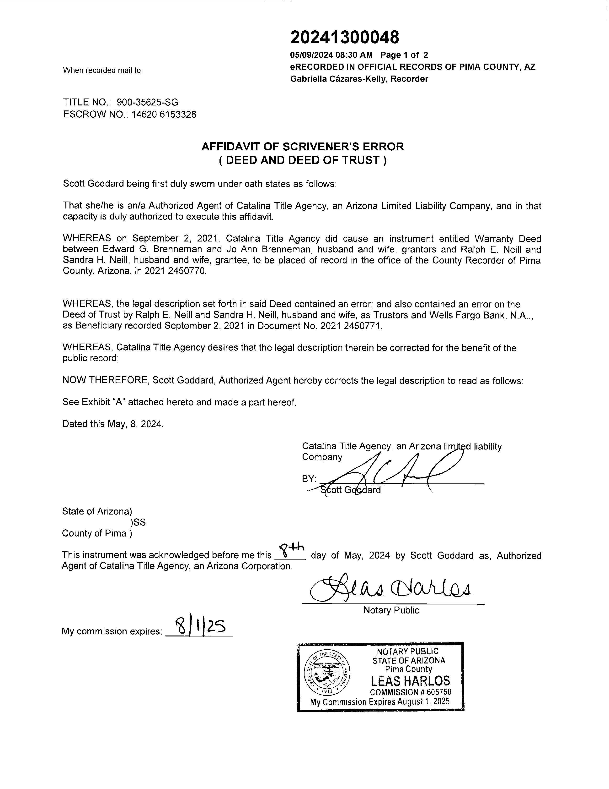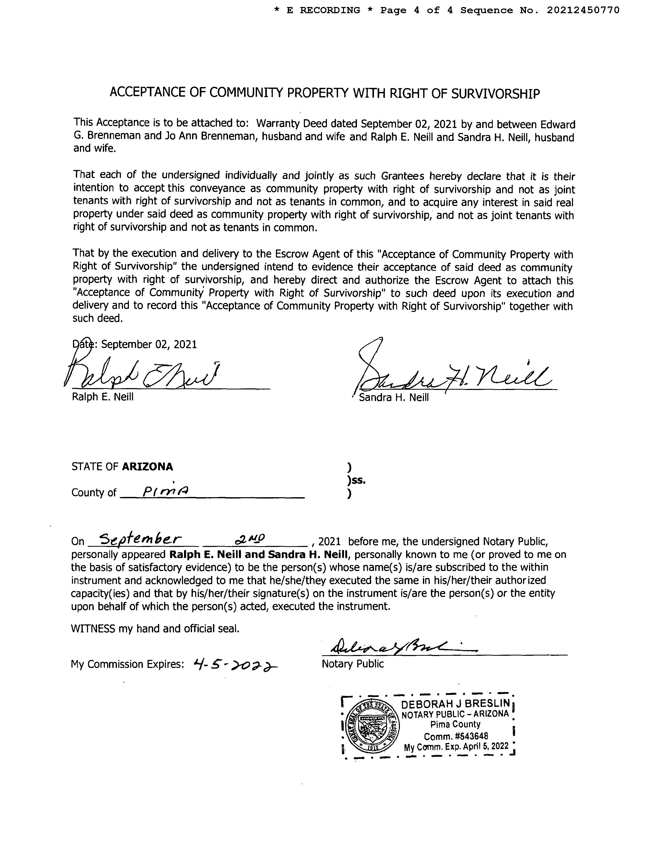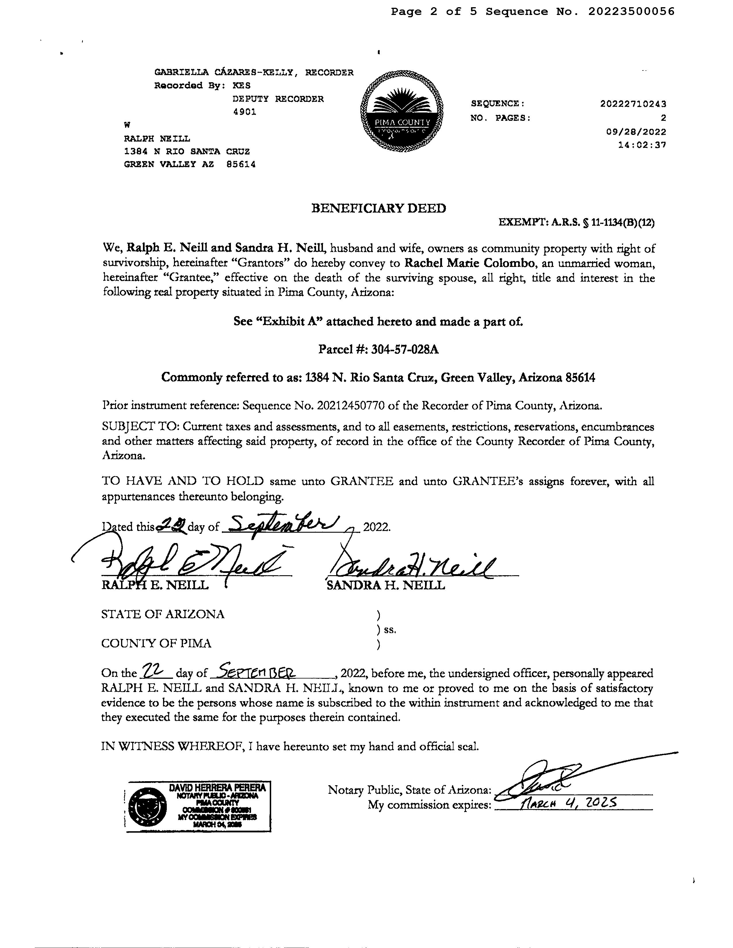 OWNER: NEILL RALPH & SANDRA AFFIDAVIT 2021 2450770 09/02/2021
