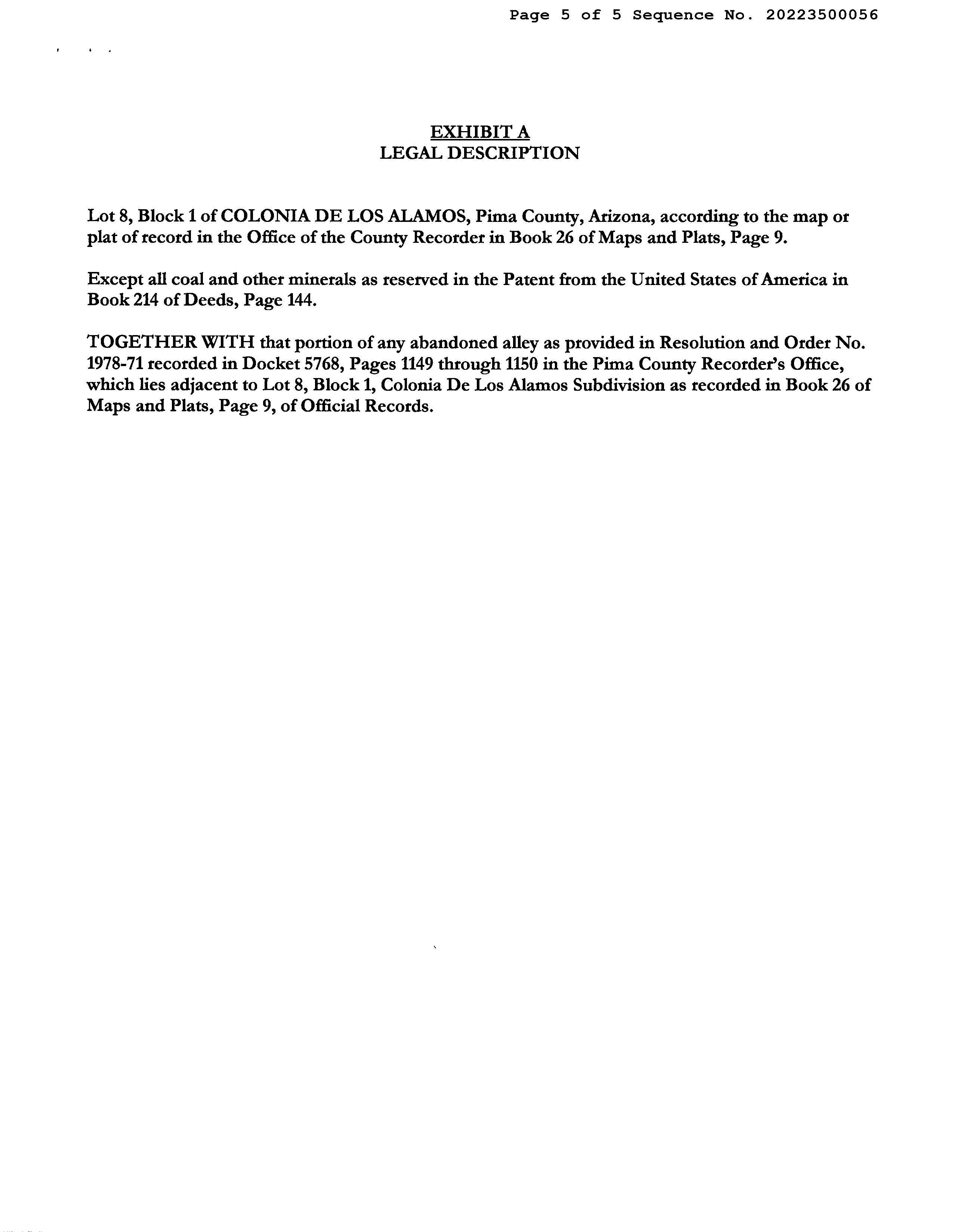 LEGAL: COLONIA DE LOS ALAMOS BLK 1 LOT 8 & PT OF ABAND ALLEY