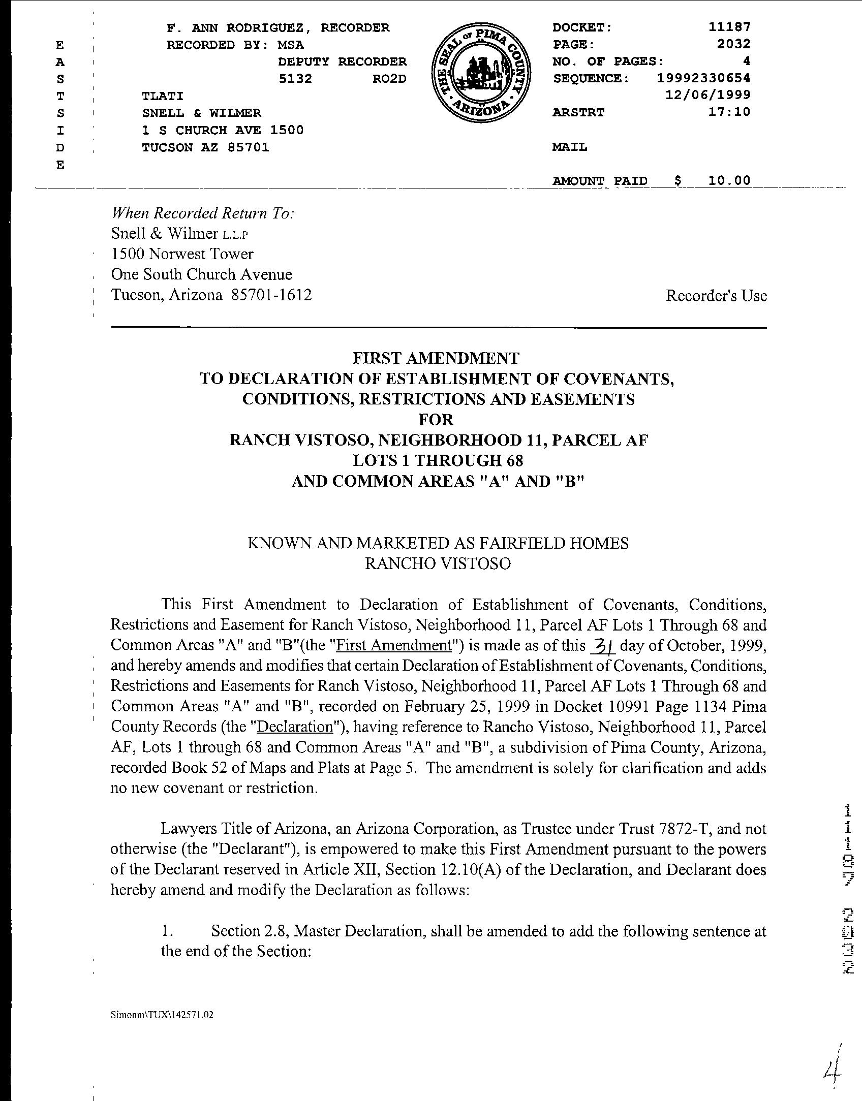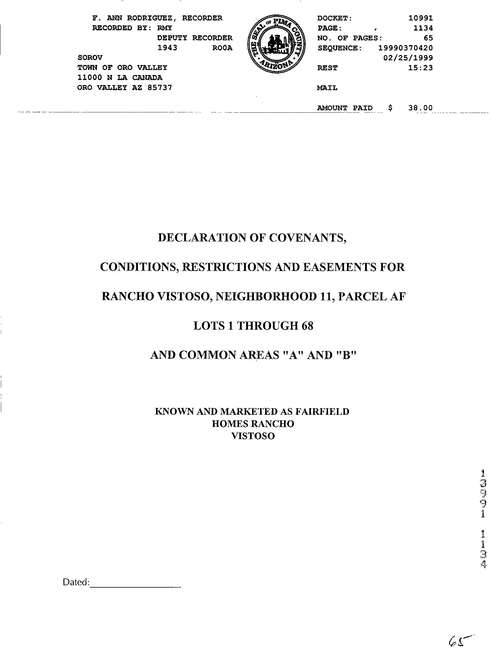LEGAL: RANCHO VISTOSO NEIGHBORHOOD 11 PARCEL AF LOT 0063 (11517/6141)