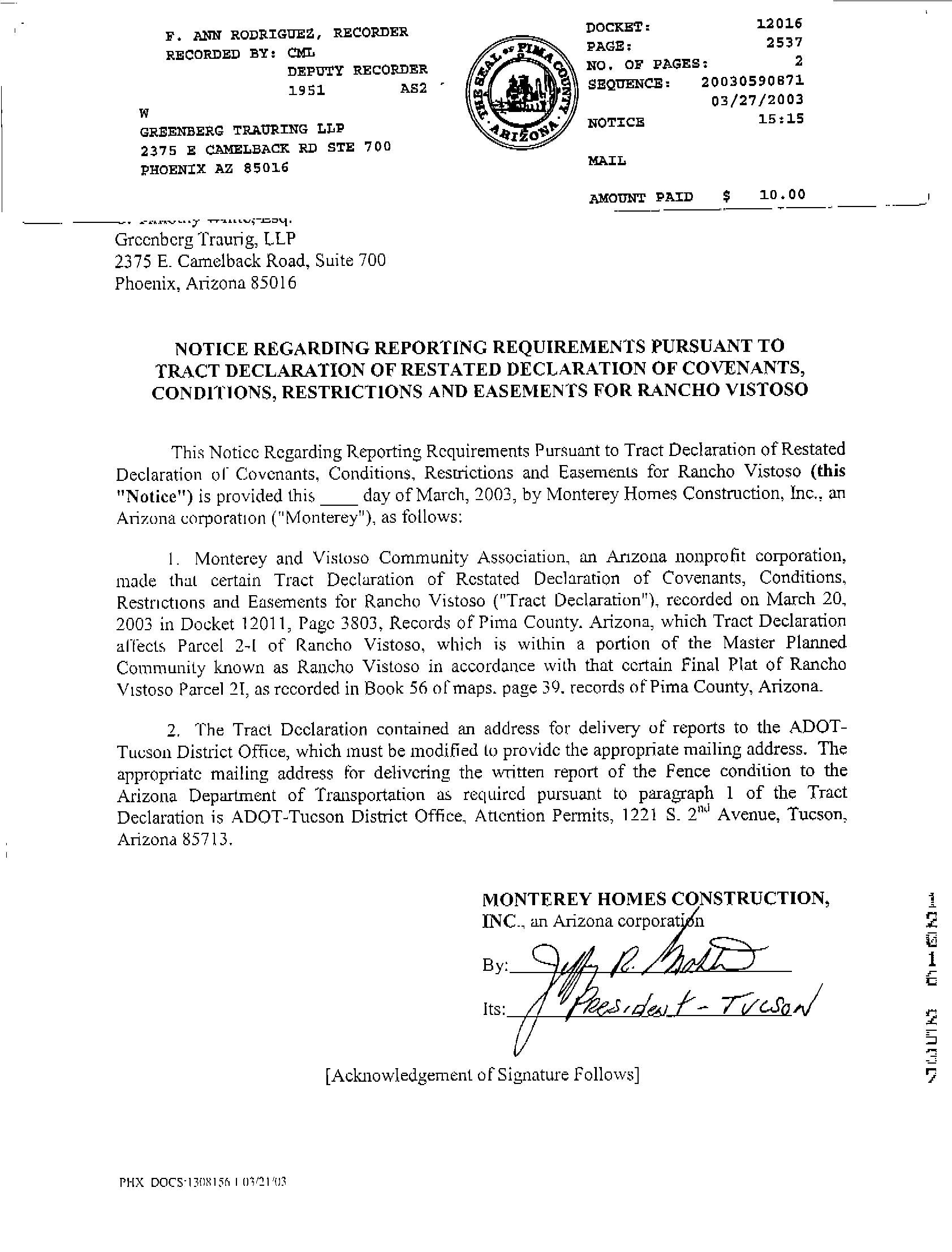 12522 5070 WD MONTEREY HOME ARIZONA INC