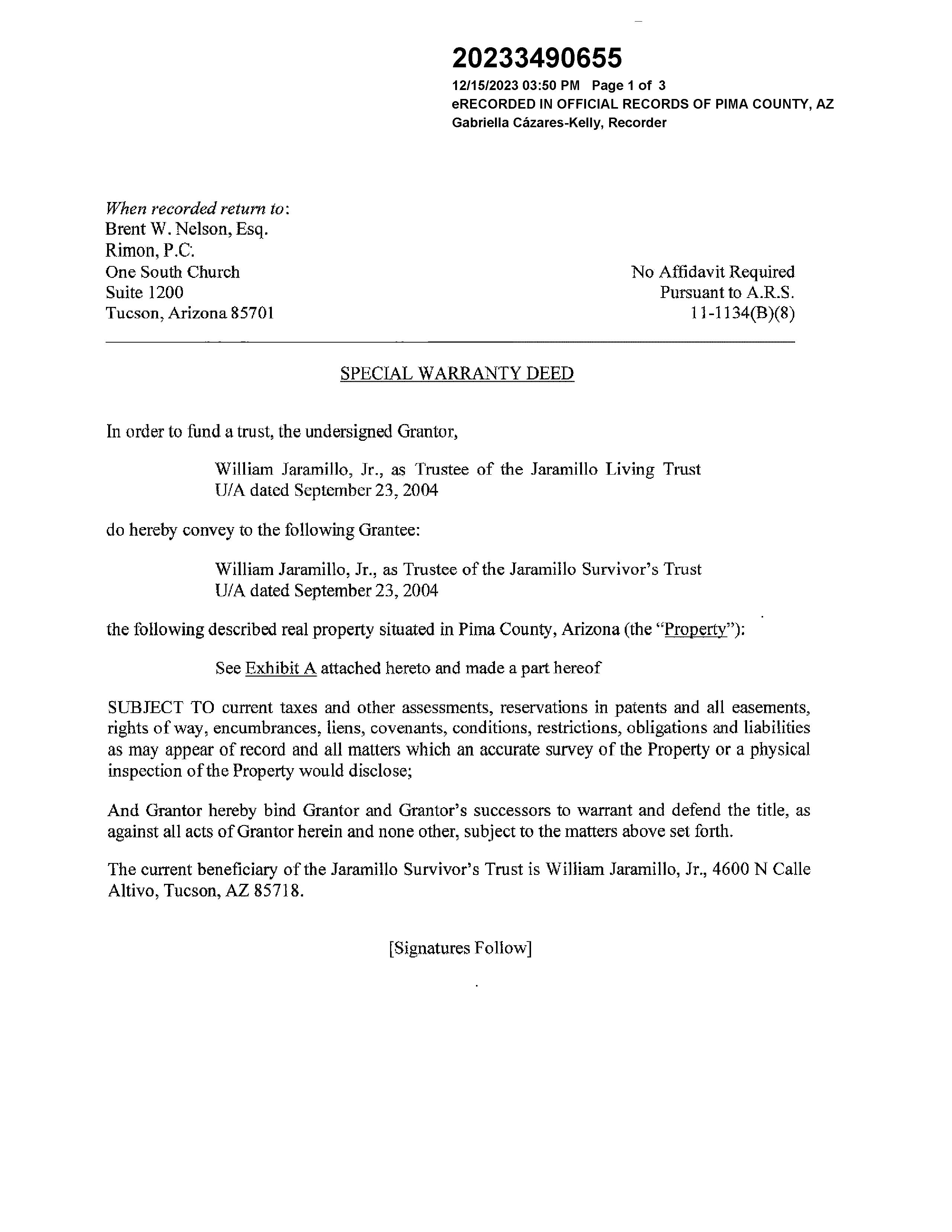 Mailing Address : 4600 N Calle Altivo, Tucson AZ 85718-5810 C034