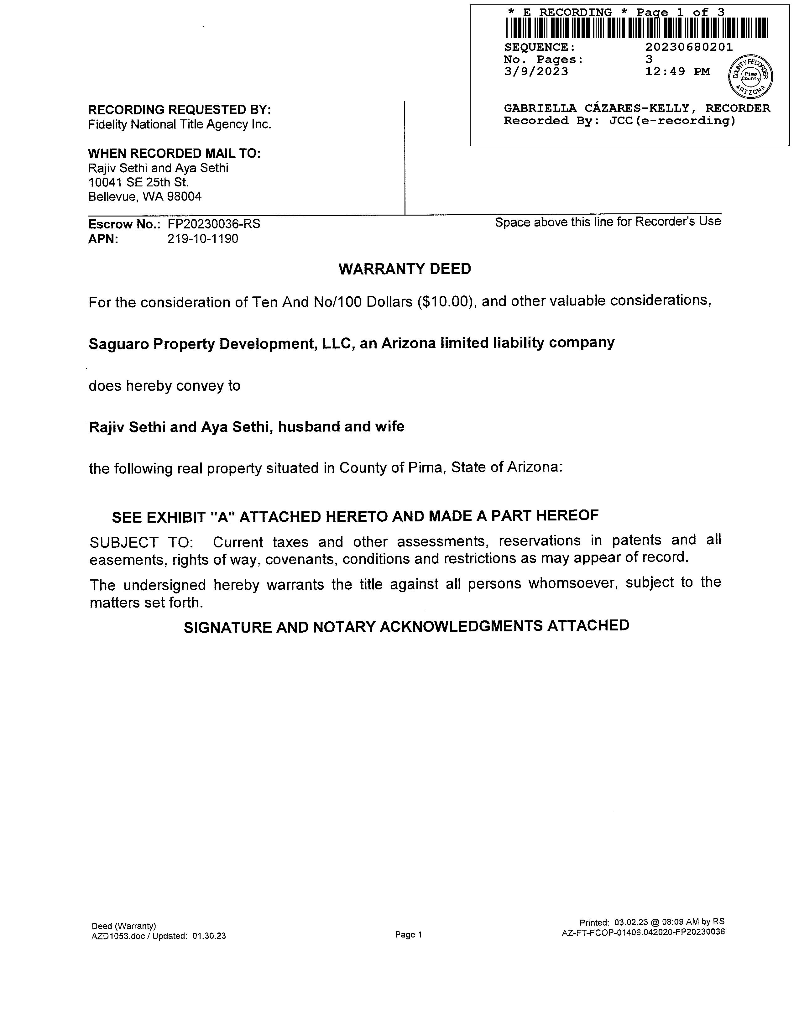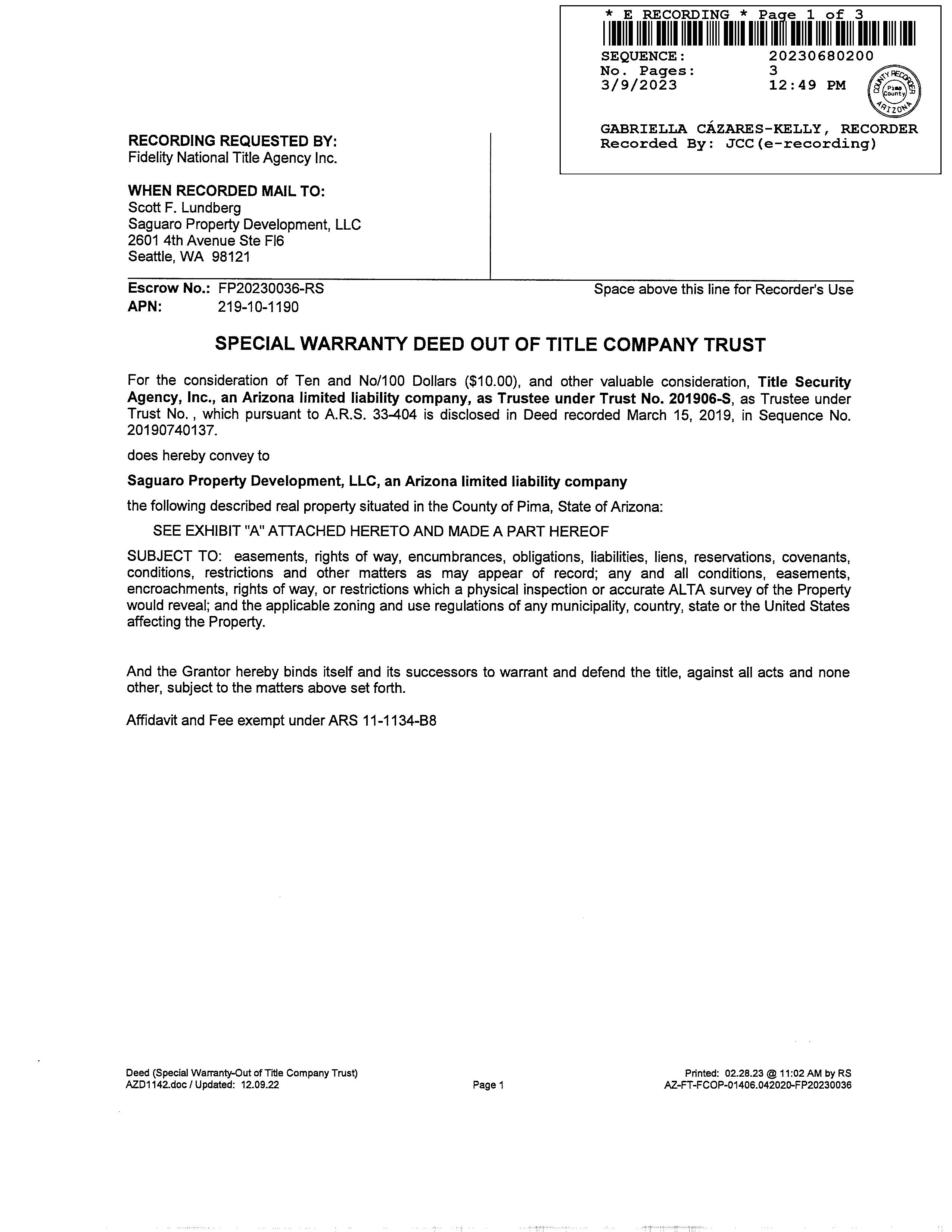 LegalDescriptionDetails LotNumber:53District:TORTOLITAFOCity,Municipality,Township:TORTOLITAFOOTHILLSSubdivisionName:SAGUARORANCHIISec/Twn/Rng/Mer: SEC20TWN11SRNG13EBriefDescription:SAGUARORANCHIILOT53Recorder'sMapRef:PLAT:89 CurrentOwnershipInformation
