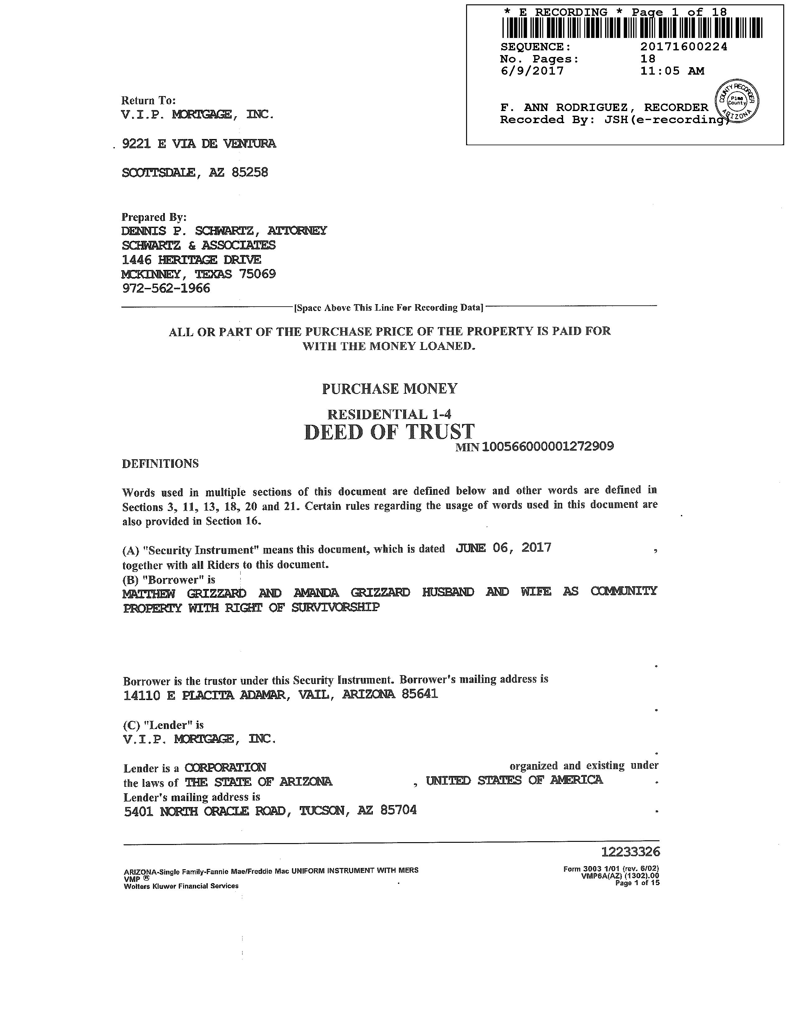 OWNER: GRIZZARD MATTHEW & AMANDA AFFIDAVIT 2017 1600223 06/09/2017