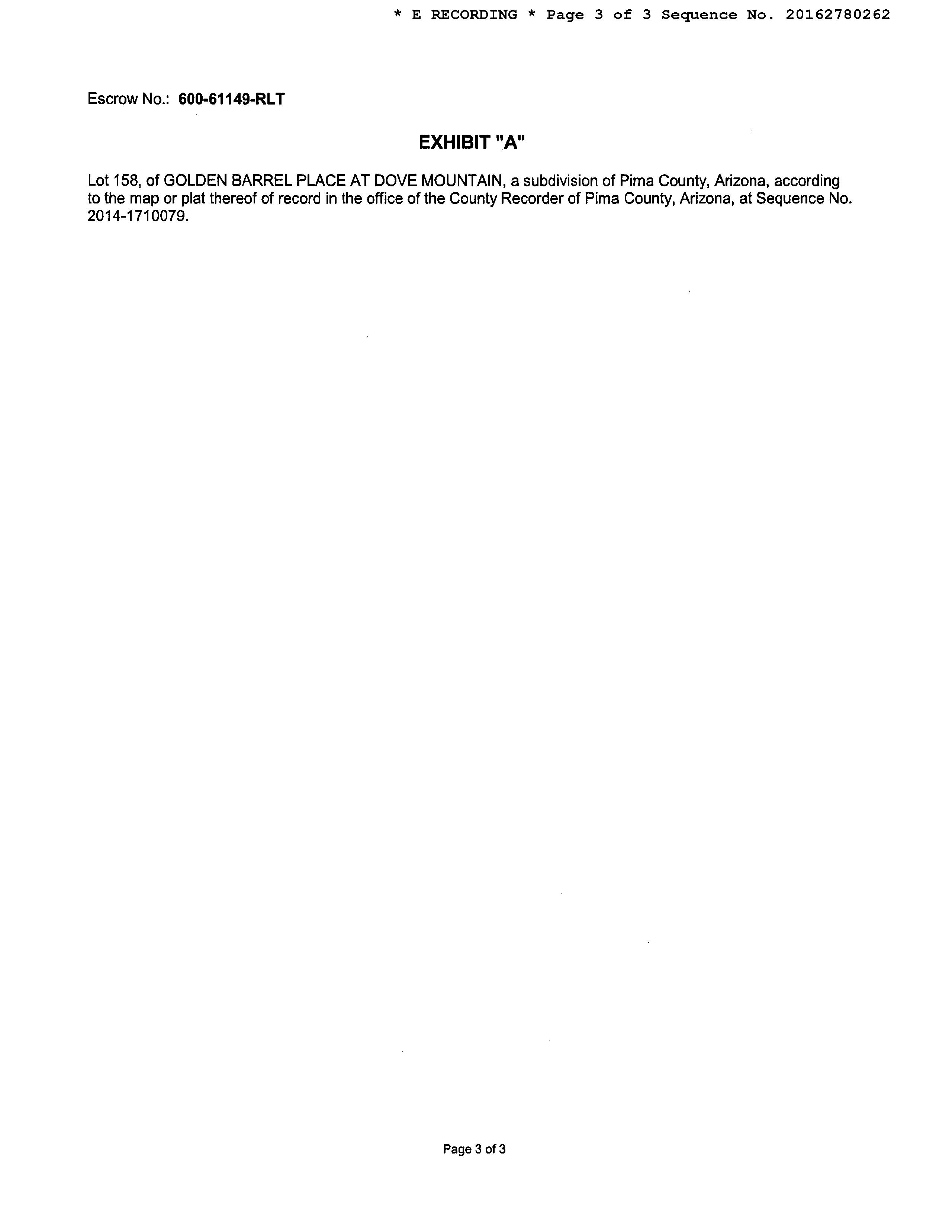 LEGAL: GOLDEN BARREL PLACE AT DOVE MOUNTAIN LOT 158 SQ20141710079