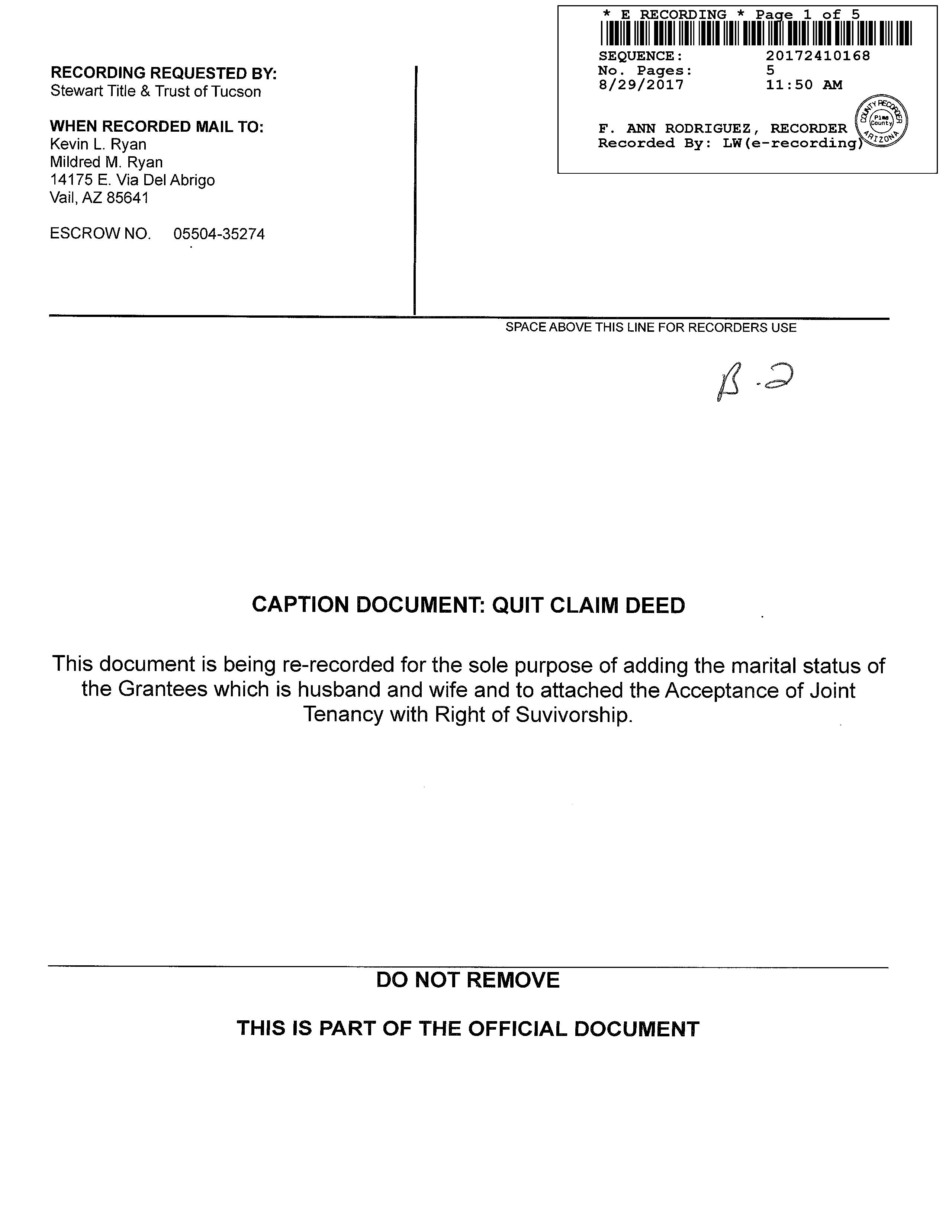 Owner Name : Ryan Kevin L / Ryan Mildred M