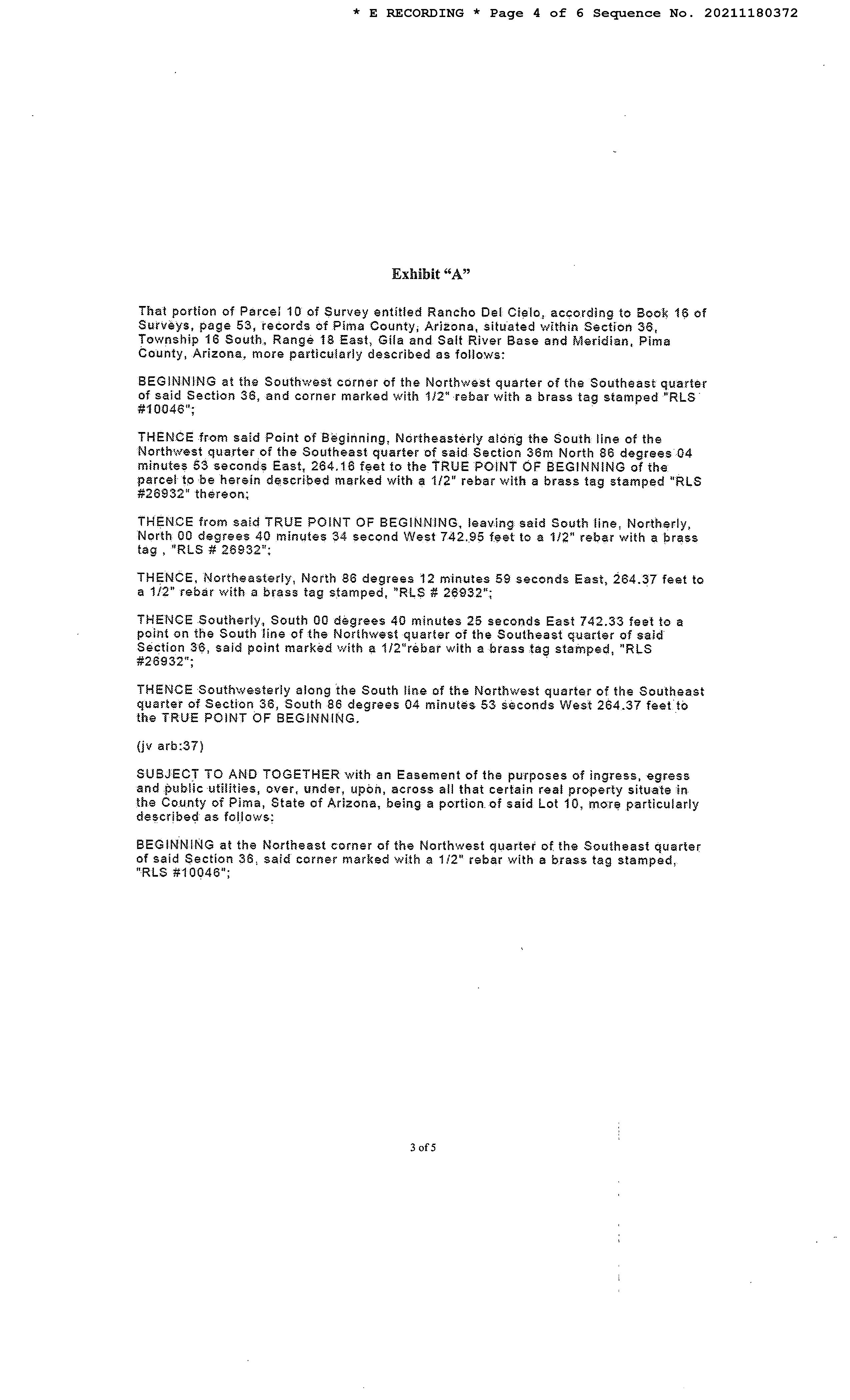 Legal Description : S742.95' E264.37' W528.53' Rancho Del Cielo Rs 16/53 Aka Ptn Nw4 Se4 4.5 Ac Sec 36-16-18