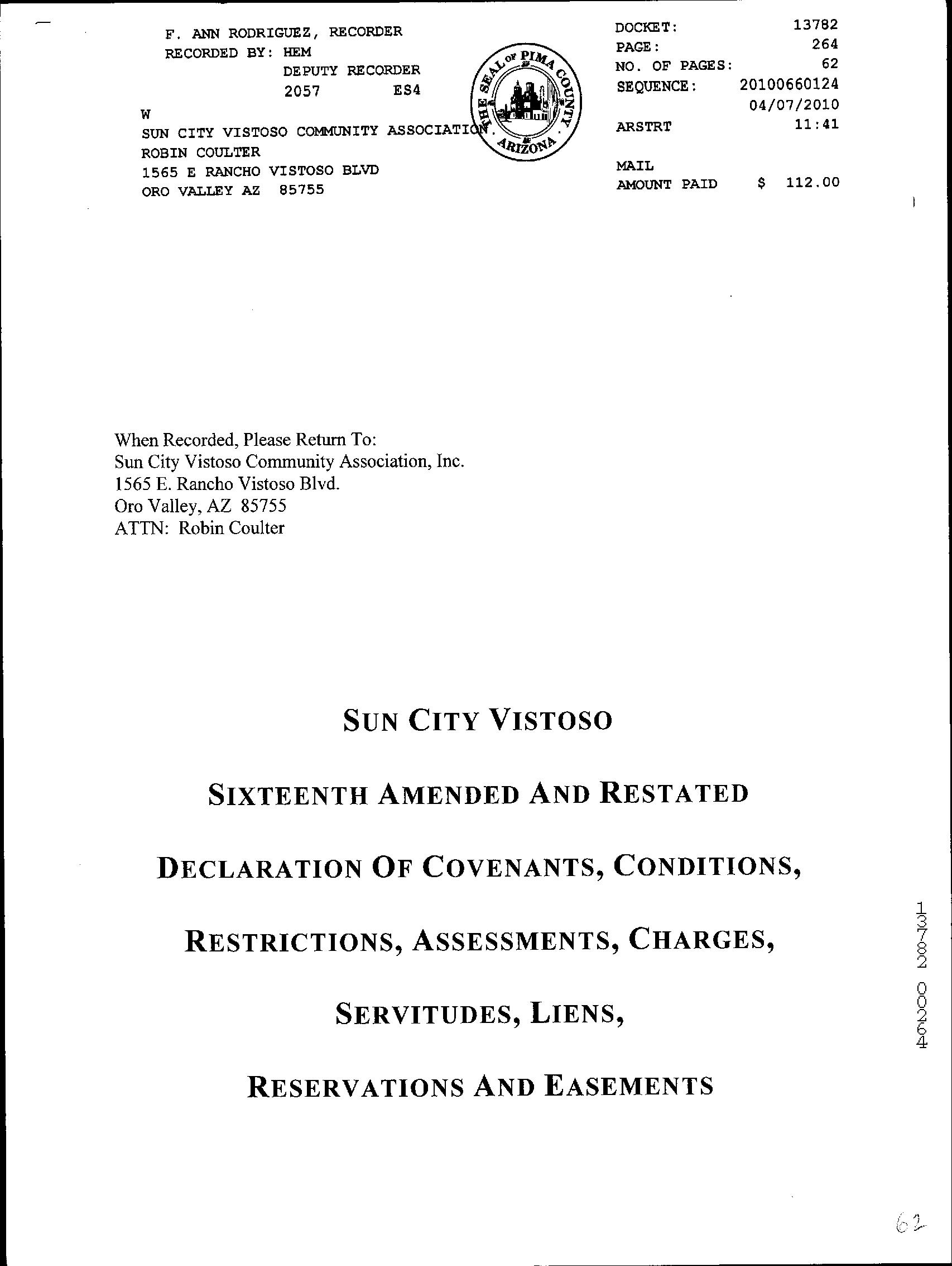 Subdivision / Tract: Sun City Vistoso Amd 02 / Lot Size: 7,877