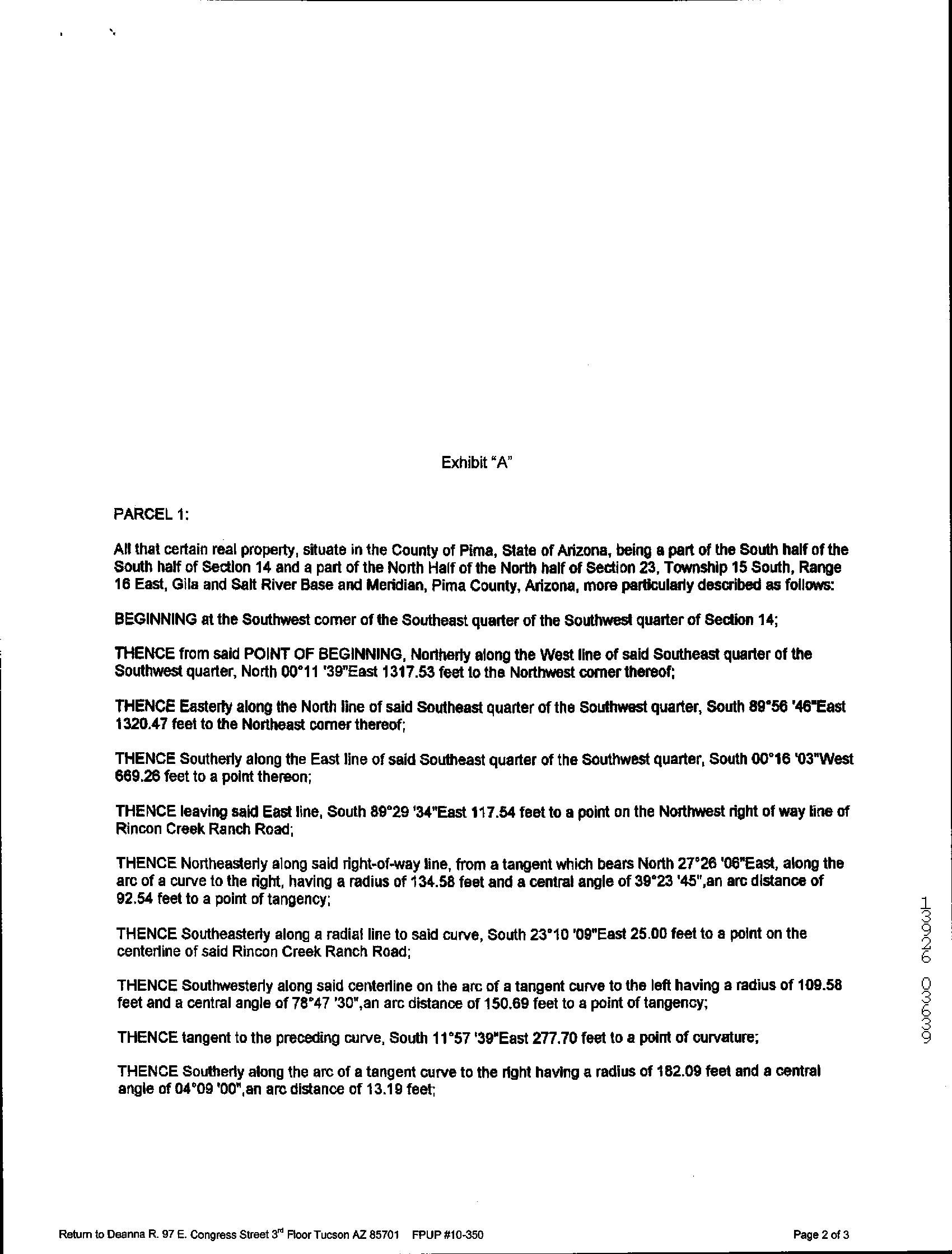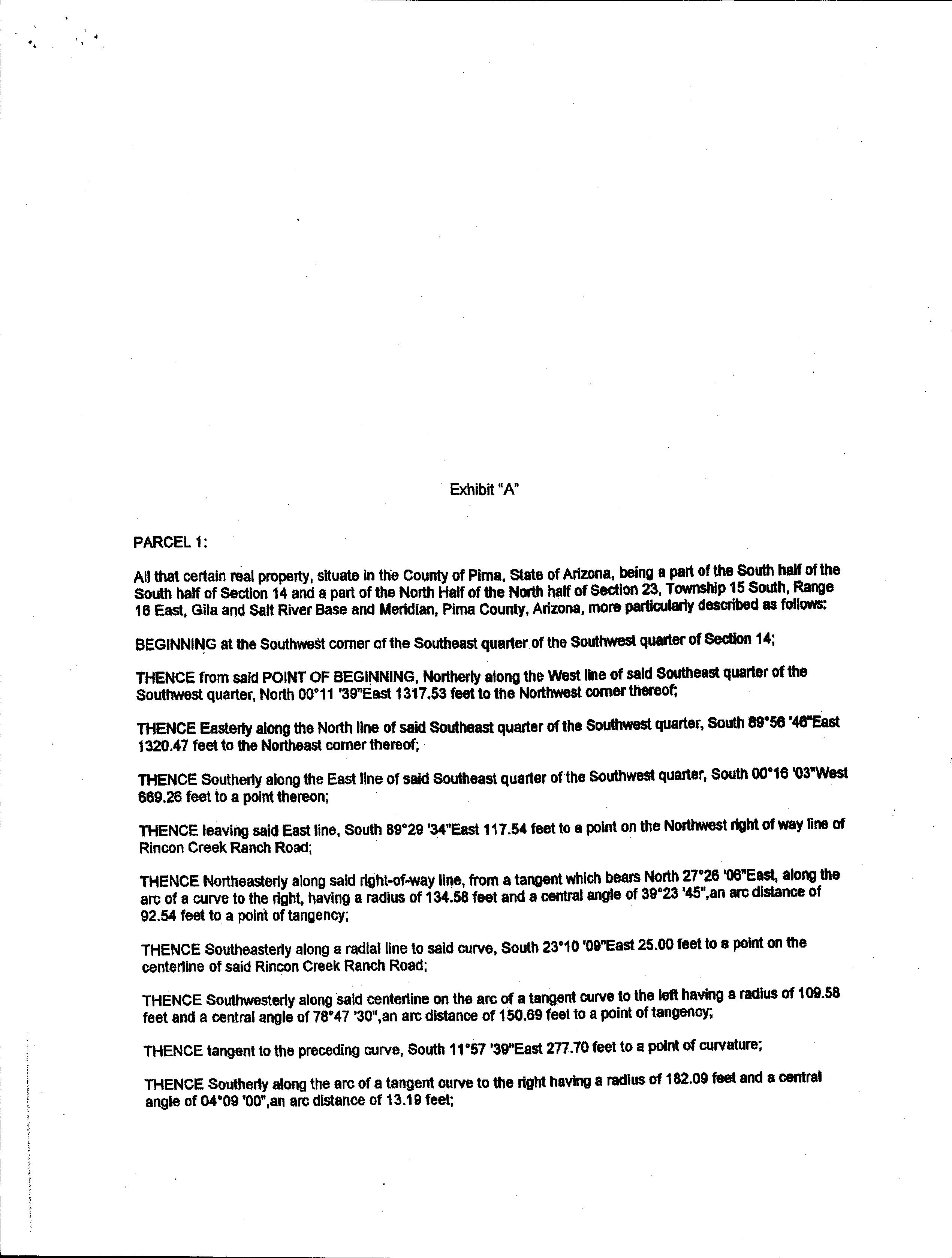 Subject Property : 14545 E Rincon Creek Ranch Rd Tucson AZ 85747