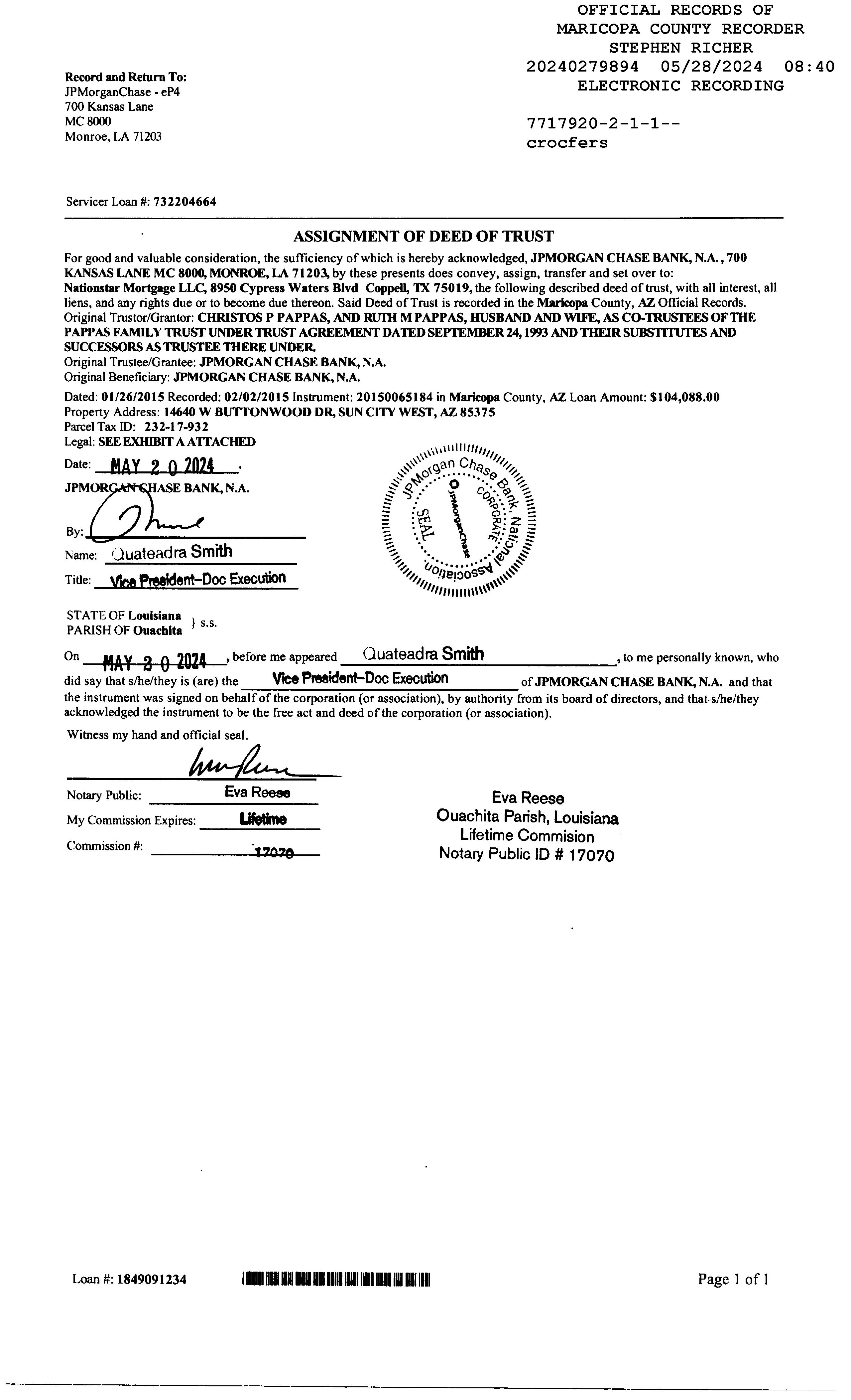 Sale Date : 01/06/2015 Recording Date : 02/25/2015