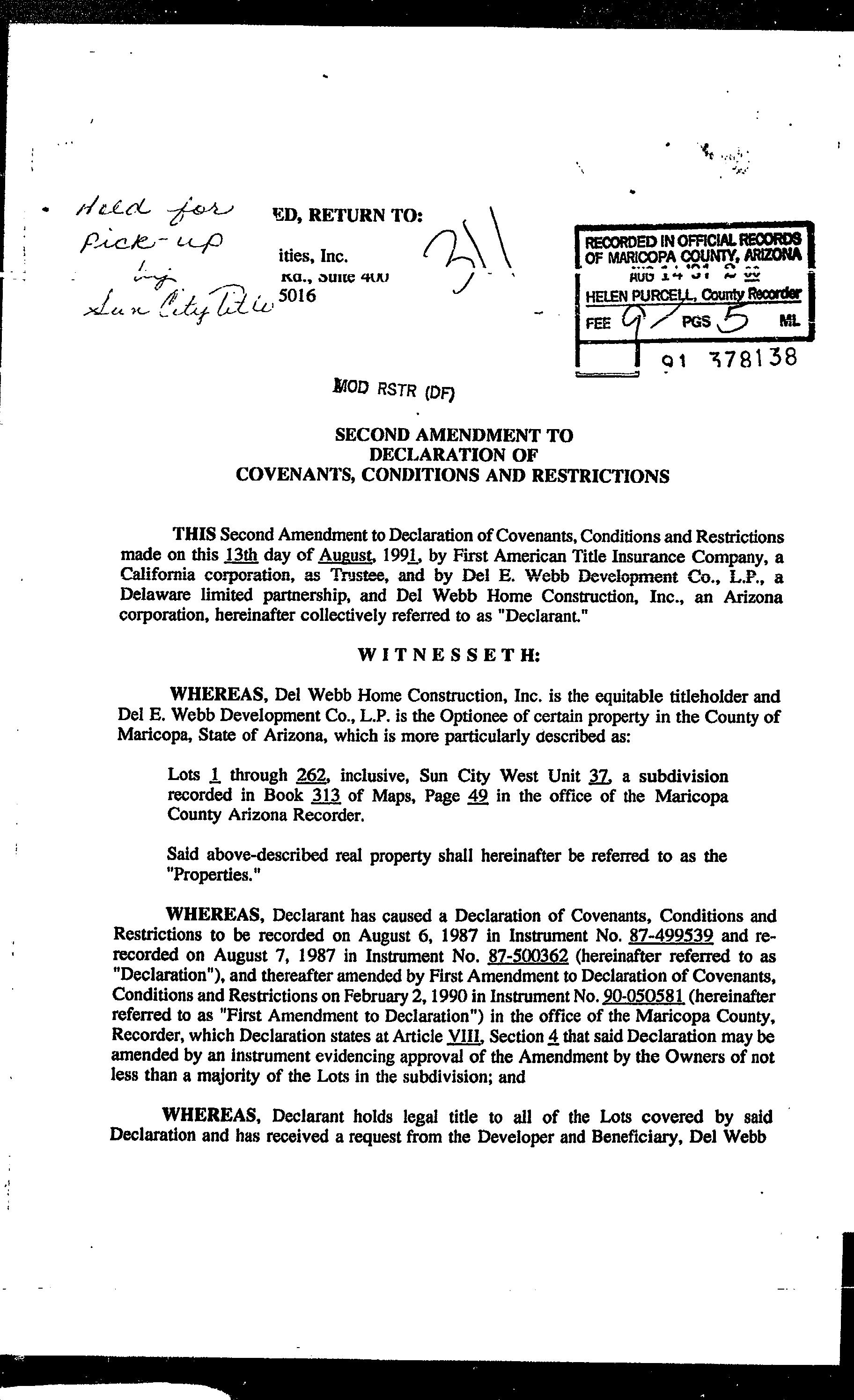 LEGAL: SUN CITY WEST UNIT 37 MCR 313-49