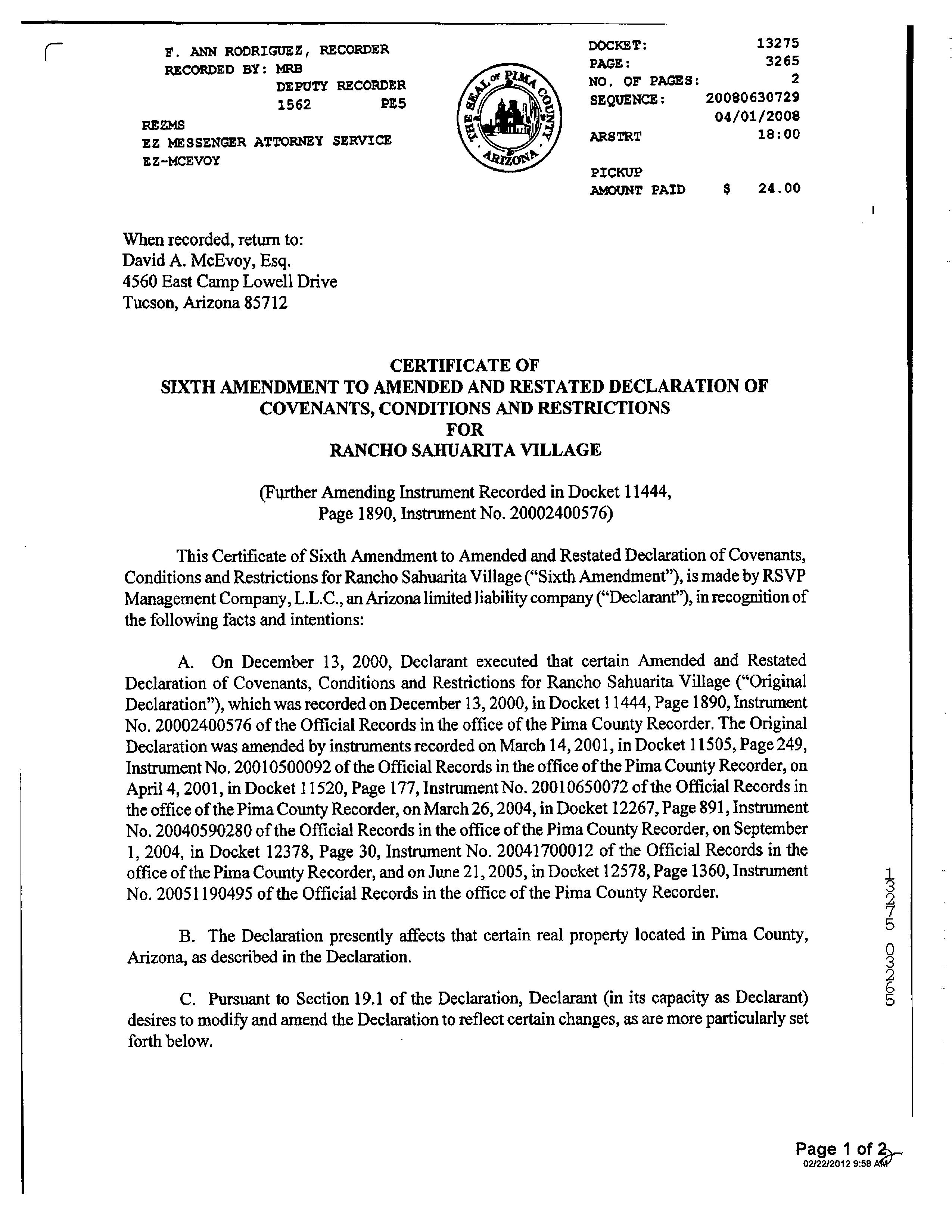 Covenants, Conditions & Restrictions