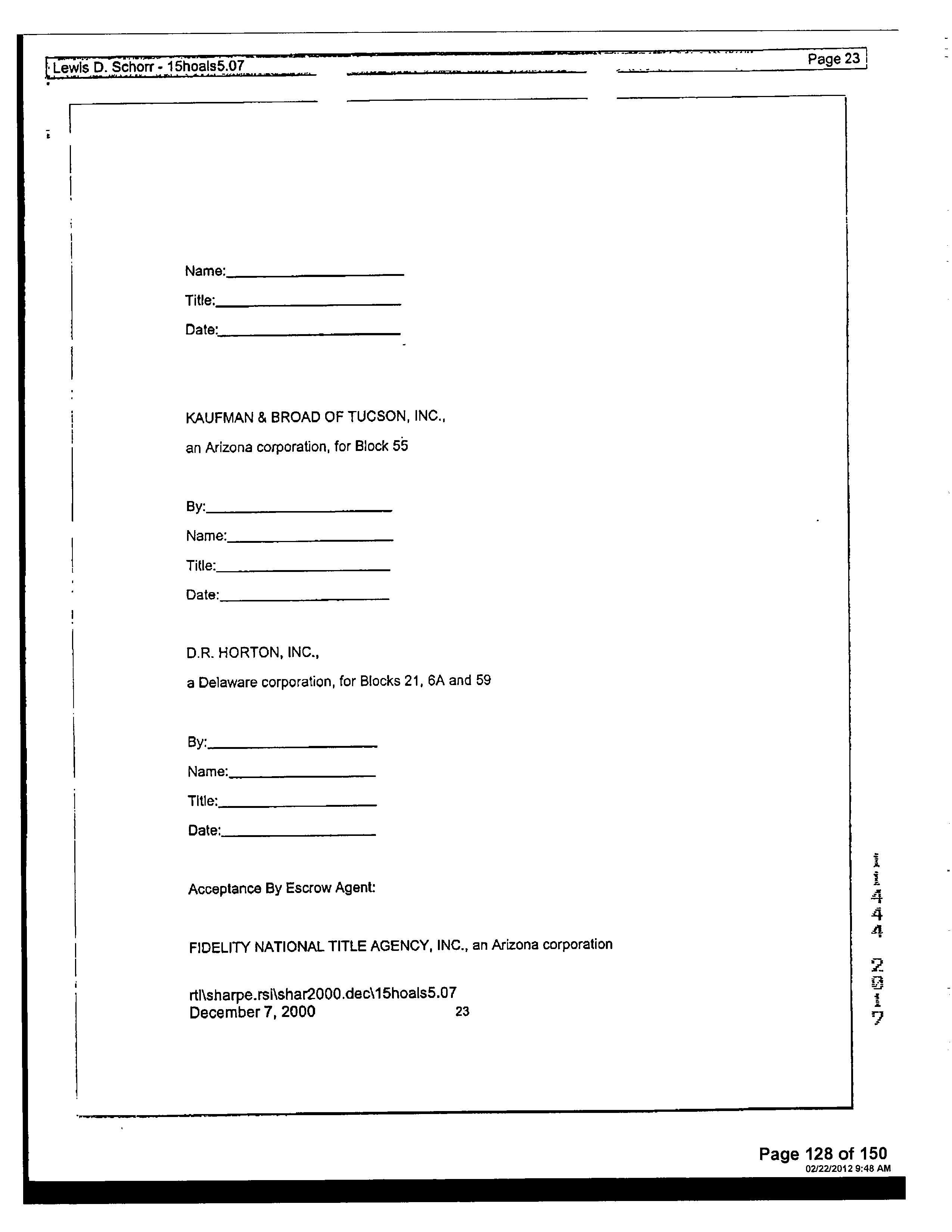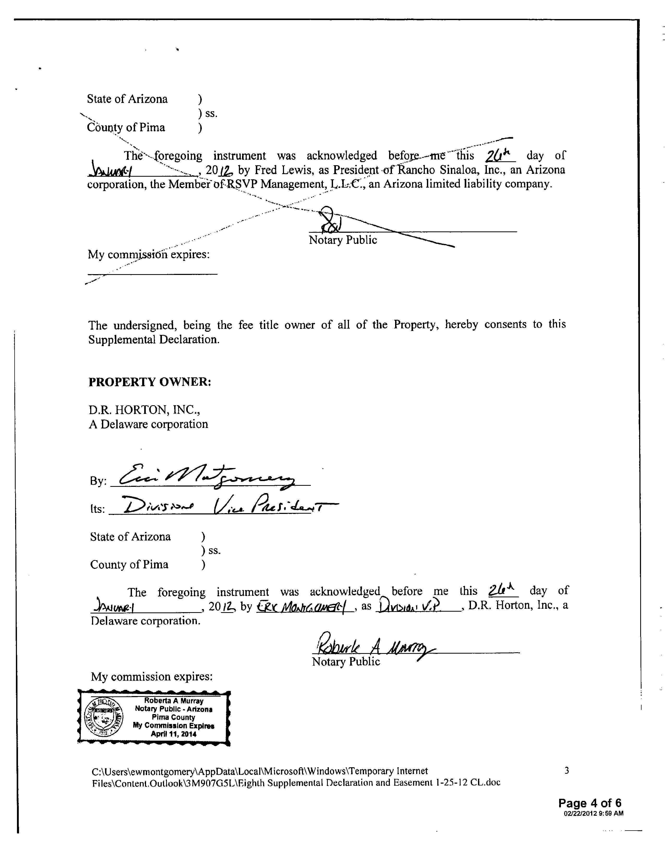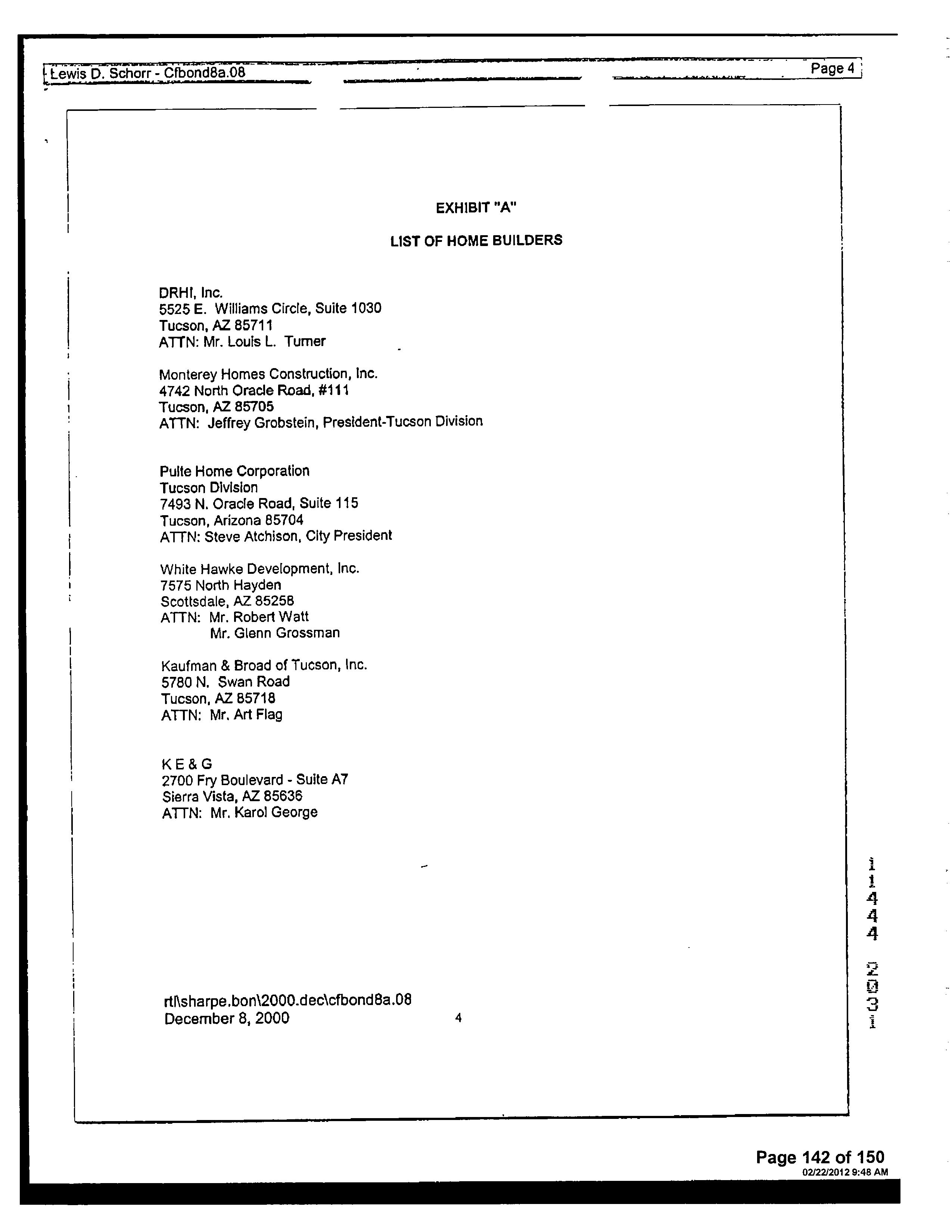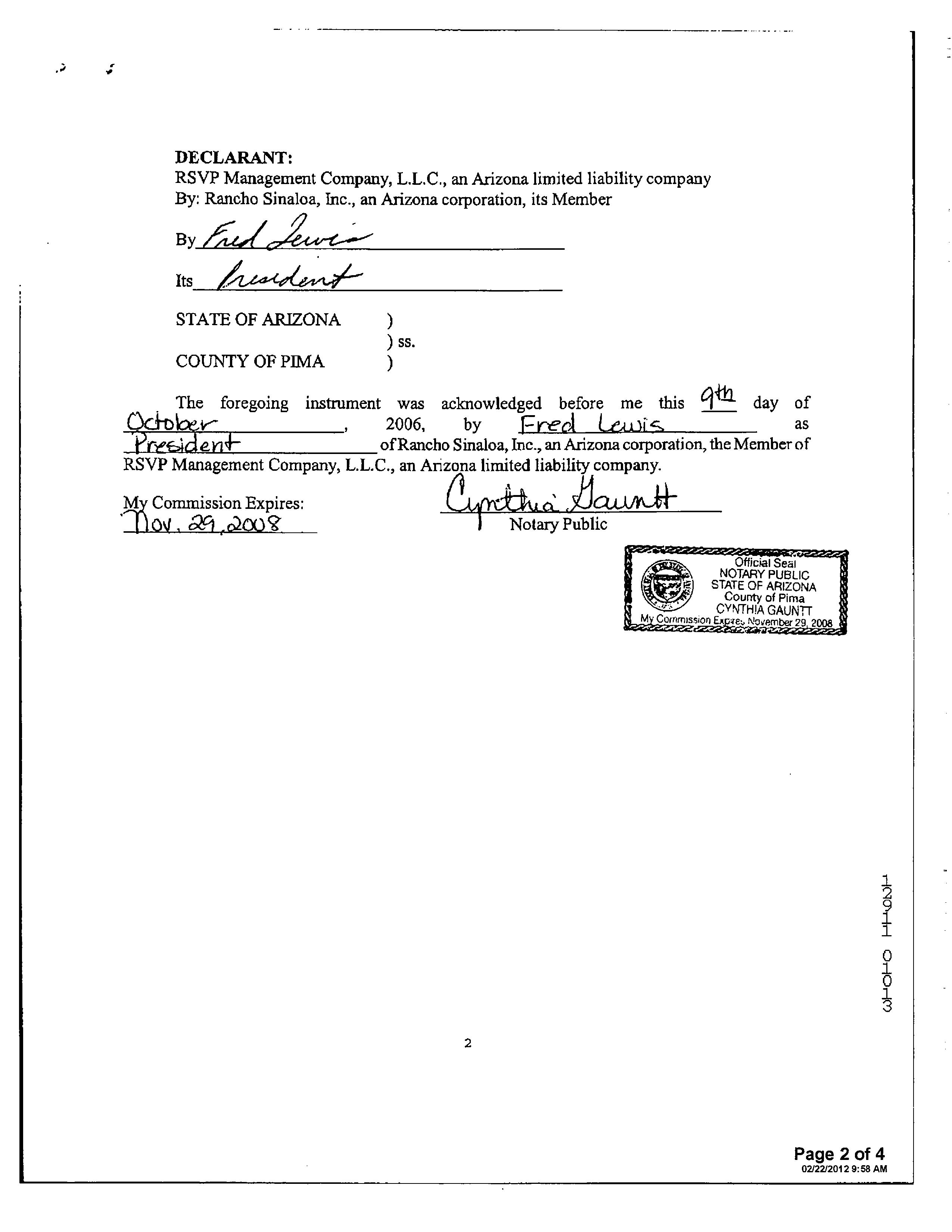 13516 1728 SW FEDERAL HOME LOAN MORTGAGE 12/11/2006 407,132 12948 3796 WD INSIGHT HOMES INC 03/21/2006 1,371,800 12765 6523 WD KB HOME SALES-TUCSON INC M ADDITIONAL PROPERTY INFORMATION STANDARD LAND USE: SFR