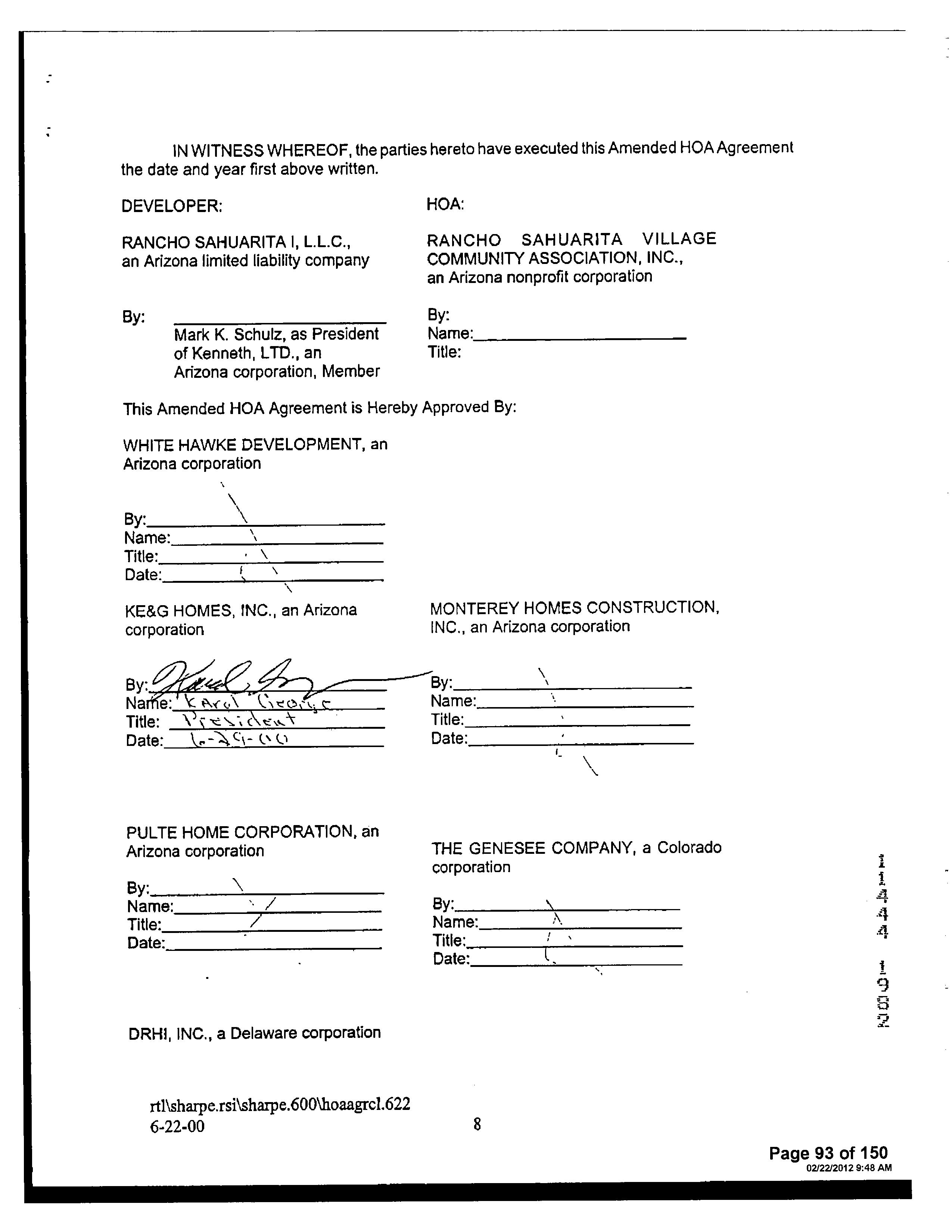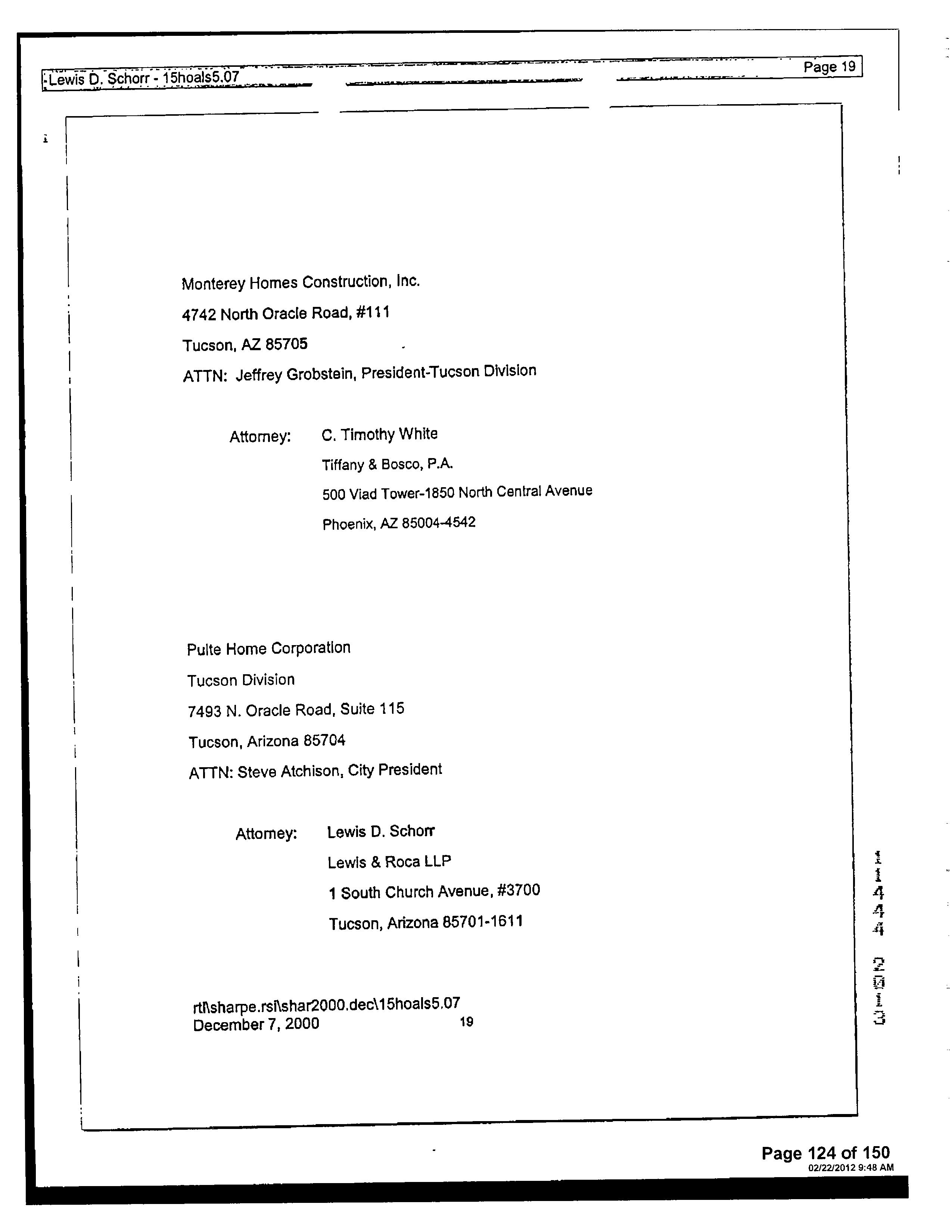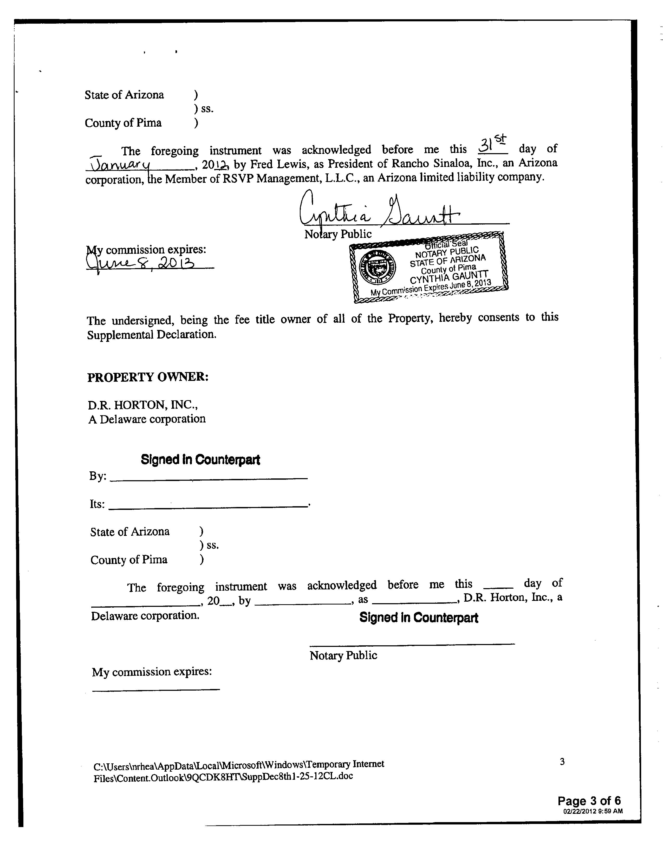 13516 1728 SW FEDERAL HOME LOAN MORTGAGE 12/11/2006 407,132 12948 3796 WD INSIGHT HOMES INC 03/21/2006 1,371,800 12765 6523 WD KB HOME SALES-TUCSON INC M ADDITIONAL PROPERTY INFORMATION STANDARD LAND USE: SFR