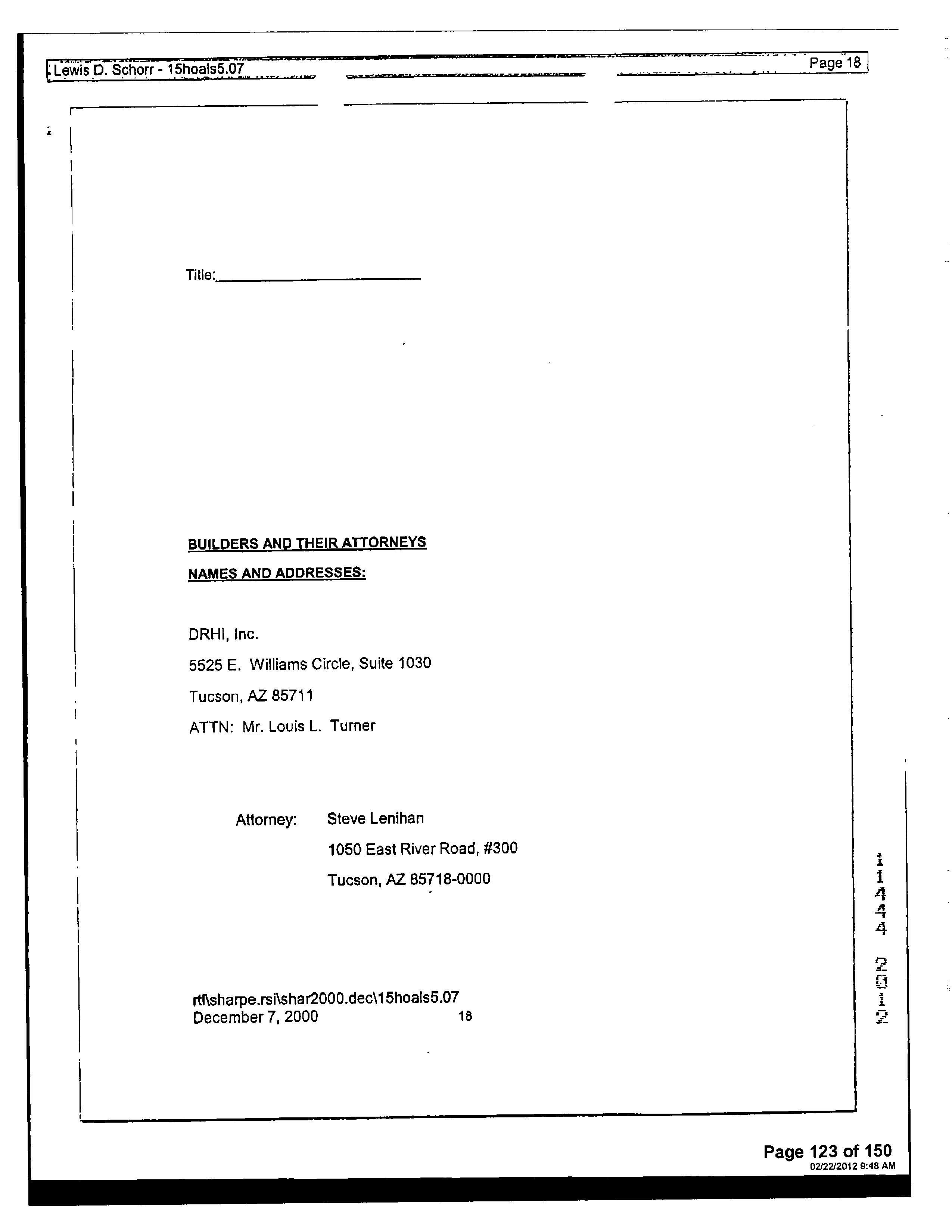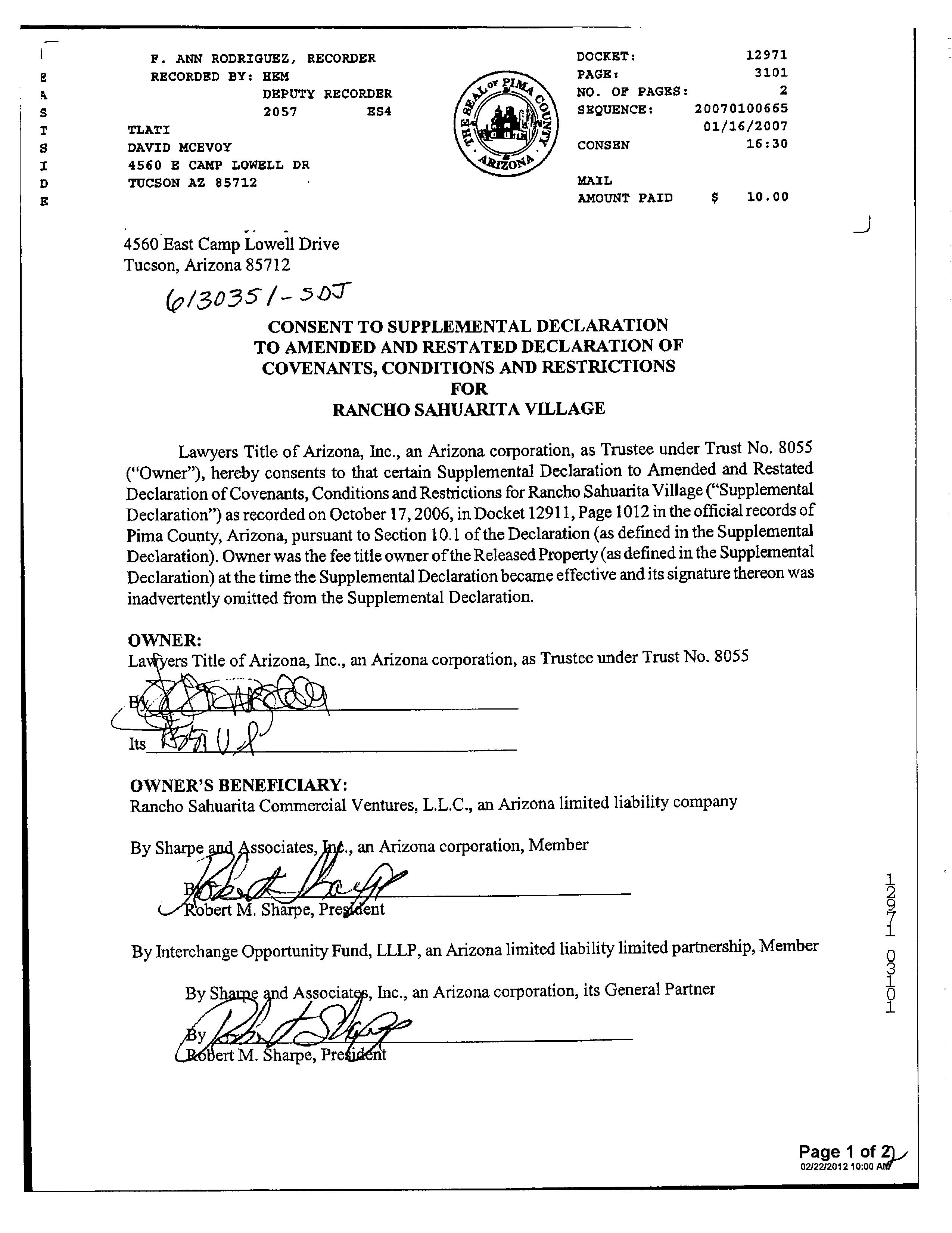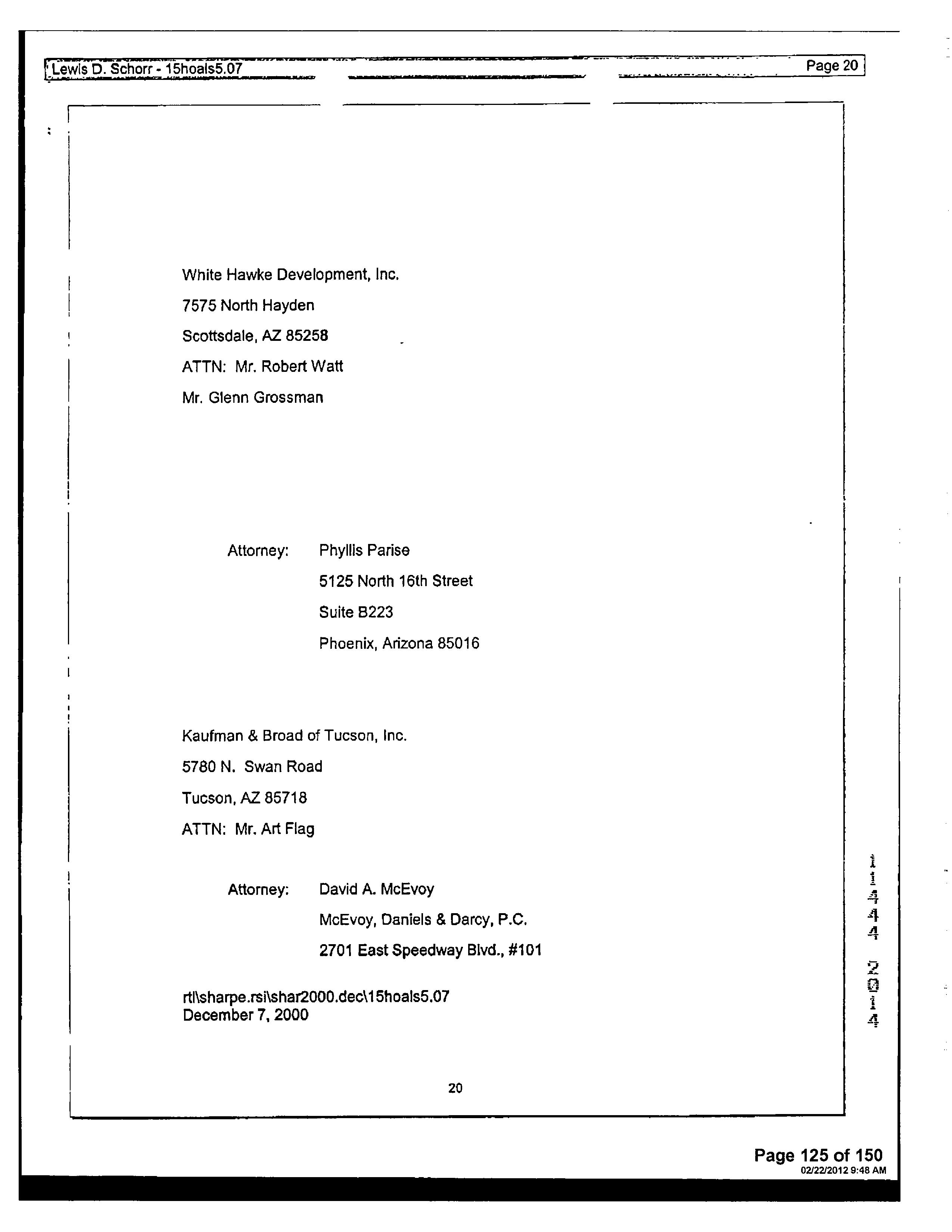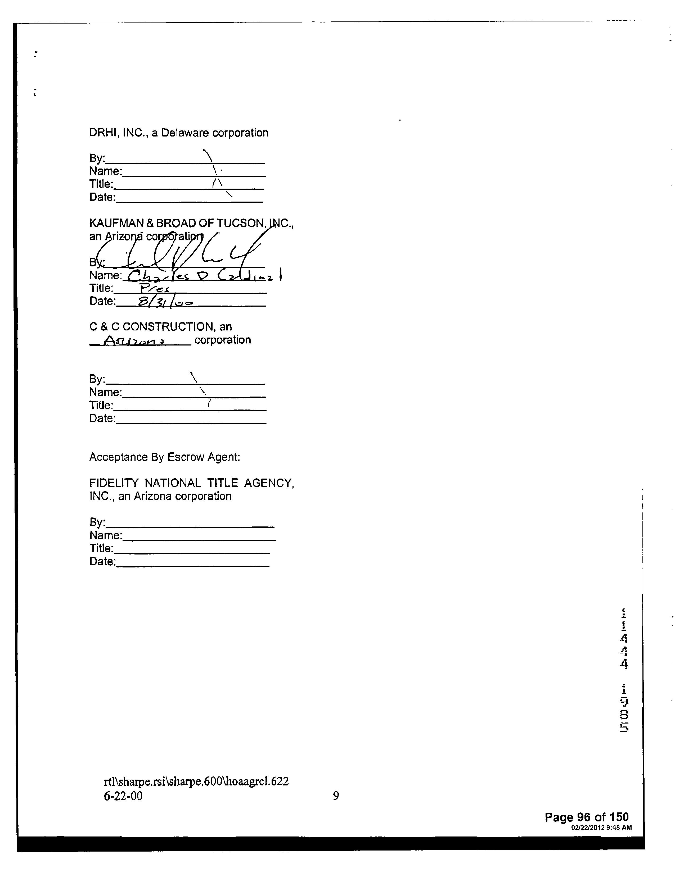 13516 1728 SW FEDERAL HOME LOAN MORTGAGE 12/11/2006 407,132 12948 3796 WD INSIGHT HOMES INC 03/21/2006 1,371,800 12765 6523 WD KB HOME SALES-TUCSON INC M ADDITIONAL PROPERTY INFORMATION STANDARD LAND USE: SFR