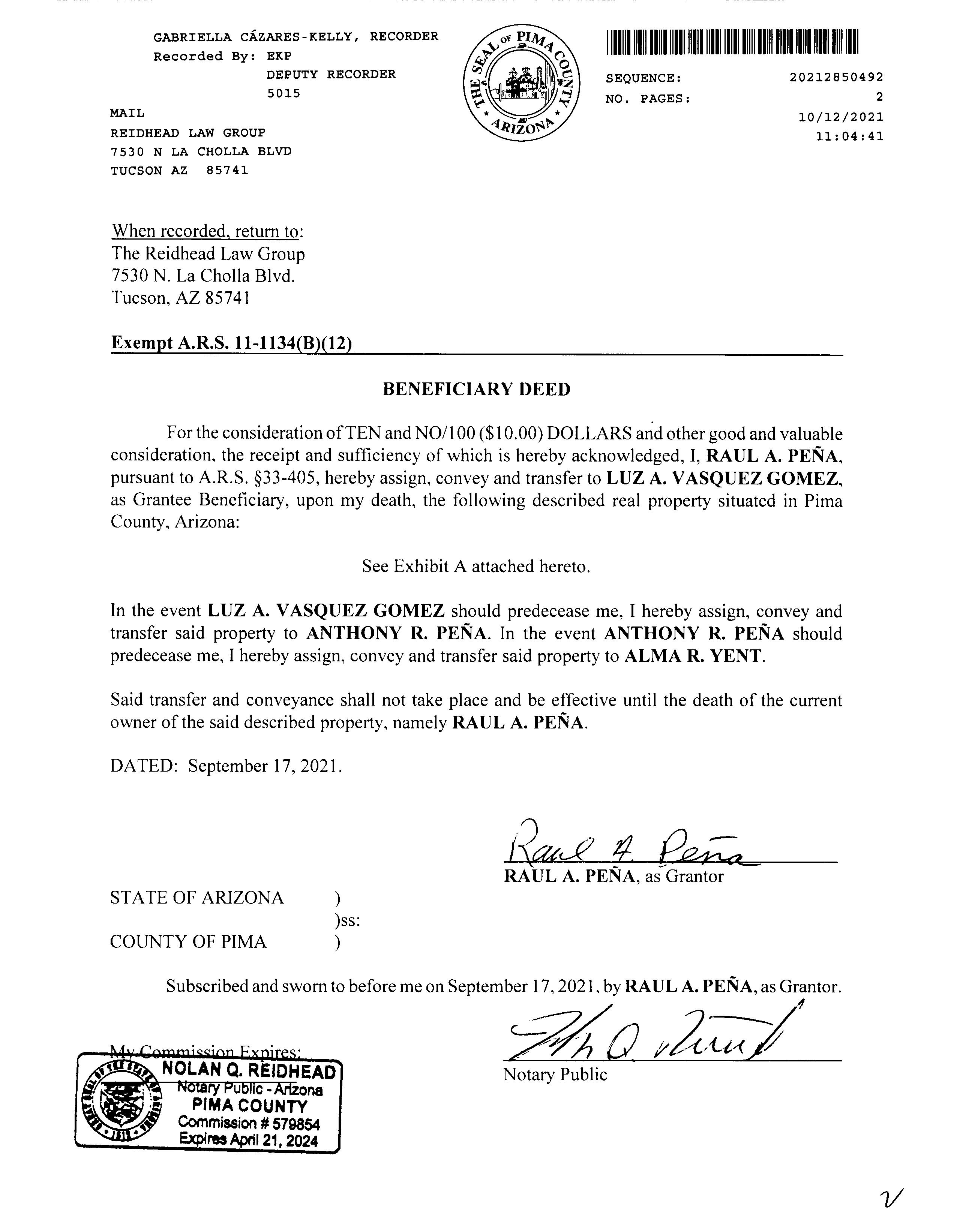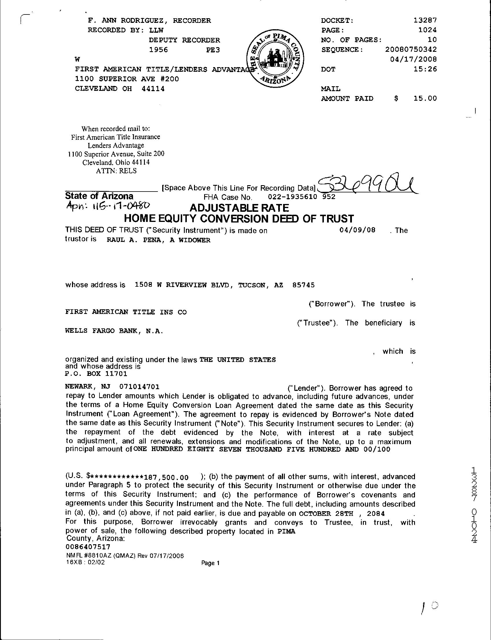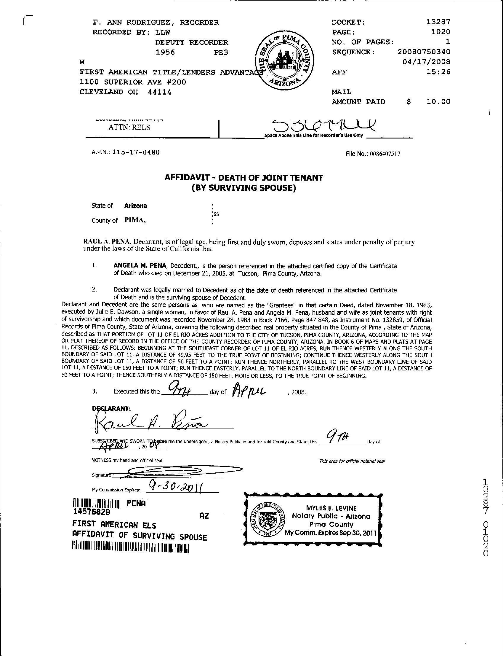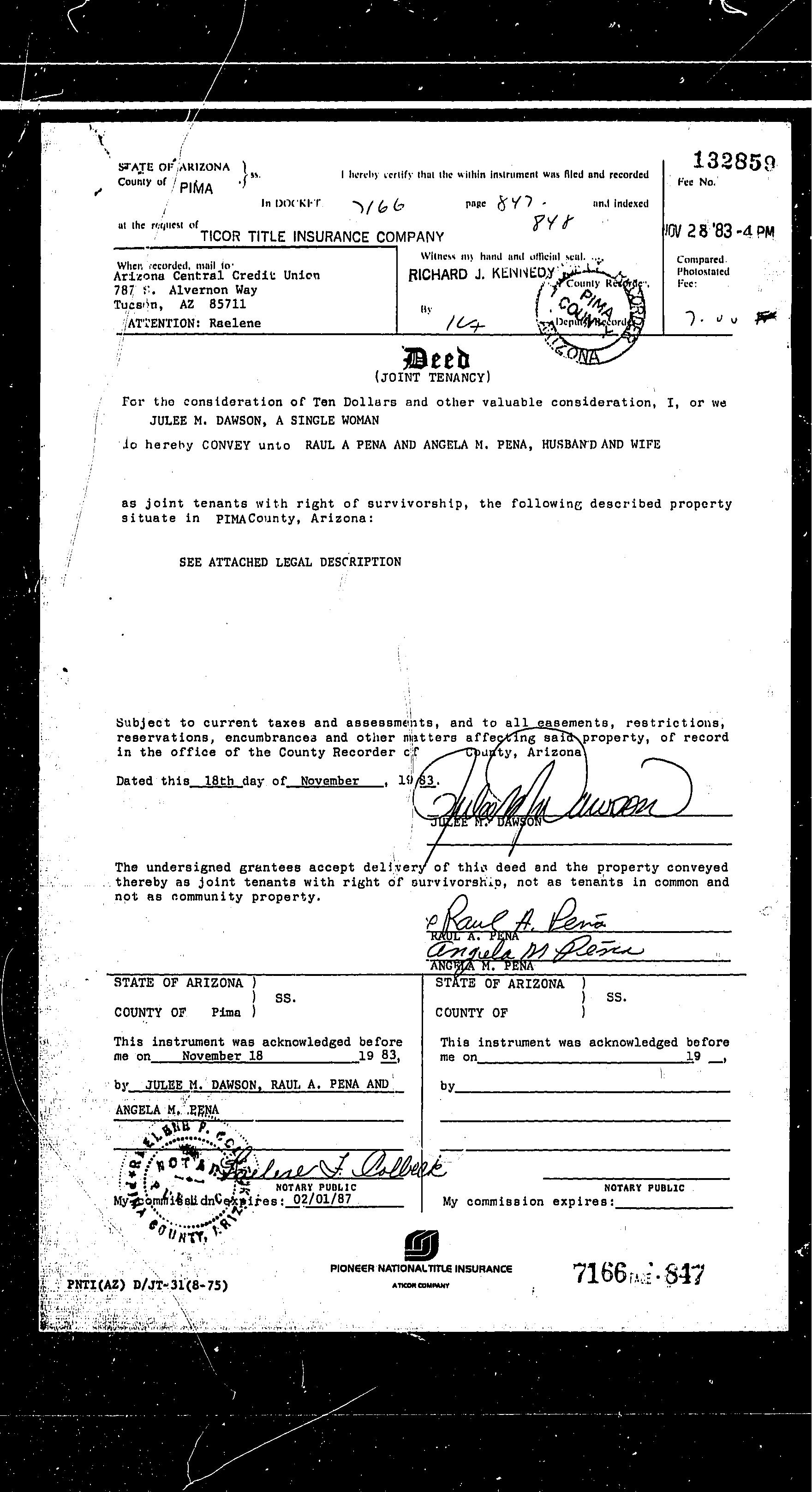 OWNER: PENA RAUL A 7166 847 11/28/1983