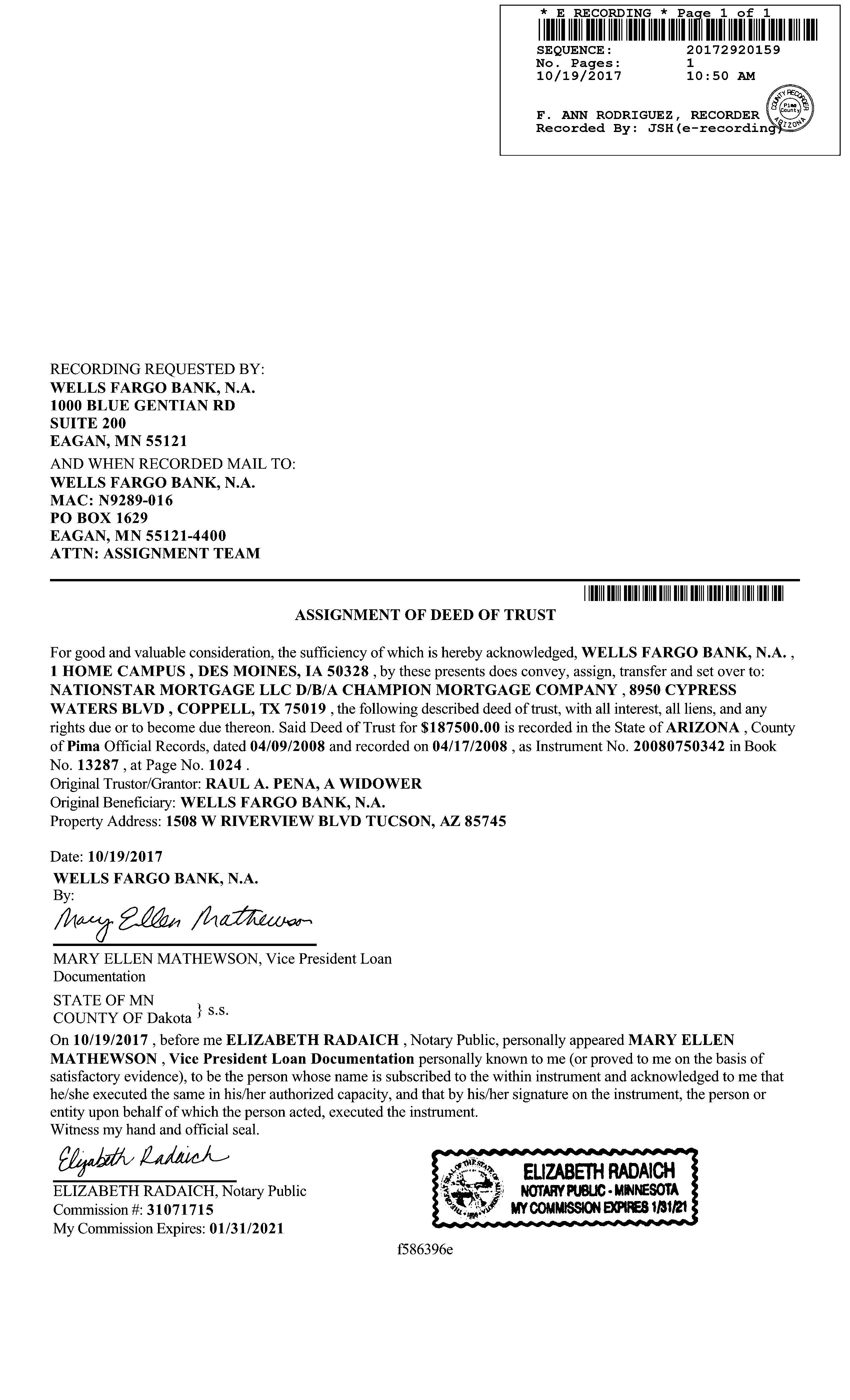 Mailing Address : 1508 W Riverview Blvd, Tucson AZ 85745-2028 C021