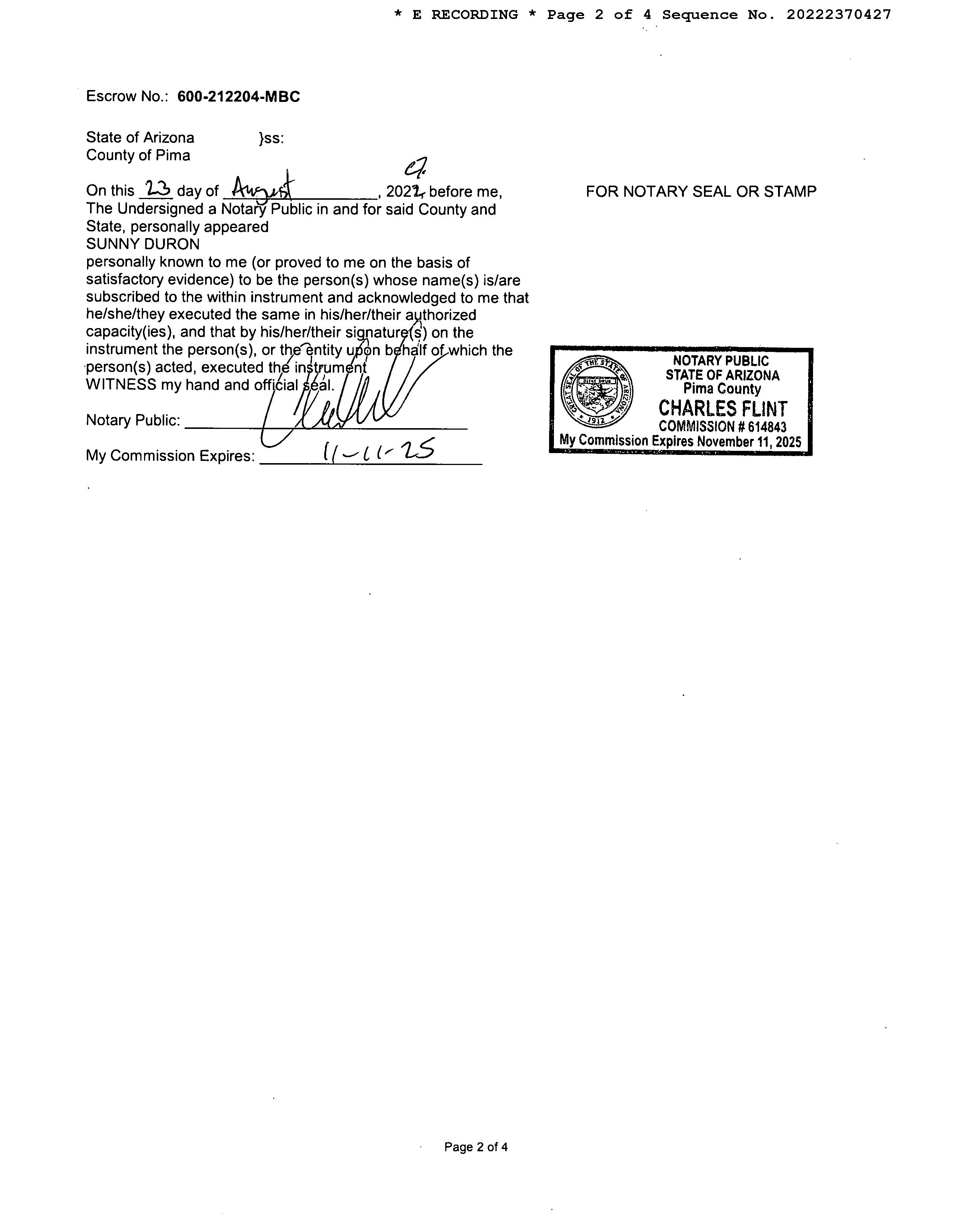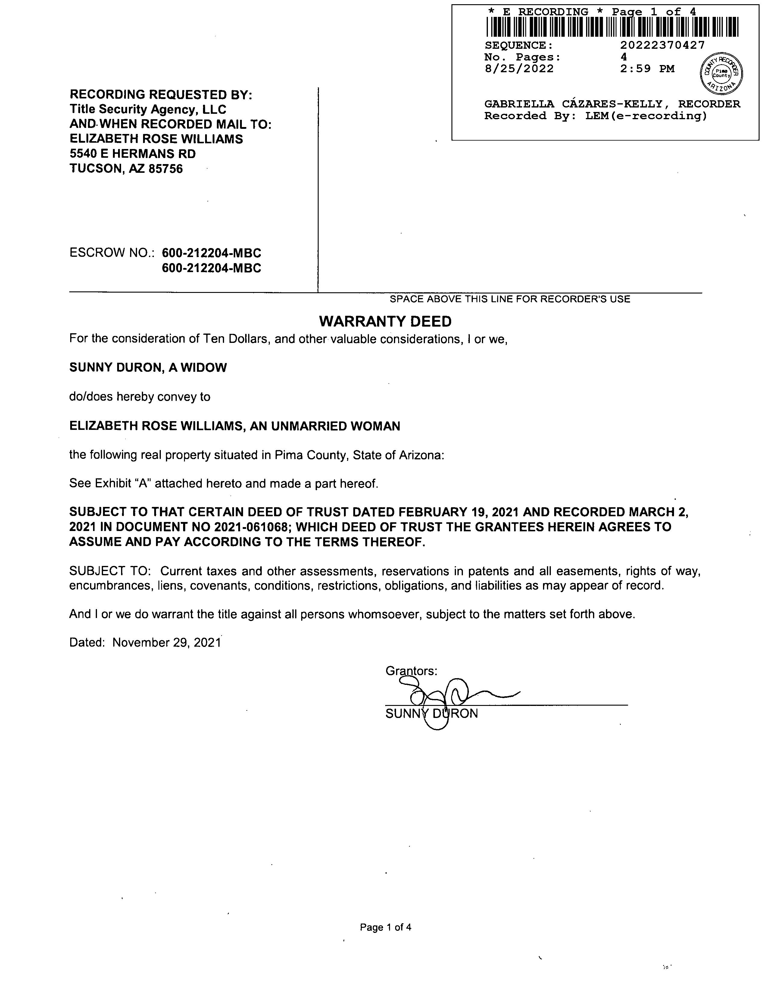 OWNER: WILLIAMS ELIZABETH AFFIDAVIT 2022 2370427 08/25/2022