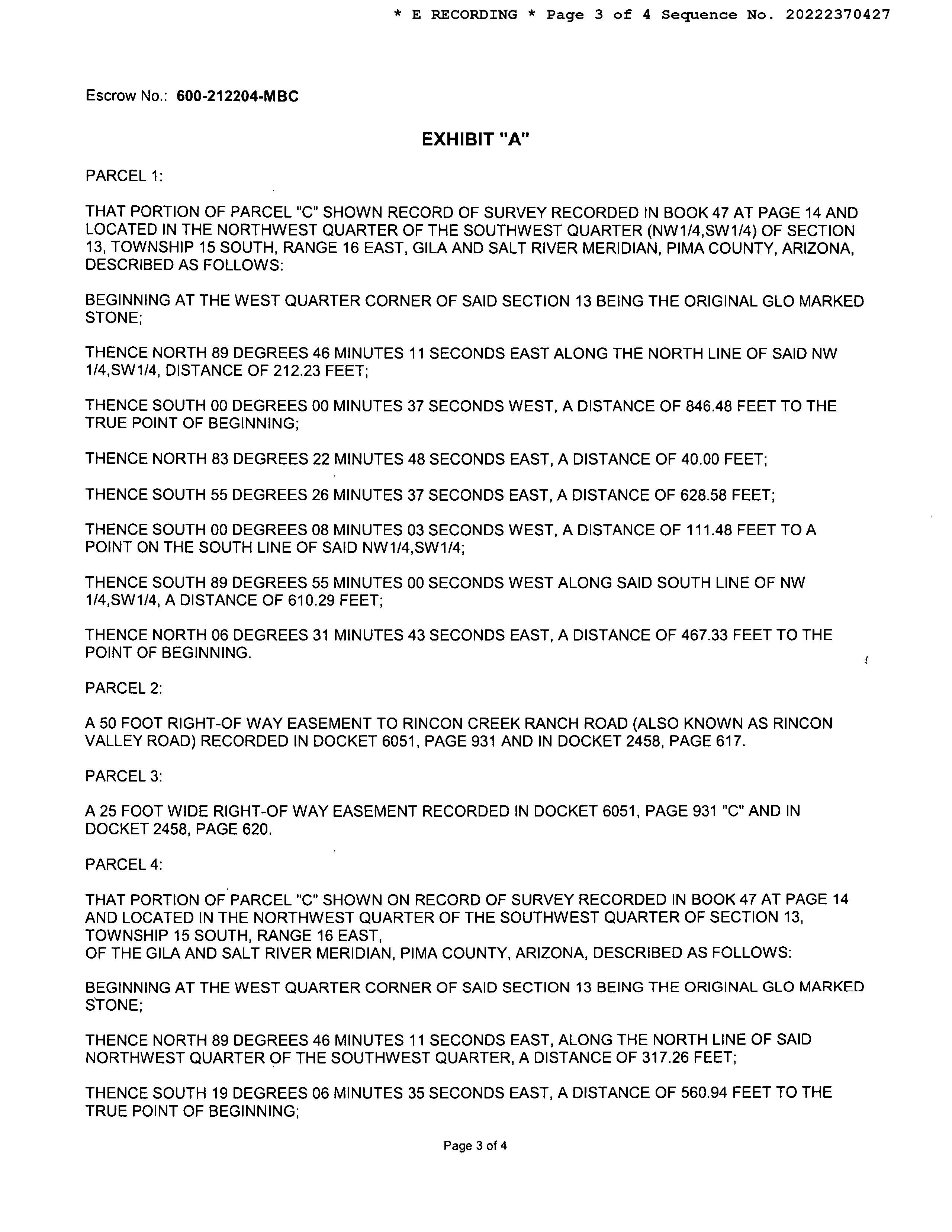 SITUS: 15150 E RINCON CREEK RANCH RD PC