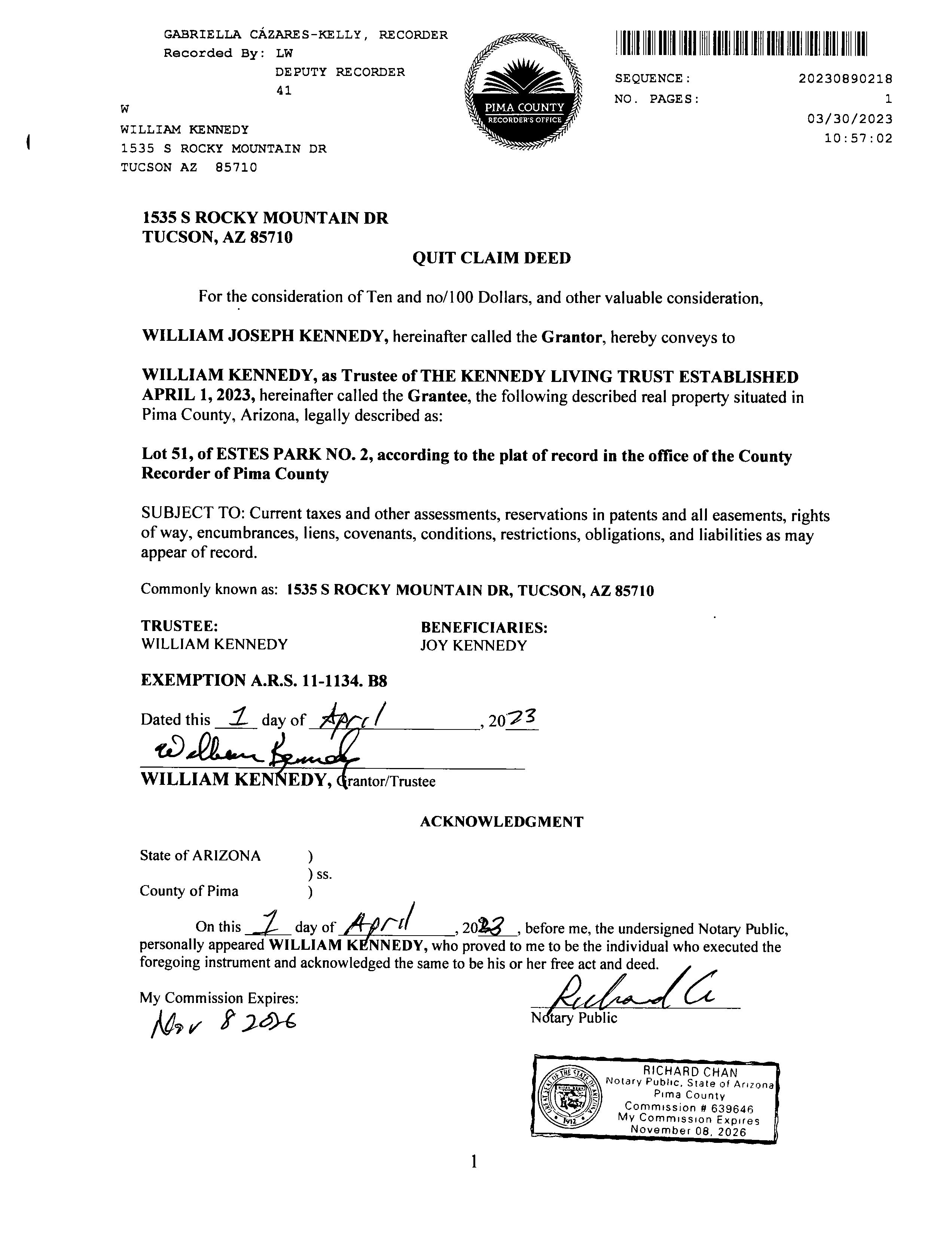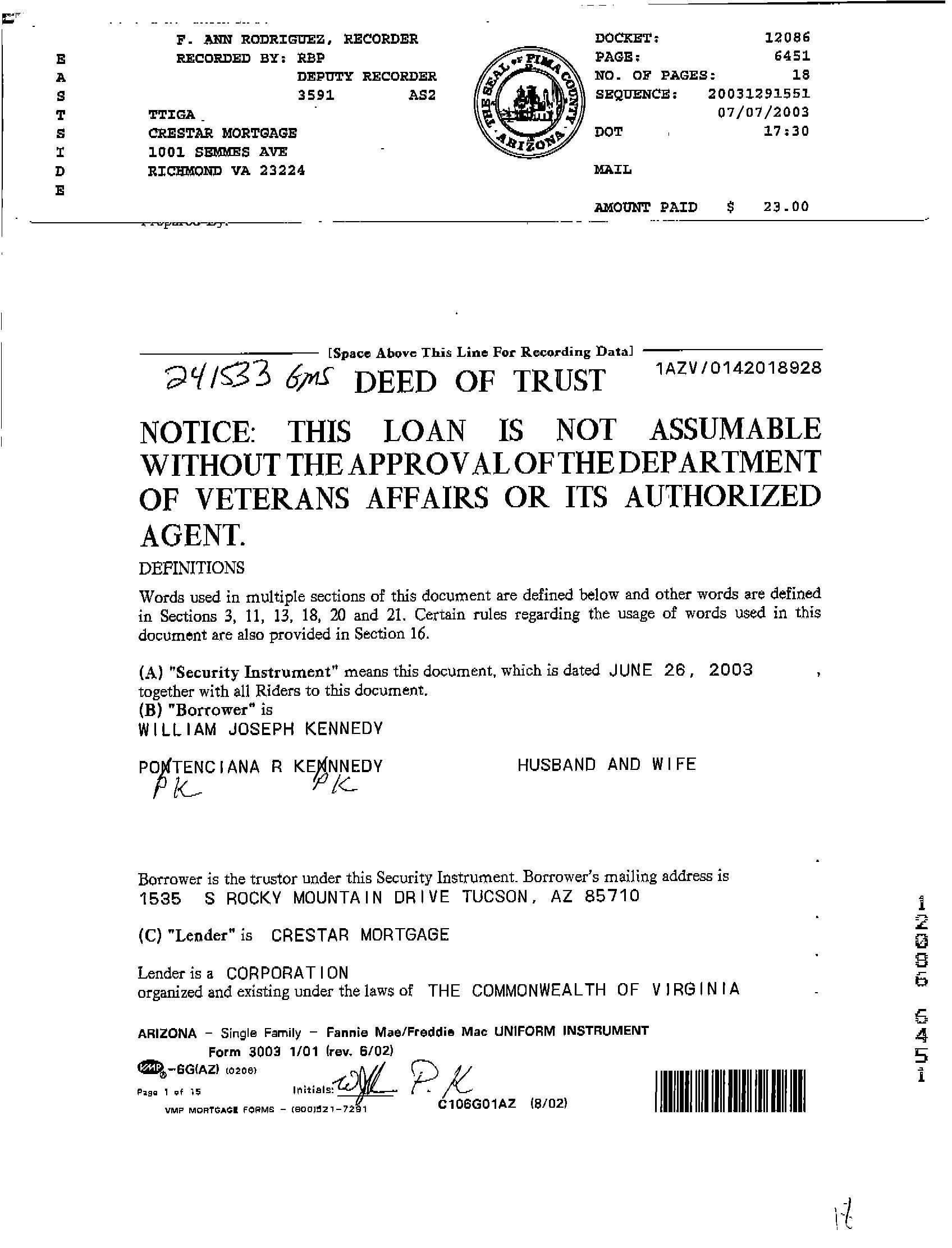 OWNER: KENNEDY WILLIAM JOSEPH & POTENCIANA R 11540 4237 05/02/2001