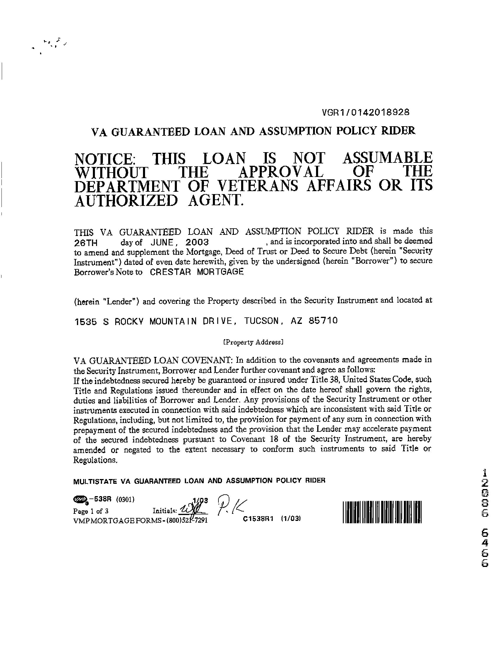 Mailing Address : 1535 S Rocky Mountain Dr, Tucson AZ 85710-8640 C015