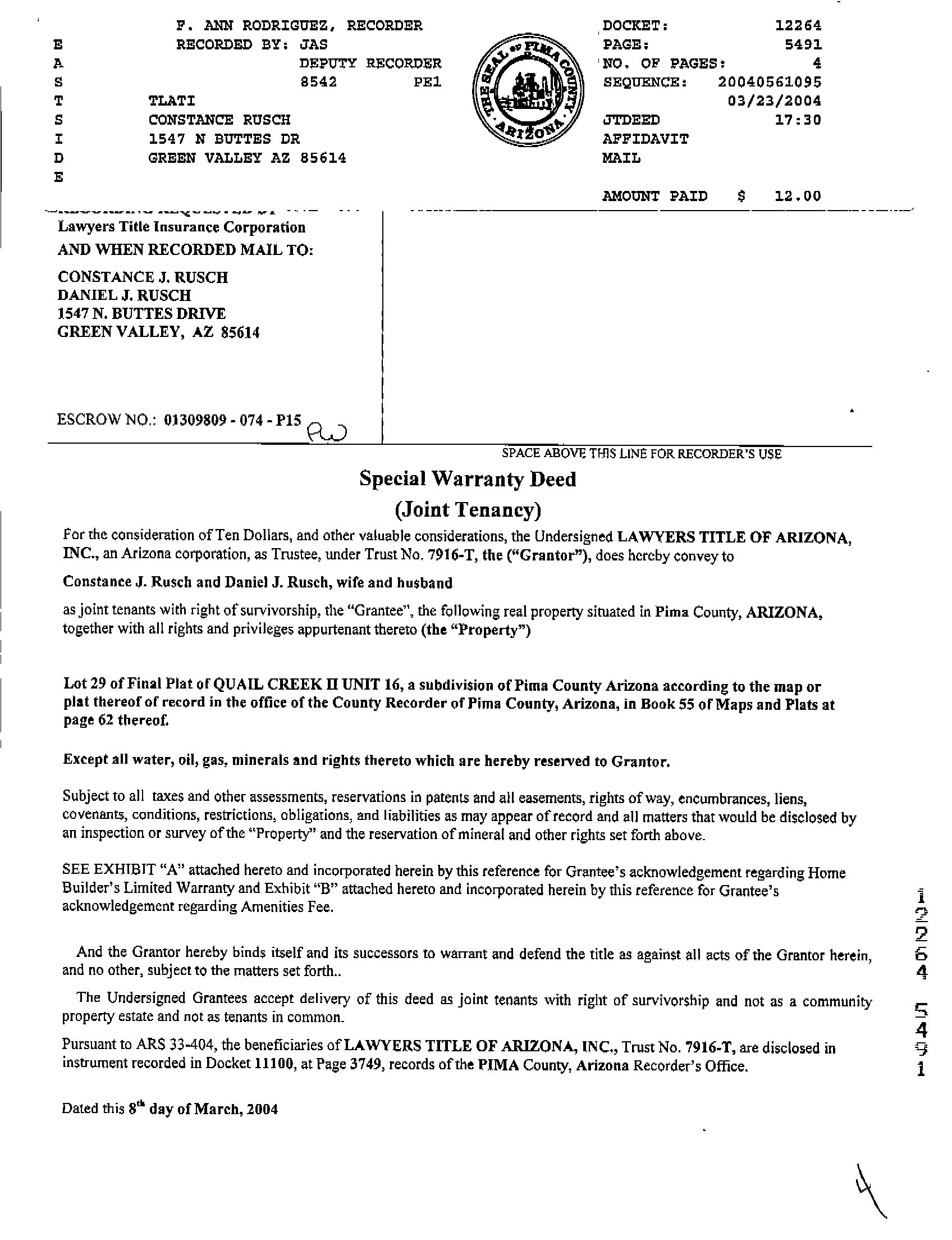 OWNER: RUSCH CONSTANCE J & DANIEL J JT/RS