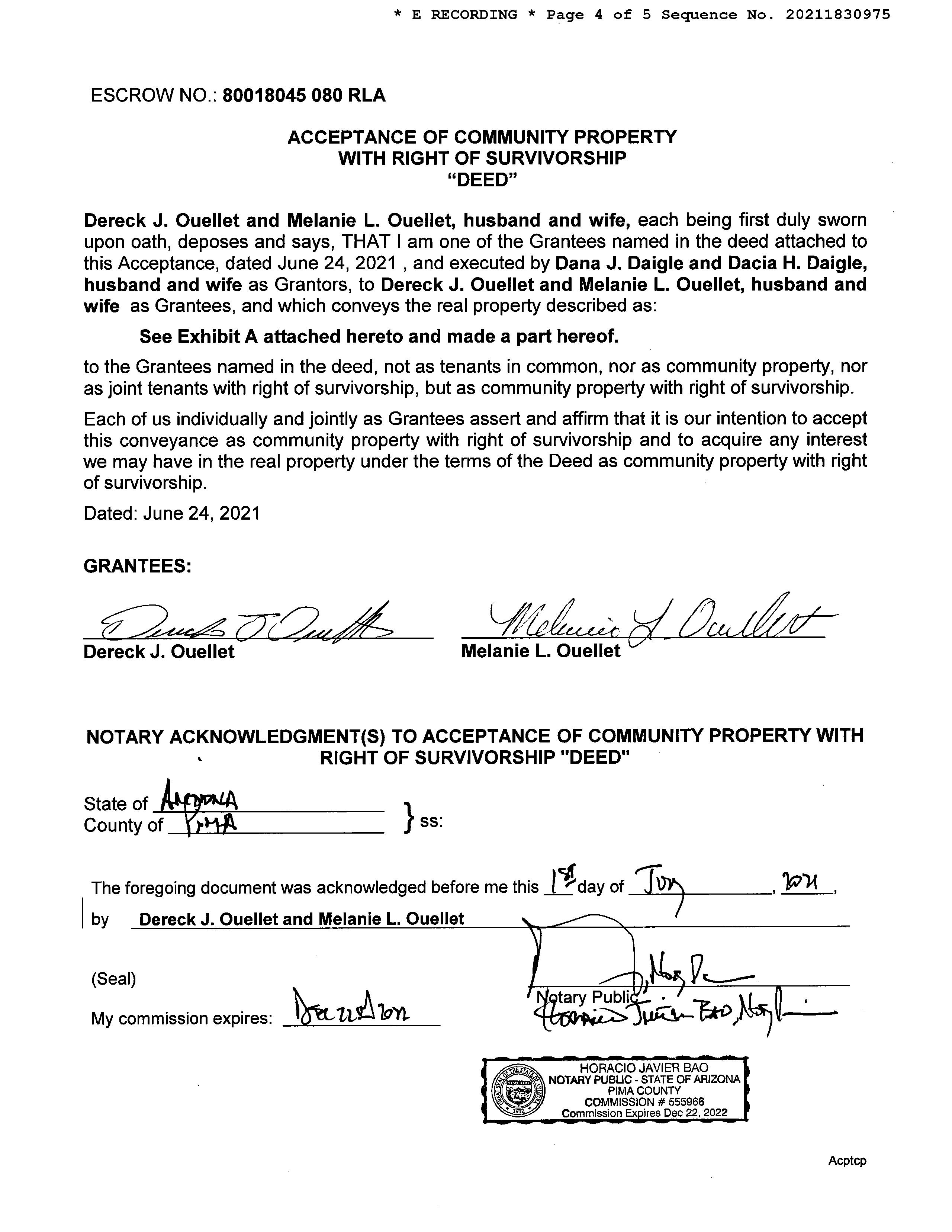 Owner Name : Ouellet Dereck J / Ouellet Melanie L
