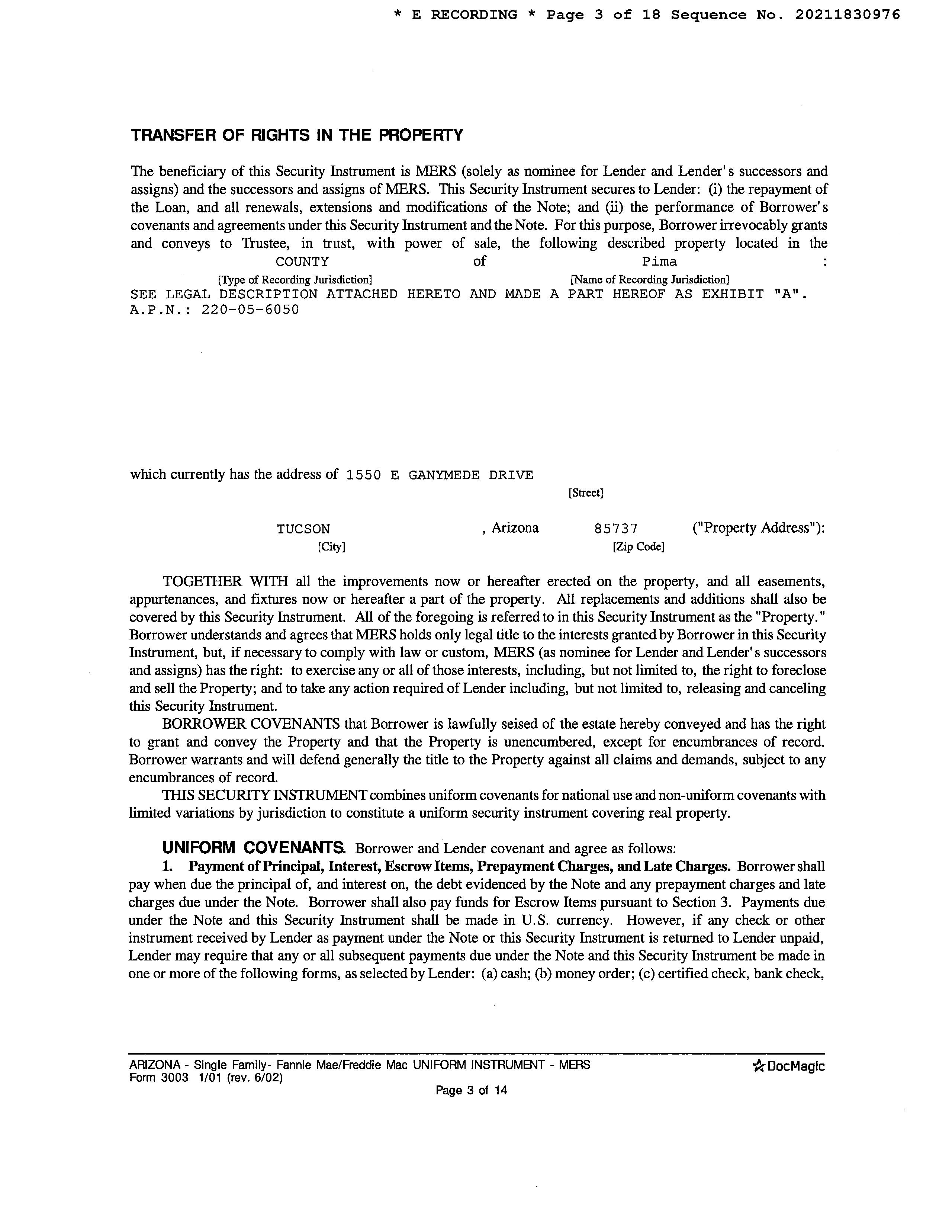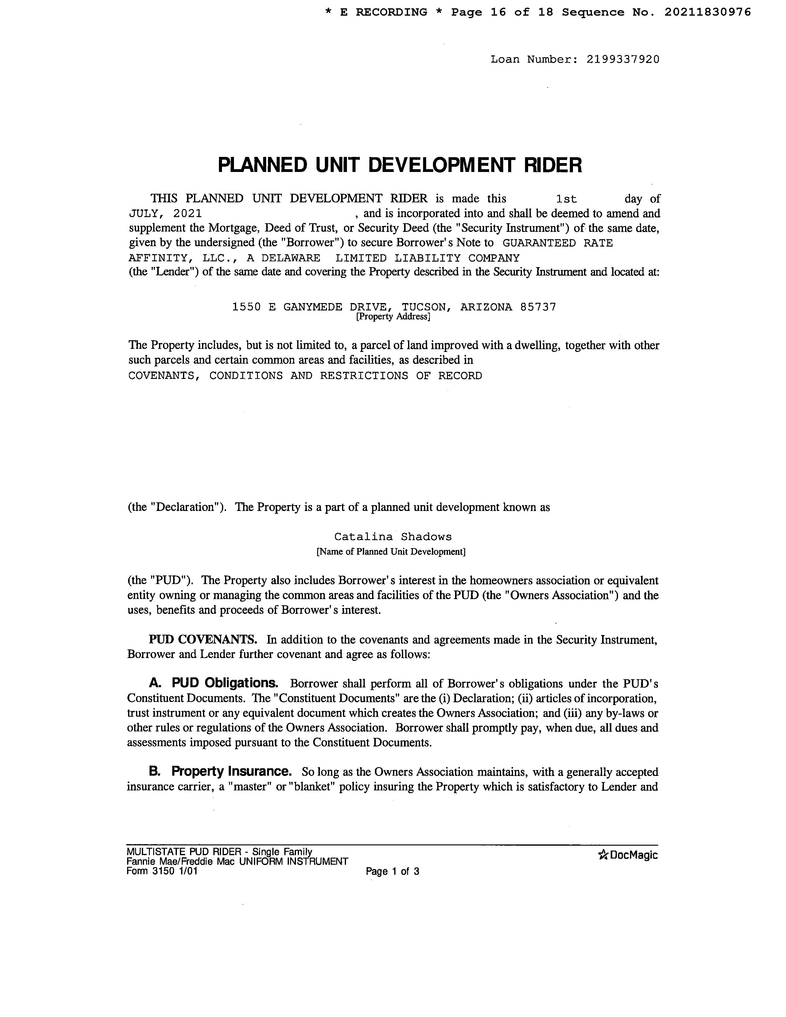 Mailing Address : 1550 E Ganymede Dr, Tucson AZ 85737-3421 R107