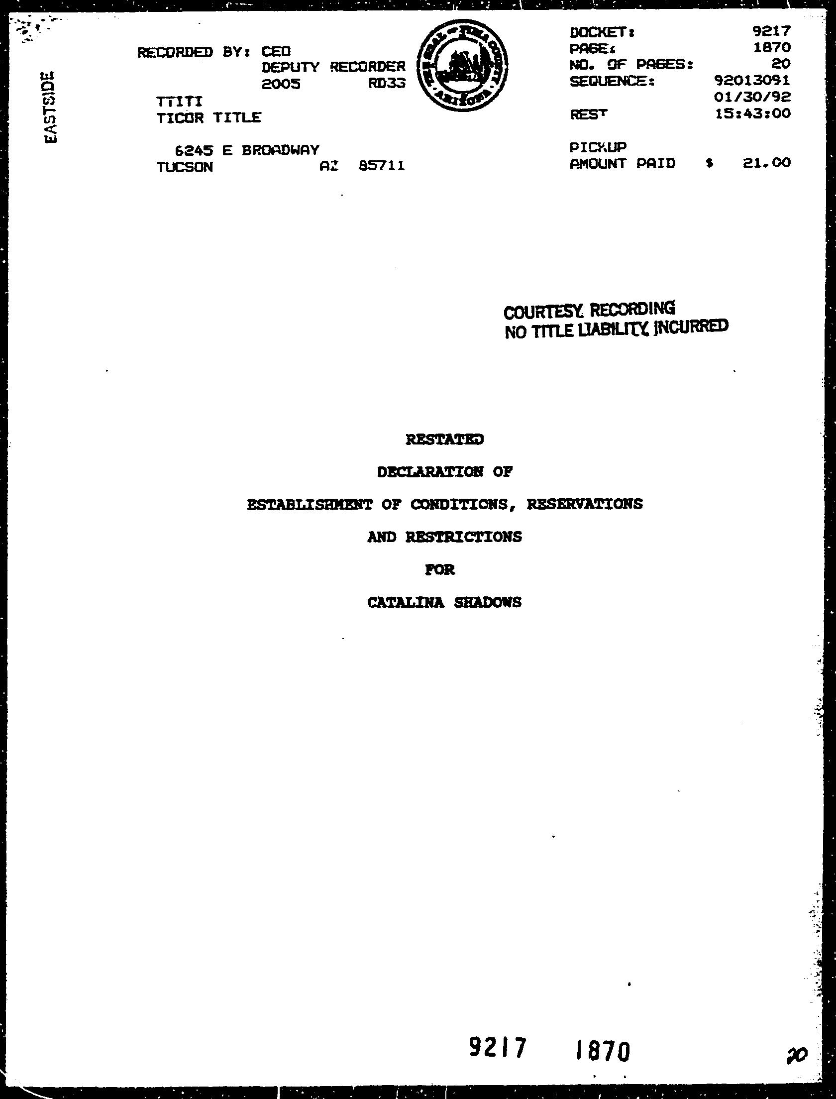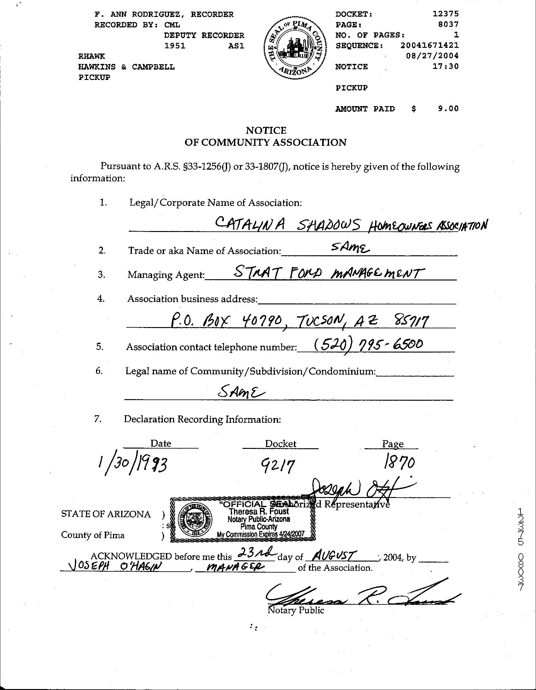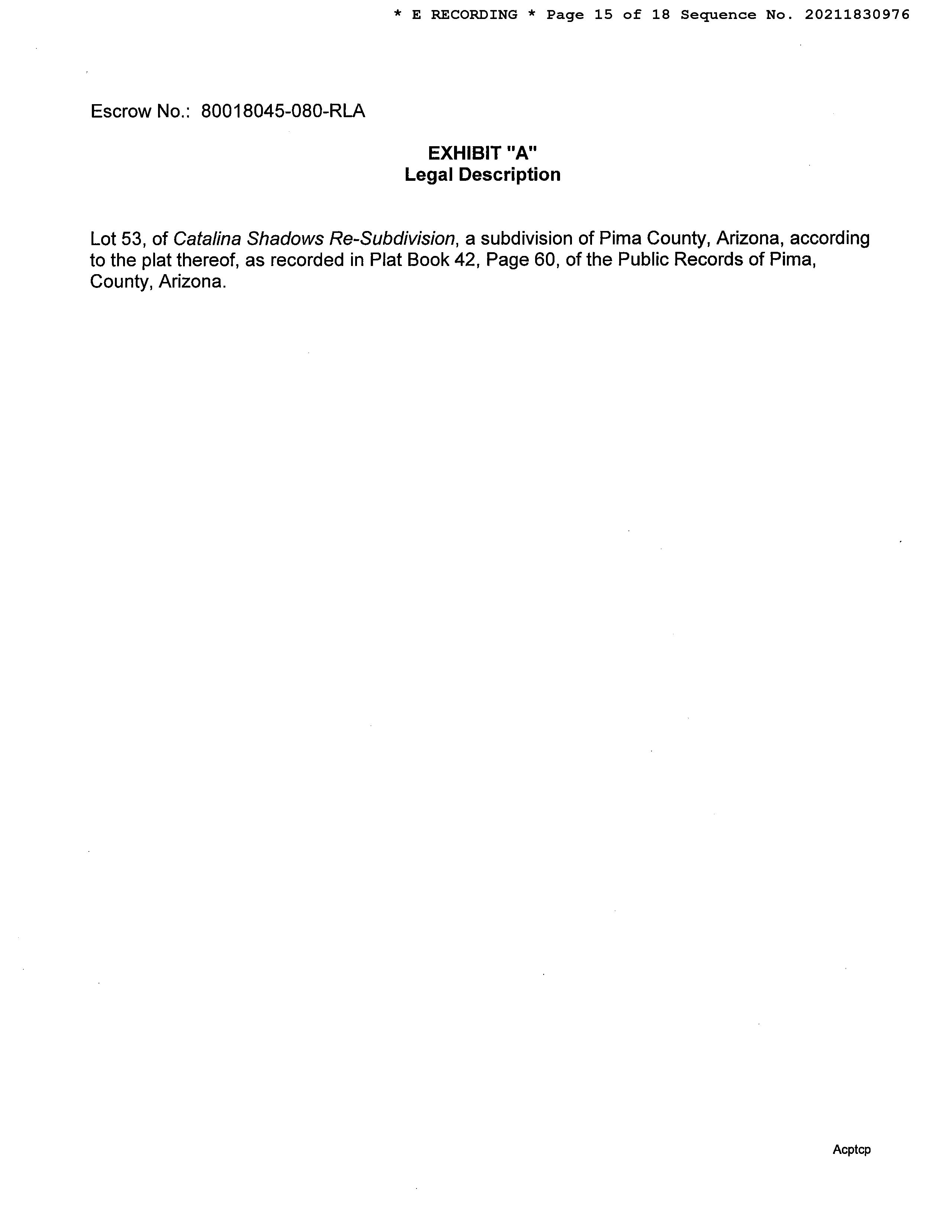 Legal Description : Catalina Shadows Resubdivision Lot 53