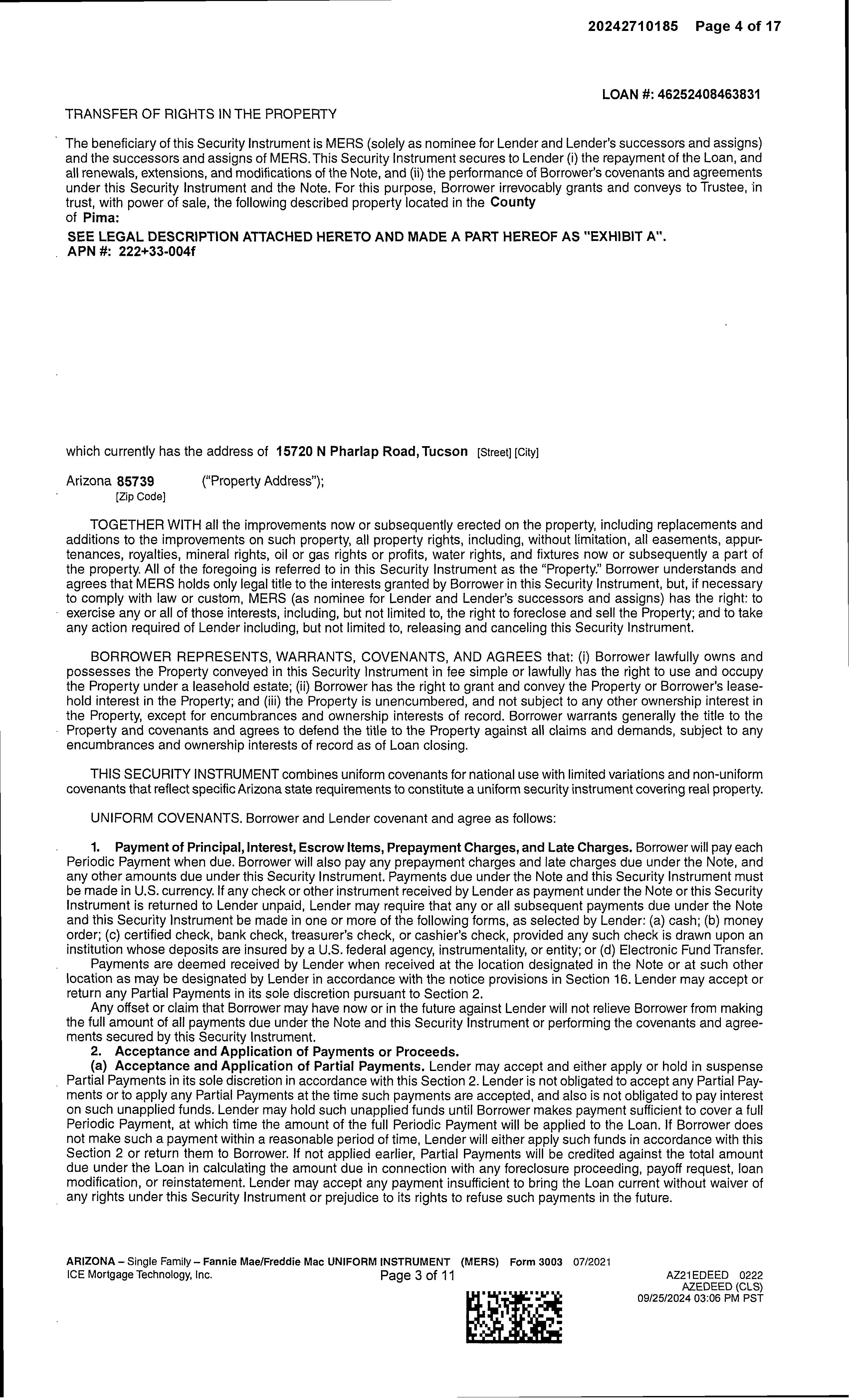 SITUS: 15720 N PHARLAP RD TUCSON