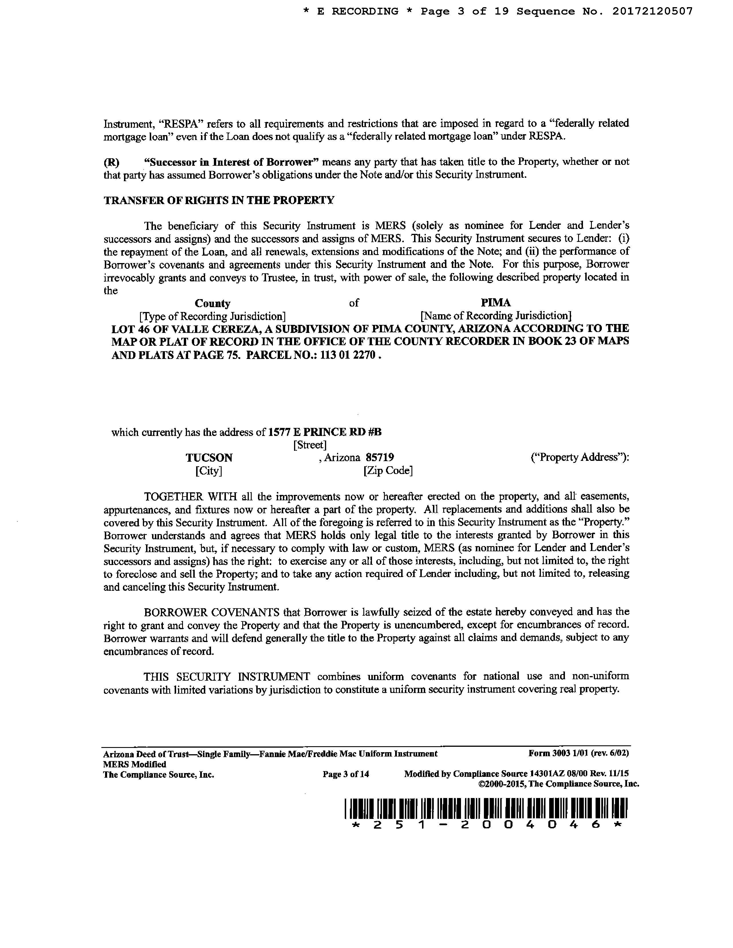 Subject Property : 1577 E Prince Rd Tucson AZ 85719