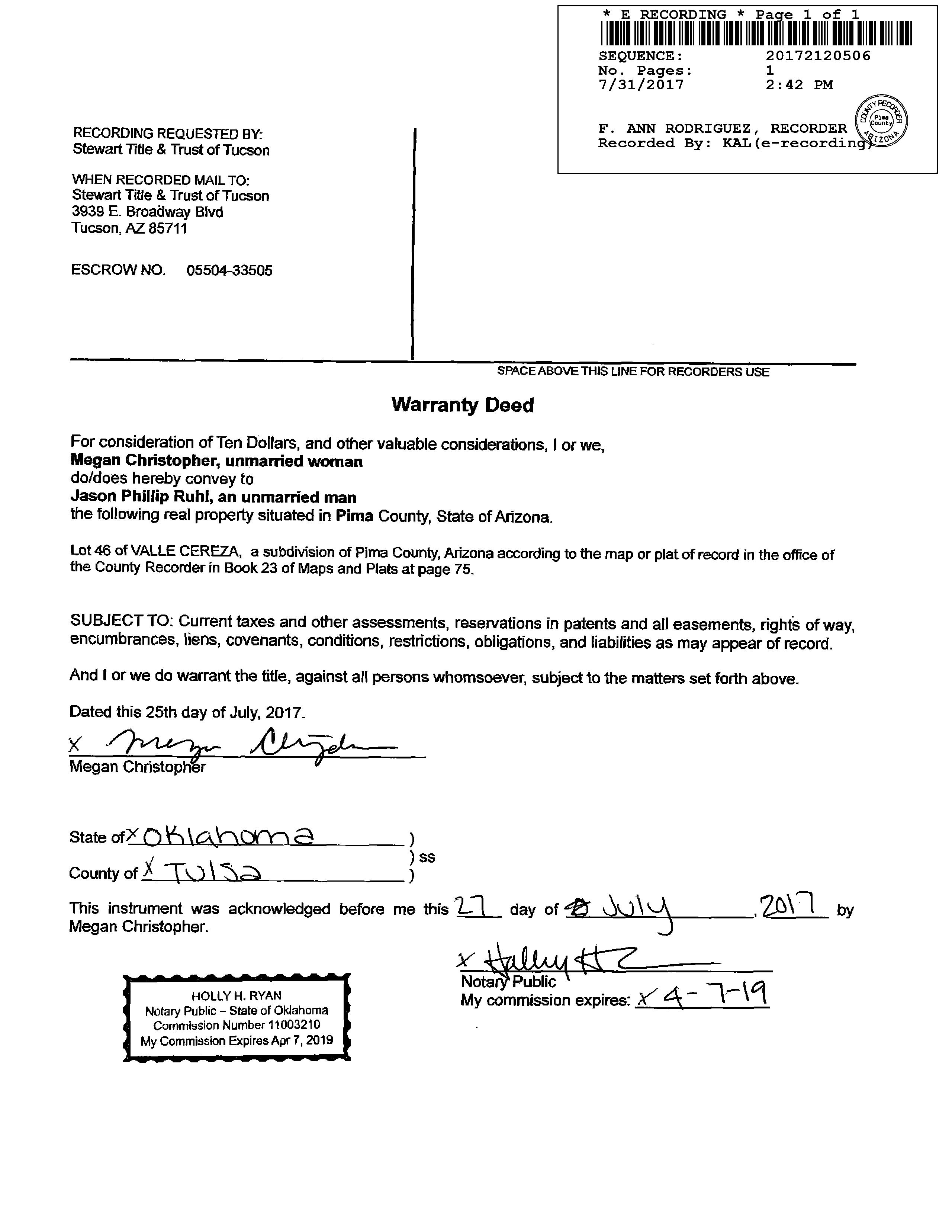 Owner Name: Ruhl Jason Phillip / APN / Alternate APN: 113-01-2270 / Deed Type: Warranty Deed