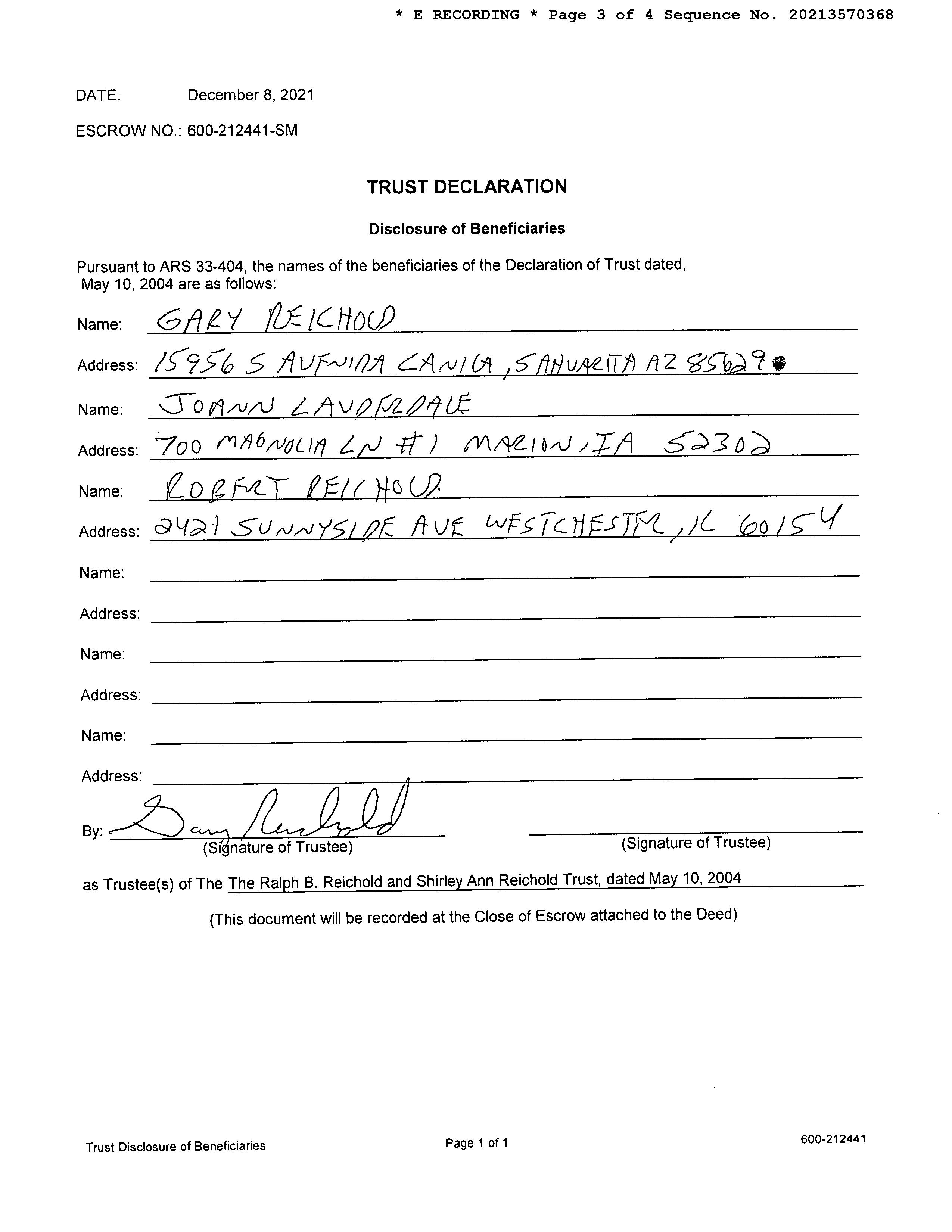 Seller Name : Reichold Ralph B & Sh