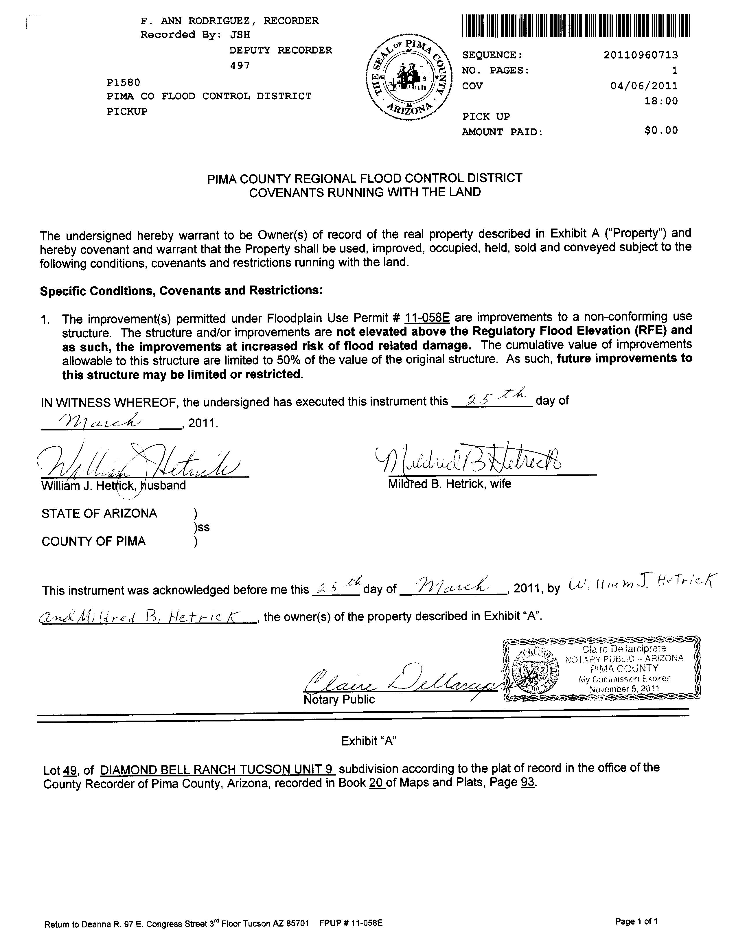 Legal Description : Diamond Bell Ranch Tucson Unit 9 Lot 49