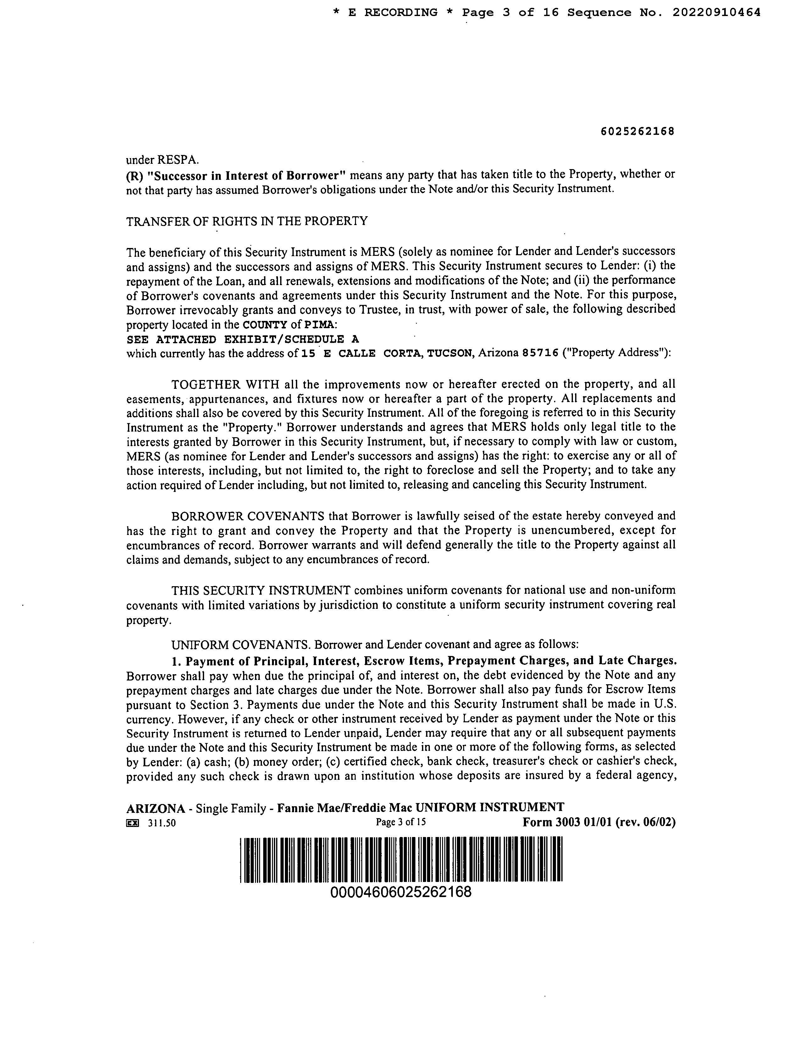 Subject Property : 15 E Calle Corta Tucson AZ 85716