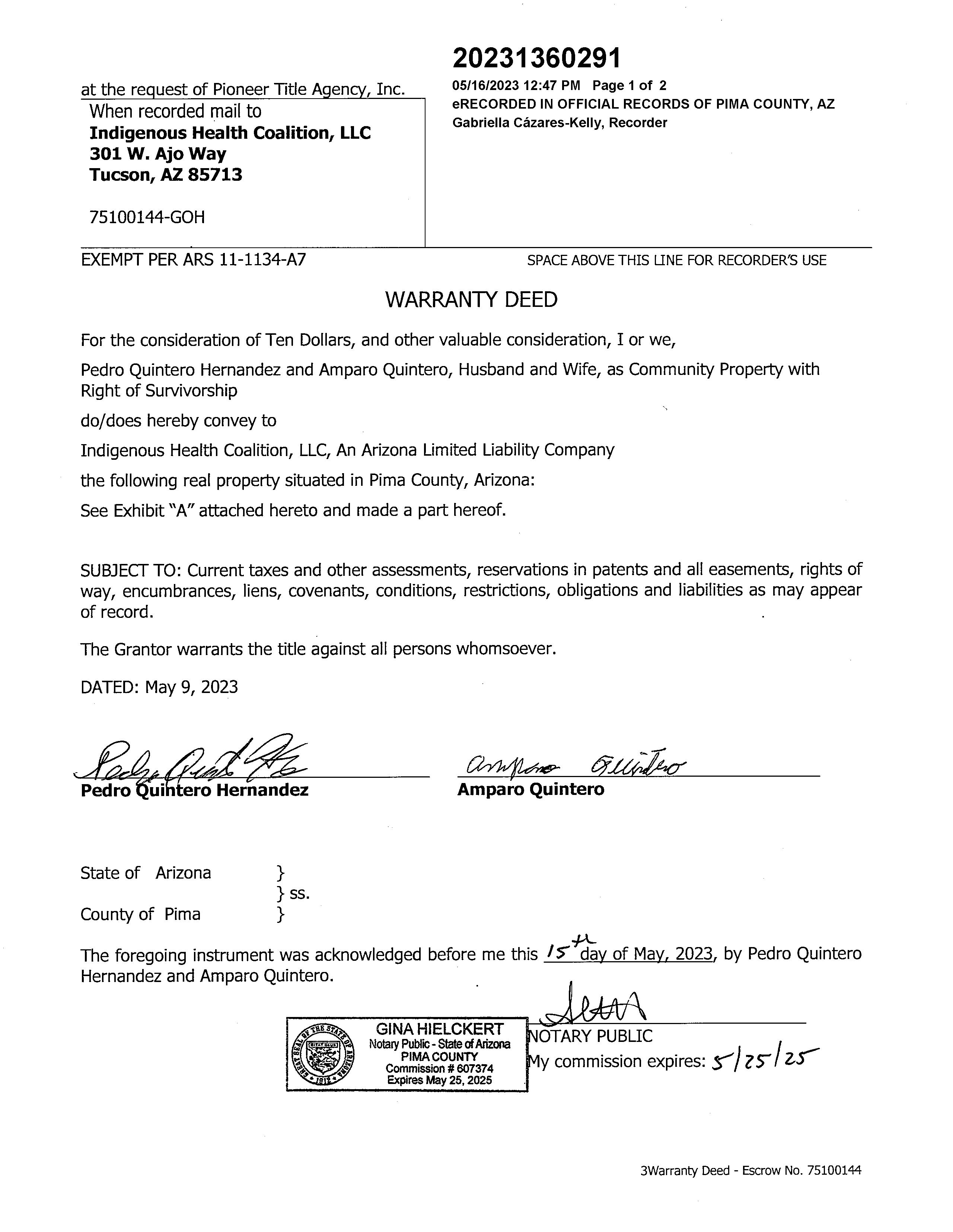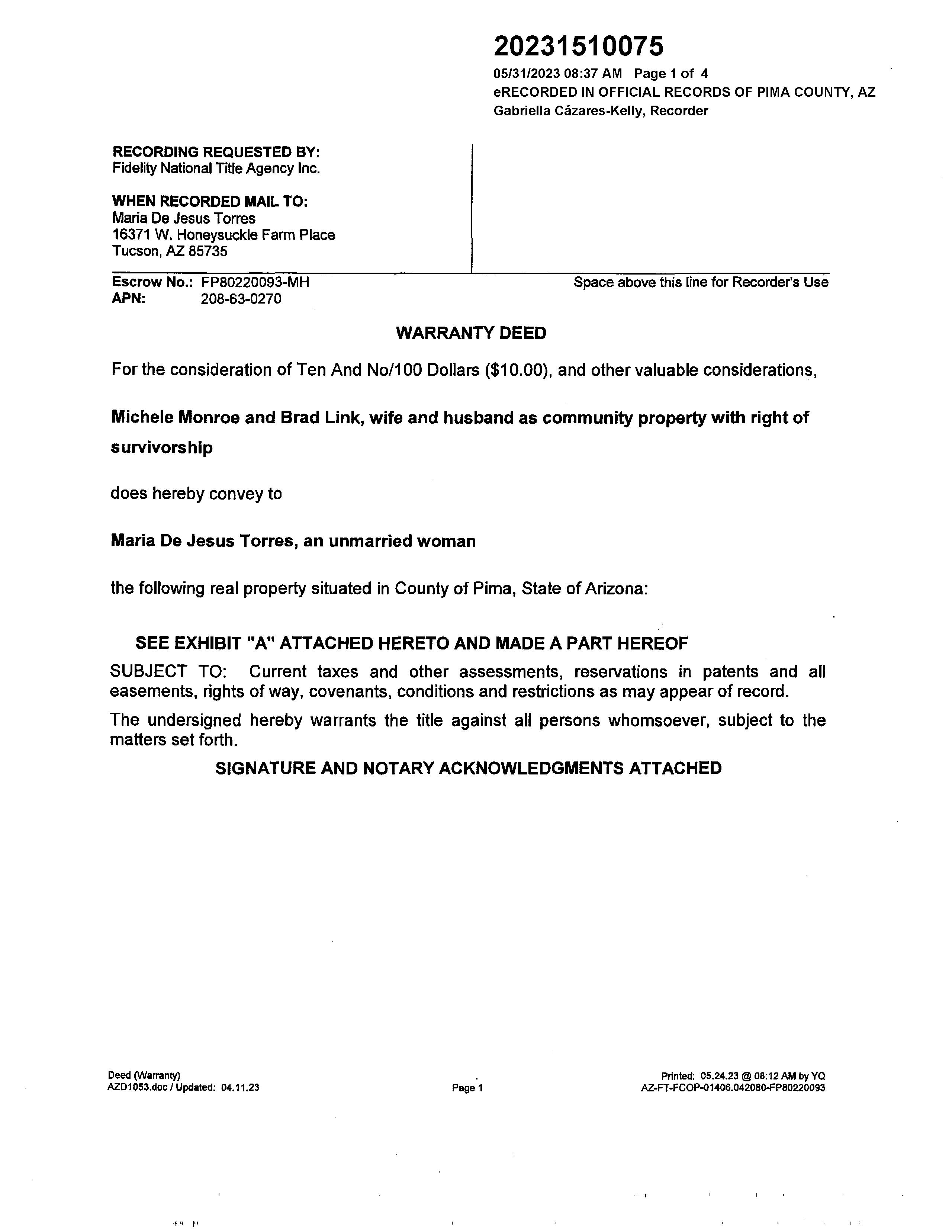 Deed Type : Warranty Deed