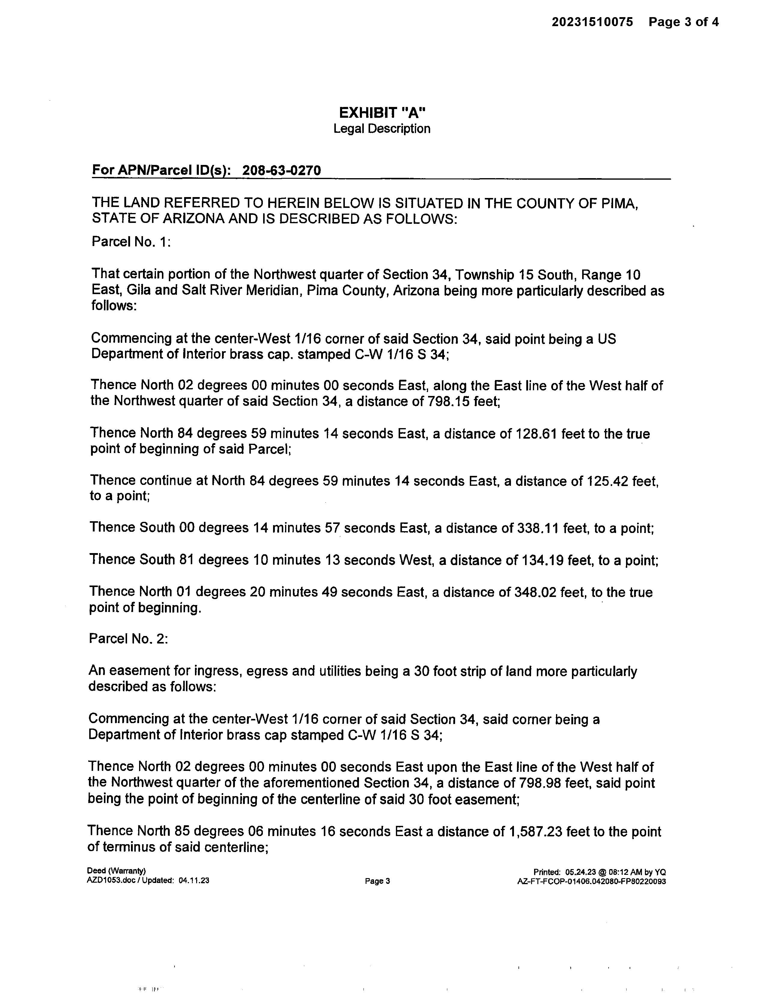 Legal Description : E123.86' W1446.86' N357.53' S1156.51' N2 1.00 Ac Sec 34-15-10
